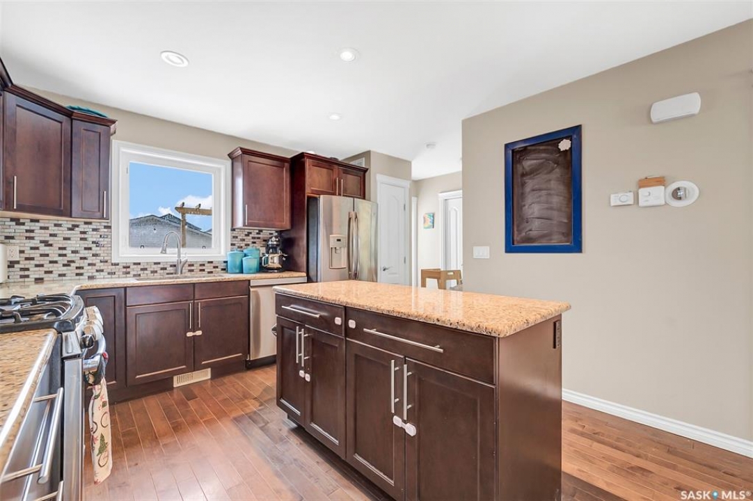Welcome to this beautifully finished 2-storey home offering space, style, and thoughtful upgrades throughout. Designed with an open-concept layout, the main floor features hardwood flooring and a stunning kitchen complete with soft-close maple cabinetry, granite countertops, a large island, stainless steel dishwasher, water line to the fridge, and eye-catching glass tile backsplash—perfect for everyday living and entertaining. Upstairs you'll find three spacious bedrooms, including a primary retreat with a walk-in closet and private 4-piece ensuite. An additional full bathroom completes the upper level. The fully developed basement adds incredible versatility with a fourth bedroom, full bathroom, and a large family room featuring a wet bar, built-in wine cooler, and full-size upright freezer—ideal for hosting or relaxing with family. Extra touches such as closet organizers in secondary bedrooms, upgraded fixtures, a fiberglass stained front door, Central A/C and triple-pane windows (including a triple-pane garden door with built-in mini blinds) enhance both function and efficiency. When built, the basement foundation was reinforced with additional thickness and rebar for added peace of mind. Enjoy morning coffee on the inviting front porch or unwind on the rear deck overlooking the backyard garden area. Underground sprinklers service both front and back yards, and fragrant lilac bushes add charm and curb appeal in the spring. A 24x24 detached garage provides ample parking and storage. Located in a welcoming neighbourhood close to schools, daycares, and everyday amenities, this home offers comfort, quality, and convenience all in one. Book your showing TODAY!!!