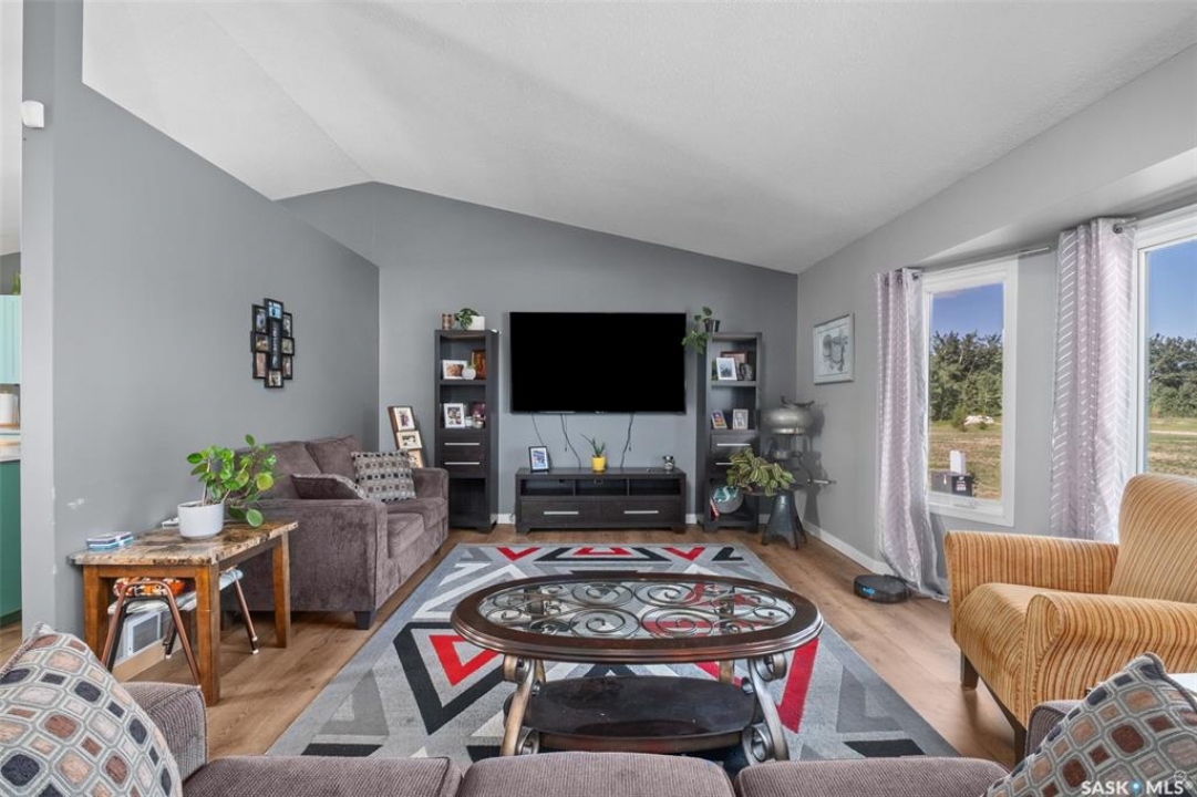 The perfect acreage does exist! Move in ready, the 4 bedroom, 3 bathroom residence is the perfect bridge way between the lake life and city living. The main level provides a huge front living room, massive custom kitchen with stone counter tops, soaring vaulted ceilings and a ton of natural lighting throughout. The lower level comes fully developed with an awesome recreational/family room, a den, loads of storage and a walk out access. The exterior of the property supplies 14.47 acres of land with a large insulated shop, many sheds, spacious front and rear decks.
