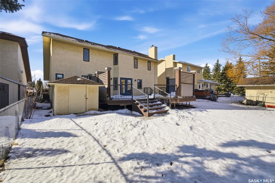 Located in the desirable University Park East neighbourhood, this well-cared-for two-storey home delivers an ideal balance of space, functionality, and recent updates. Offering close to 2,000 sq ft of living space, the main floor is thoughtfully laid out with multiple living areas including a comfortable family room, dedicated dining area, generous eat-in kitchen, and a cozy living room anchored by a natural gas fireplace. The rear entrance opens onto an expansive 700 sq ft deck overlooking a fully fenced backyard that backs onto a treed easement with convenient access to nearby parks and walking paths—perfect for both entertaining and everyday enjoyment. A main-floor powder room with laundry hookups adds flexibility to the layout. Upstairs features three spacious bedrooms, highlighted by a private primary suite with a well-appointed ensuite complete with a soaker tub, separate shower, and ample closet space, plus a full four-piece bathroom down the hall. The fully finished basement offers even more versatility with a den, large recreation room, additional bedroom, and a beautifully renovated bathroom. Completing the package are a fully insulated, drywalled, and heated garage with direct entry, central air conditioning, underground sprinklers, natural gas BBQ hookup, and a new furnace for added comfort and efficiency. Situated in a welcoming community close to schools, shopping, and outdoor amenities, this home is move-in ready and well worth a private showing.