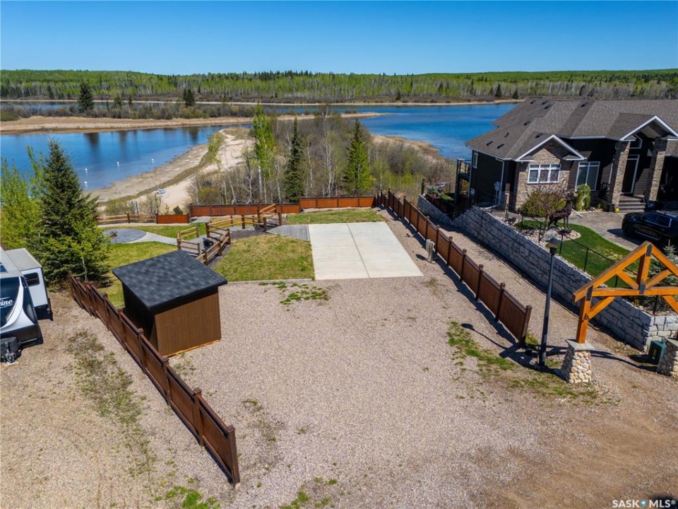 This exceptional lakefront lot in Lauman's Landing offers the chance to make that lake home dream a reality. Build your custom home or charming cabin and enjoy year-round access to this natural paradise. The lot comes equipped with the essentials – a 12x16 shed, power, water, and septic are already installed, along with convenient power access along the front of the lot and a separate water line perfect for rinsing off after a swim or paddle. Phone and natural gas lines are also available at the property edge. A private path leads you down to the pristine sandy beach, your own personal gateway to the lake. Lauman's Landing is conveniently located just 10 minutes from Northern Meadows Golf Club, a premiere 18 hole golf course. You are just two hours north of Lloydminster, 45 minutes east of Cold Lake, and 3 hours and 45 minutes east of Edmonton. The renderings showcase the Copper Creek II model, a home that perfectly complements the scale and beauty of this remarkable lot.
