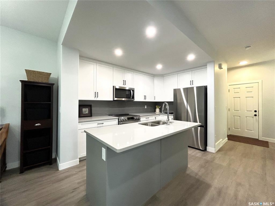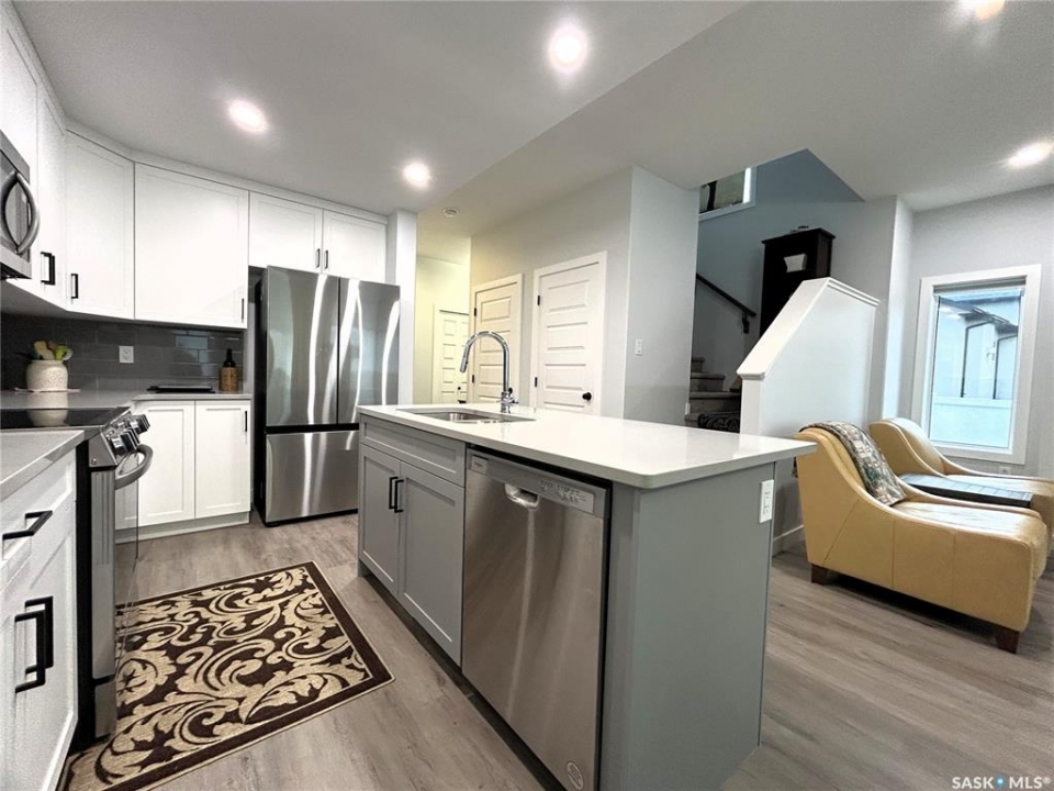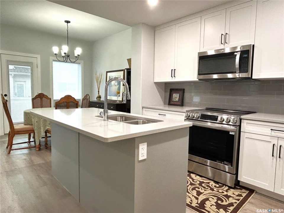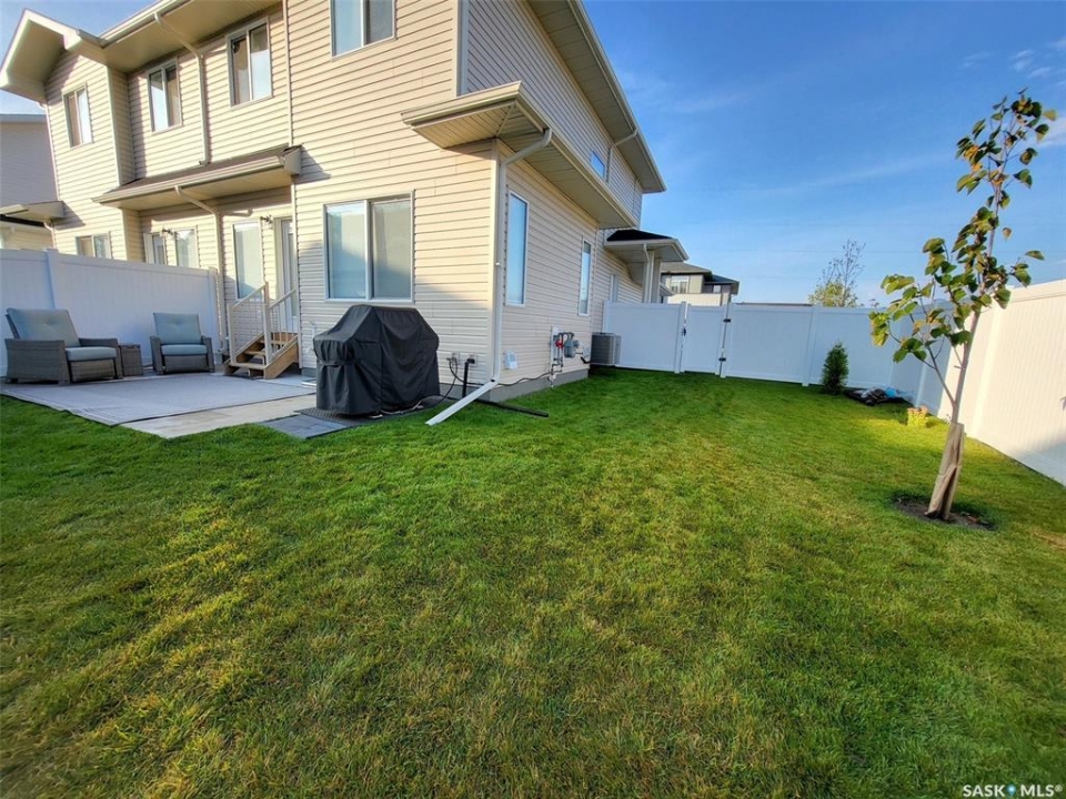 Welcome to this exceptional 2-storey end unit townhouse built by Ehrenburg Homes, ideally situated in Windsor Estates within the vibrant Aspen Ridge community. This rare property shows like new and features an extra-large fenced and private backyard along with a large side yard, beautifully landscaped and enhanced by an oversized concrete patio — perfect for outdoor entertaining or quiet relaxation. The owner is responsible for maintaining the fenced in area of the yard only. Inside, the main floor offers a bright and inviting open-concept layout under 9-foot ceilings with a spacious living room, a welcoming dining area, and a stunning white kitchen with large gray island and eating bar, accented by stainless steel appliances including a new convection oven and quartz counter tops. A convenient half bath located just off the garage completes the main level. Upstairs, the primary bedroom serves as a private retreat with a luxurious 5-piece ensuite bath and a walk-in closet. The second floor also includes a versatile bonus room, two additional bedrooms, a 4-piece bathroom, and a thoughtfully placed laundry with new washer and dryer area for added convenience. Notable upgrades completed by the seller include central air conditioning, custom window treatments, and a new oversized washing machine and dryer. Additional features such as side windows for extra natural light, quartz countertops throughout, a double attached garage with direct entry, and extra storage make this home truly turnkey. Located within the growing community of Aspen Ridge within easy walking distance to schools, shopping and public transit, this property is perfect for families, professionals, or anyone seeking a move-in-ready home in a welcoming and well-connected neighborhood.