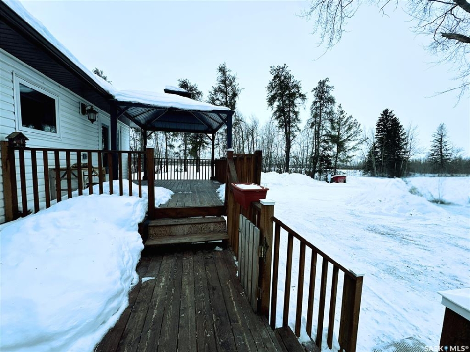 If a turn-key home, wide open skies, horses in the pasture and Northern Saskatchewan adventure are calling your name, this 159.14-acre acreage delivers the lifestyle to match. The 1,288 sq ft home is warm, welcoming and thoughtfully updated. A bright and spacious living room offers plenty of natural light and room to gather, while the adjoining kitchen and dining area create a comfortable, functional heart of the home. The dining area has garden doors that open to a new gazebo covered deck to extend your summertime dining area... or to enjoy happy-hour at the end of a busy day. Three main floor bedrooms, including a well-sized primary, provide practical family living, complemented by a full 4-piece bath and convenient 2-piece bath right off the back door. Downstairs, the expansive family room gives you flexibility for entertaining, games, movie nights or a cozy retreat after a long day outdoors. An additional bedroom, den, laundry area, utility and ample storage complete the lower level. Recent updates include fresh paint & flooring throughout the main floor, floor painted in basement, updated bathrooms, closets, updated shingles, garage build in 2023, windows, baseboards re-installed and a new air conditioner - offering both modern comfort and peace of mind. The home is squeaky clean, refreshed and truly move-in ready! Outdoors helps make this property truly shine. Designed with equestrian lovers in mind, you'll find a large barn with fenced areas, 95 acres of hay land to support any furry loved ones, a spacious, heated and insulated shop, newer garage with lean-to and multiple outbuildings for storage and flexibility. With 159.14 acres, there is room to ride, roam and grow. Conveniently located just minutes from the Candle Lake turnoff, Tobin Lake and the gateway to Northern Saskatchewan's lakes, this property offers the perfect blend of rural functionality and outdoor lifestyle. Space, comfort and freedom - all in one remarkable setting.