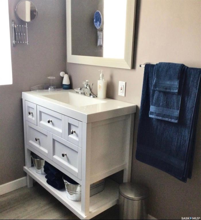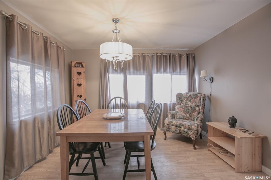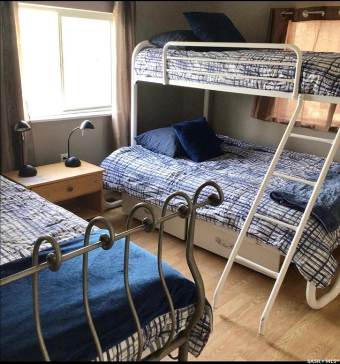 Four season property located in Regina Beach on a quiet crescent is setup on large lot with natural gas. Main level has been updated with newer flooring, paint, kitchen cupboards and counter tops. Two nice sized bedrooms, four piece bath plus a separate dining area. Basement includes plenty of storage and two rooms which could be used for home office, gym, bedroom or additional kids play area. Plenty of off street parking. Quick possession available.