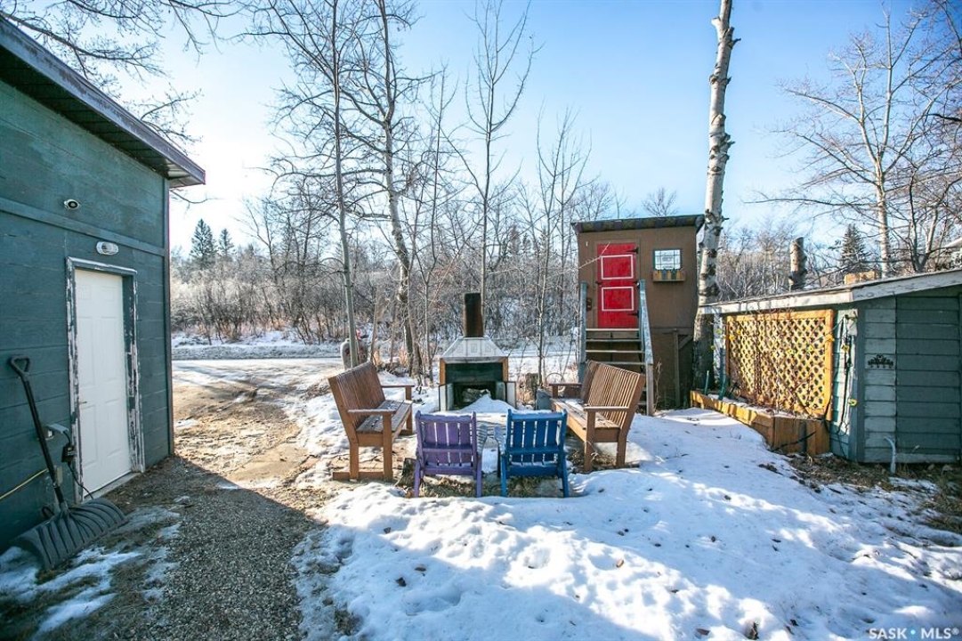 Unique opportunity for a four season lake property located on a quiet crescent with natural gas, plus a custom built "Tiny Home" for additional rental income. Main home includes functional kitchen. Living-room with patio doors to deck. Three bedrooms, updated four piece bath and sun room which is currently setup as a dining area. Seller states exterior was redone with 1.5" styrofoam insulation. Natural gas furnace and fireplace, plus supplemental electric heaters. Natural gas fireplace. Newer garage. Crawlspace has been spray foamed. DragonFly Tiny House This accessory building was completely permitted by the Township and placed on the property in mid-June 2018. It is completely self-contained with propane heater, a propane cook top, 3-way fridge (runs on propane, 12V or 110V power), kitchen sink, hot water heater (electric 3 gallon), and three-piece bathroom with full shower. It has a pull out couch and a loft area (sleeps 3 adults very comfortably). The DragonFly Tiny House was designed by renowned architect, John Robinson of Robinson Residential in Regina. It is built with SIP panels, that provide an R40 insulation rating. It is 159 sq. ft. with ample windows and skylights and main deck area. The tiny house was outfitted with Nest Temperature Sensors, motion sensor light, key lock box and all smart house light switches (that can be remote controlled).