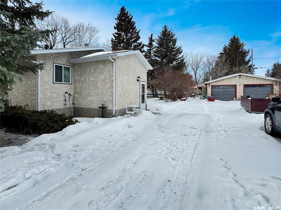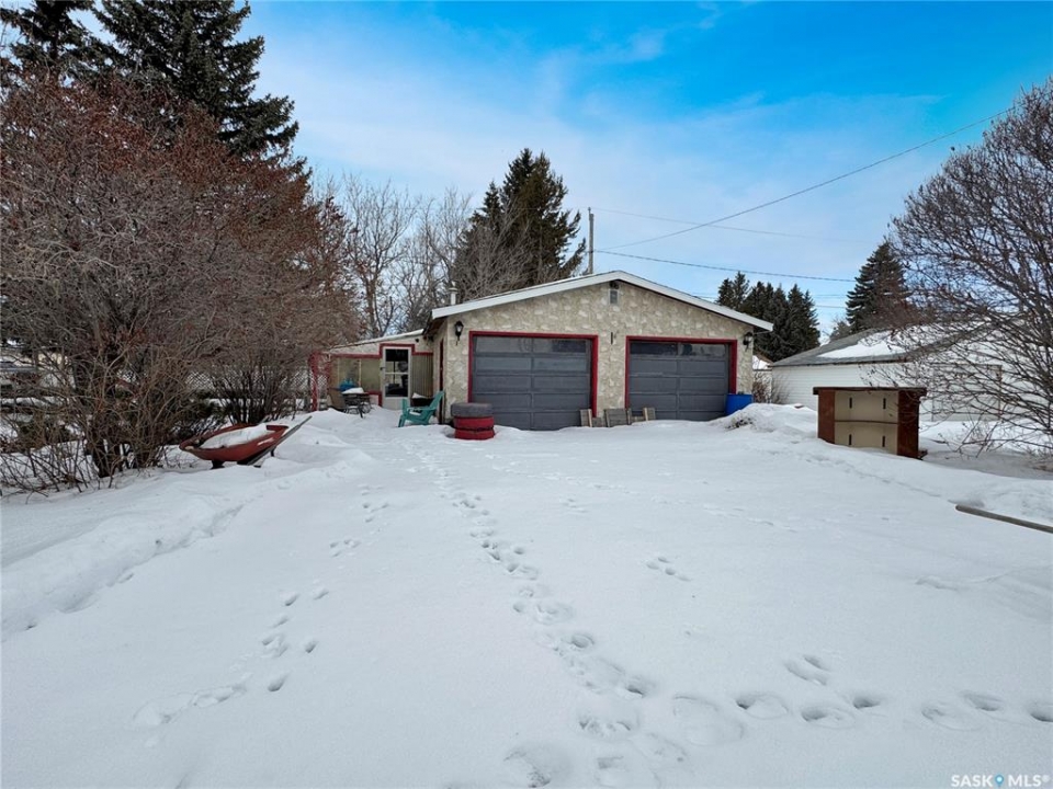 Welcome to 303 Otter Street — a solid 1975 starter home packed with value! Offering 3 bedrooms and 2 bathrooms, this home greets you with a spacious front porch that flows into the kitchen, with all appliances included. The living room is generously sized and filled with natural light, and the main floor is completed by three bedrooms and a 4-piece bathroom. Downstairs features an open-concept layout with laminate flooring — cozy and spacious enough for a TV lounge plus games or exercise area. The fully fenced yard is framed with mature trees, perfect for pets, and you'll appreciate the large double detached garage. Bonus: the empty lot next door (301 Otter Street) is included in the sale! Don't miss this great opportunity