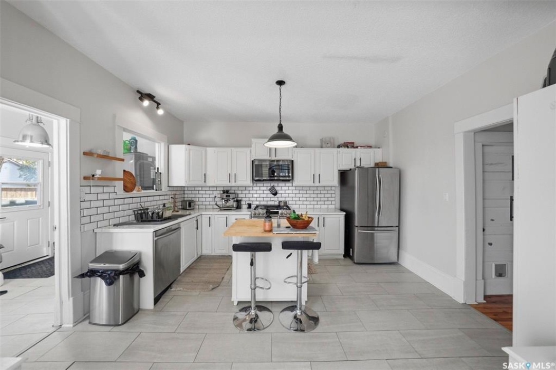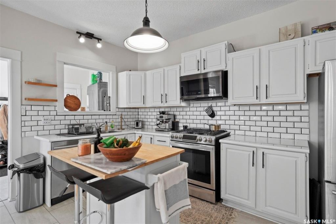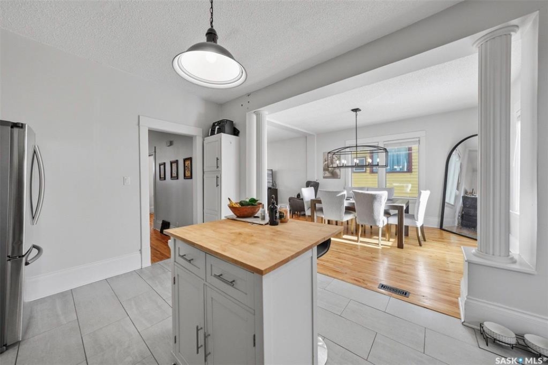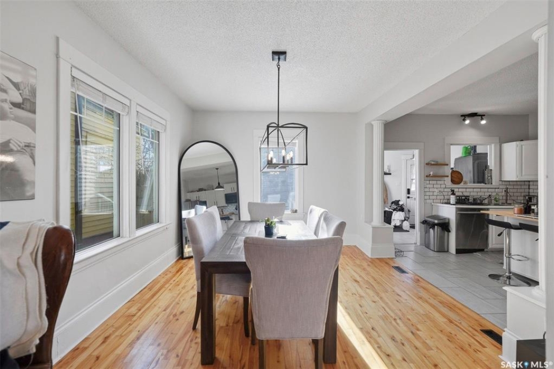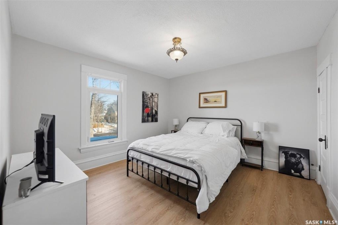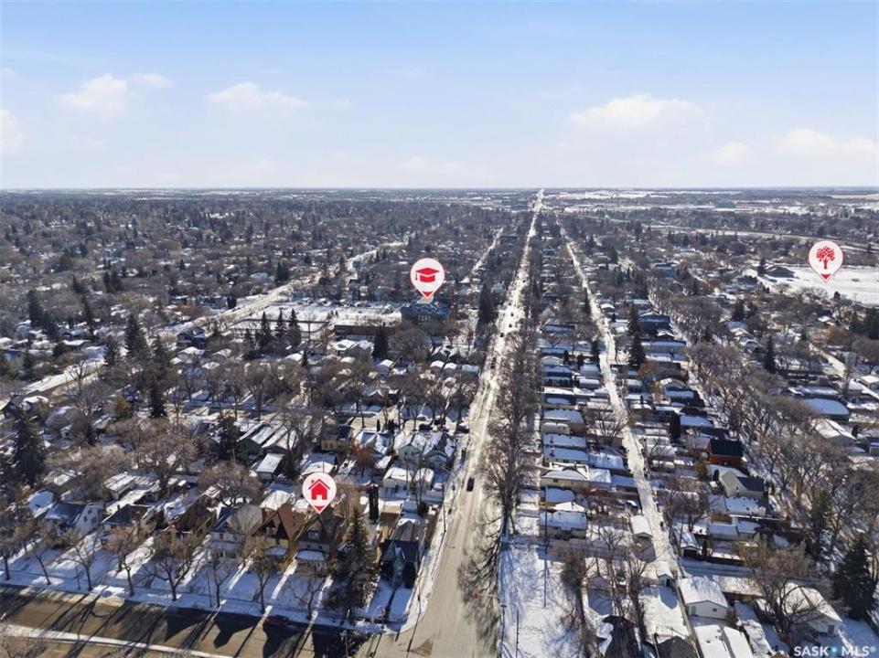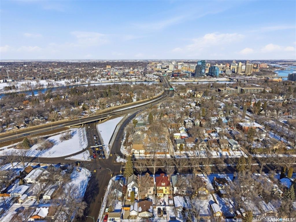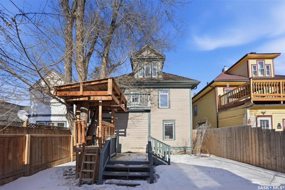 Historic Charm Meets Modern Comfort in Buena Vista Discover the perfect blend of character and contemporary living at 106 8th Street. This lovingly maintained 1912 home in one of Saskatoon's most walkable neighborhoods offers both a beautiful residence and income potential. Main Floor Living Step through the grand entryway into a home where original charm shines. Elegant pocket doors open to a sun-filled living room that flows seamlessly into the spacious dining area—perfect for entertaining. The recently renovated kitchen features stone countertops, a functional island, stainless steel appliances, and a gas range for the home chef. Nine-foot ceilings and triple-paned windows create an airy, light-filled atmosphere throughout. Private Retreats Upstairs The second floor offers four generous bedrooms, including one with balcony access for catching southern sun. A renovated four-piece bathroom serves this level. Climb to the third floor to find your primary suite, complete with a walk-in closet and private three-piece ensuite—your own peaceful sanctuary. Income Opportunity The lower level features a self-contained one-bedroom suite with separate entrance, in-suite laundry, full kitchen with dishwasher, and four-piece bathroom. Previously generating $900/month, now vacant, this is a fantastic mortgage helper. Outdoor Space The south-facing backyard is designed for easy living: raised deck, low-maintenance turf, and a heated double detached garage plus additional tenant parking. Modern Updates Central air conditioning, additional third-floor AC, spray-foam attic insulation, and a convenient mudroom/laundry area off the back porch. Unbeatable Location Walk to Buena Vista School, BV Park, the lawn bowling club, and all of Broadway's shops and restaurants. Downtown is minutes away. This is Saskatoon living at its finest.