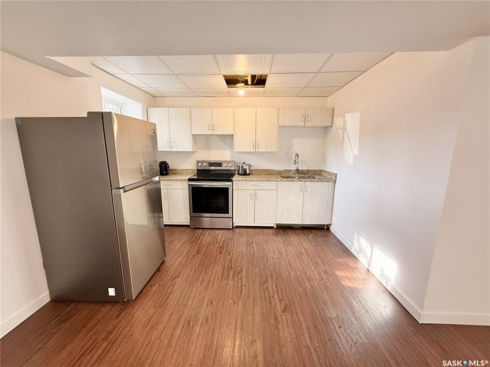 This 1929 raised bungalow with a basement suite offers a great opportunity for homeowners or investors looking for flexibility and income potential. Live on the main floor while the lower suite helps offset your mortgage, or add this property to your investment portfolio. In past years, the home has seen several important updates, including metal roofing and siding, PVC windows, mechanical improvements, and (seller states) an updated ICF basement, adding durability and efficiency. The main level features an open-concept living, dining, and kitchen area with updated cabinetry, granite countertops, refrigerator, gas stove, dishwasher, and durable vinyl tile flooring through much of the space. There are two bedrooms plus an updated four-piece bathroom with convenient in-bath laundry. The lower-level suite offers good natural light with large windows and an open layout. It includes an updated kitchen with granite countertops, stainless steel appliances, vinyl flooring, a den, a three-piece bathroom, plus an energy-efficient furnace (less than 10 years old) and newer hot water heater. Situated on a generous 52.5' x 197' lot, the property also features a detached 16' x 18.5' shed, ideal for storage, hobbies, or workshop use. Located directly across from the Herbert Integrated Health Facility and close to local amenities including a skating rink, shopping, and everyday services, this property offers affordable small-town living with practical upside. Great potential, key updates, and income possibilities — a smart buy in a welcoming community.