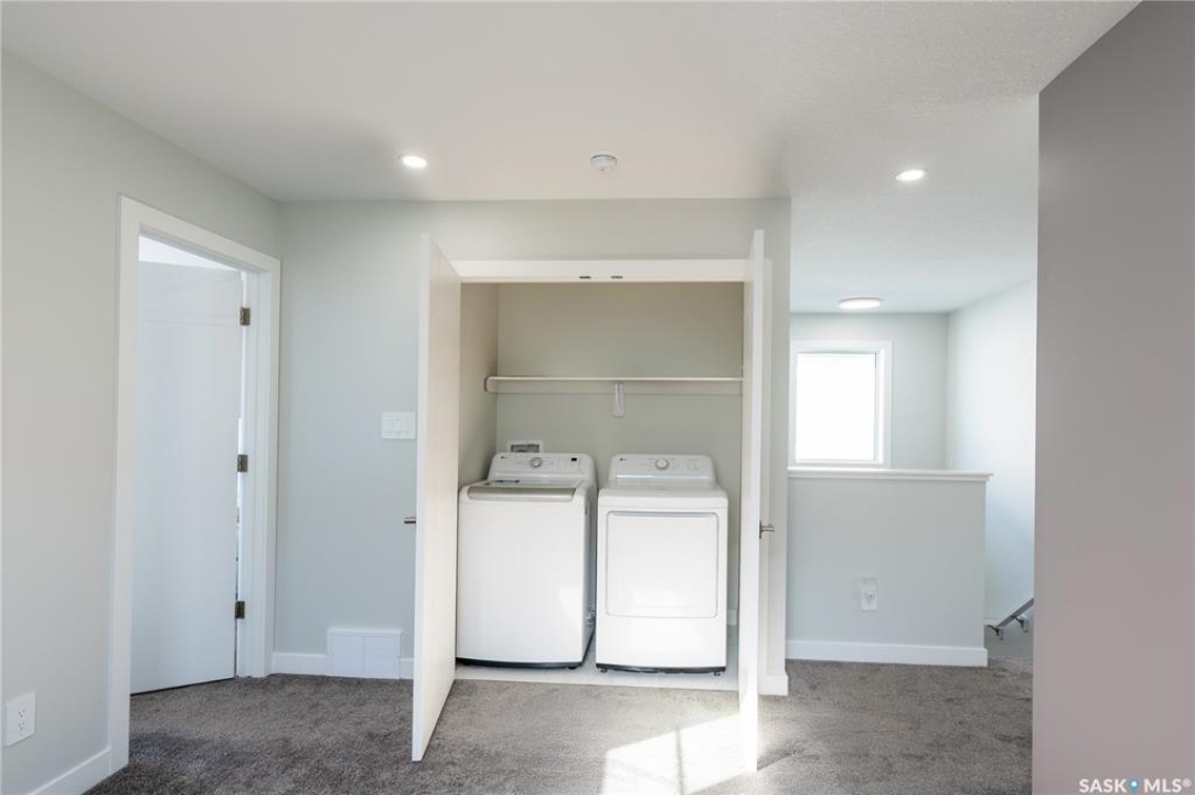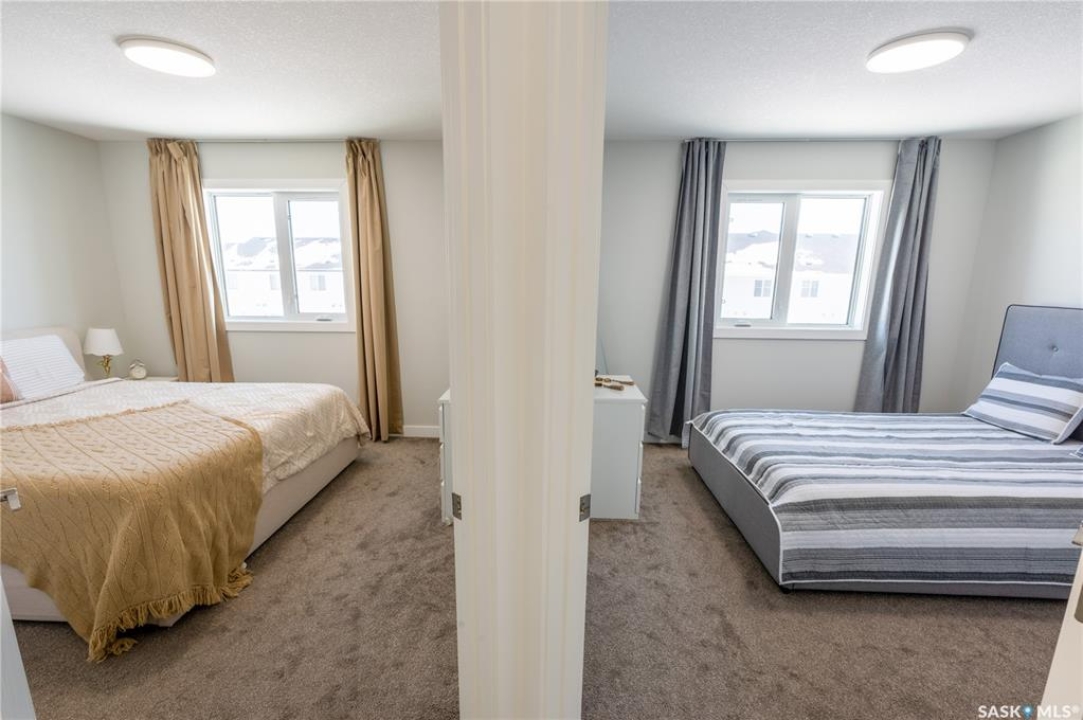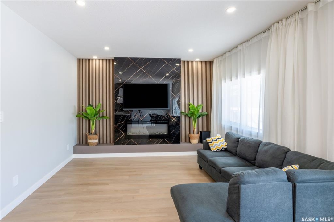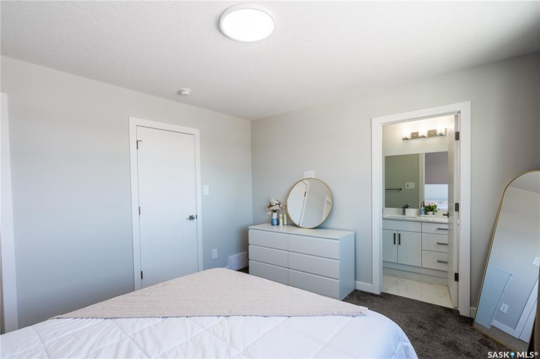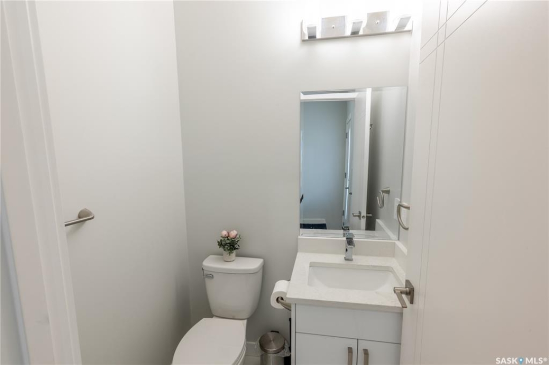 Welcome to this beautifully designed two-storey home in the vibrant and growing community of The Towns. Offering 1,681 sq ft of thoughtfully planned living space, this detached home perfectly blends comfort, functionality, and modern style. From the inviting curb appeal to the double attached garage and 2-car concrete driveway, every detail has been carefully considered. Step inside to a bright and open main floor featuring durable vinyl plank flooring throughout. The spacious living room flows seamlessly into the dining area and upgraded kitchen, complete with stainless steel appliances, quartz countertops, and ample cabinetry — creating the perfect setting for everyday living and entertaining. A stylish feature wall with an electric fireplace adds warmth and character. The main floor also includes a bedroom and a convenient 2-piece powder room. Upstairs, you'll find three generously sized bedrooms plus a versatile bonus room ideal for a home office, playroom, or additional lounge space. The comfortable primary suite features a private 4-piece ensuite, while a second full bathroom and dedicated laundry area enhance the home's practical and family-friendly layout. Plush carpeting in all bedrooms adds warmth and comfort. Additional highlights include vinyl siding with stone accents and excellent curb appeal. The separate basement entry offers outstanding potential for a future suite or expanded living space. Ideally situated in one of Regina's most sought-after neighborhoods, this home delivers modern living with exceptional future potential.