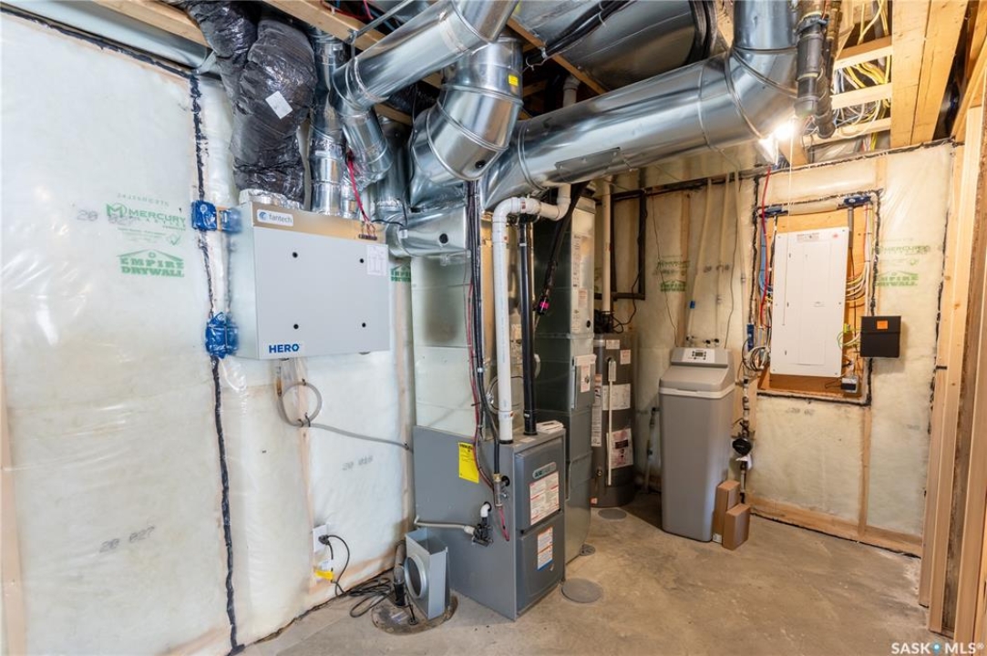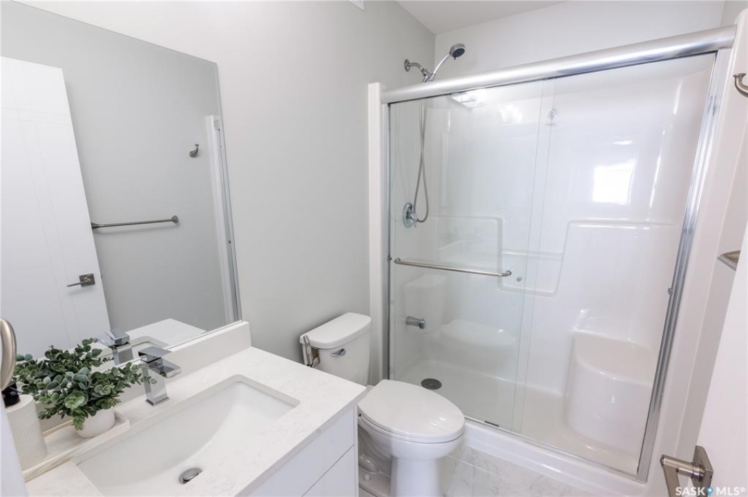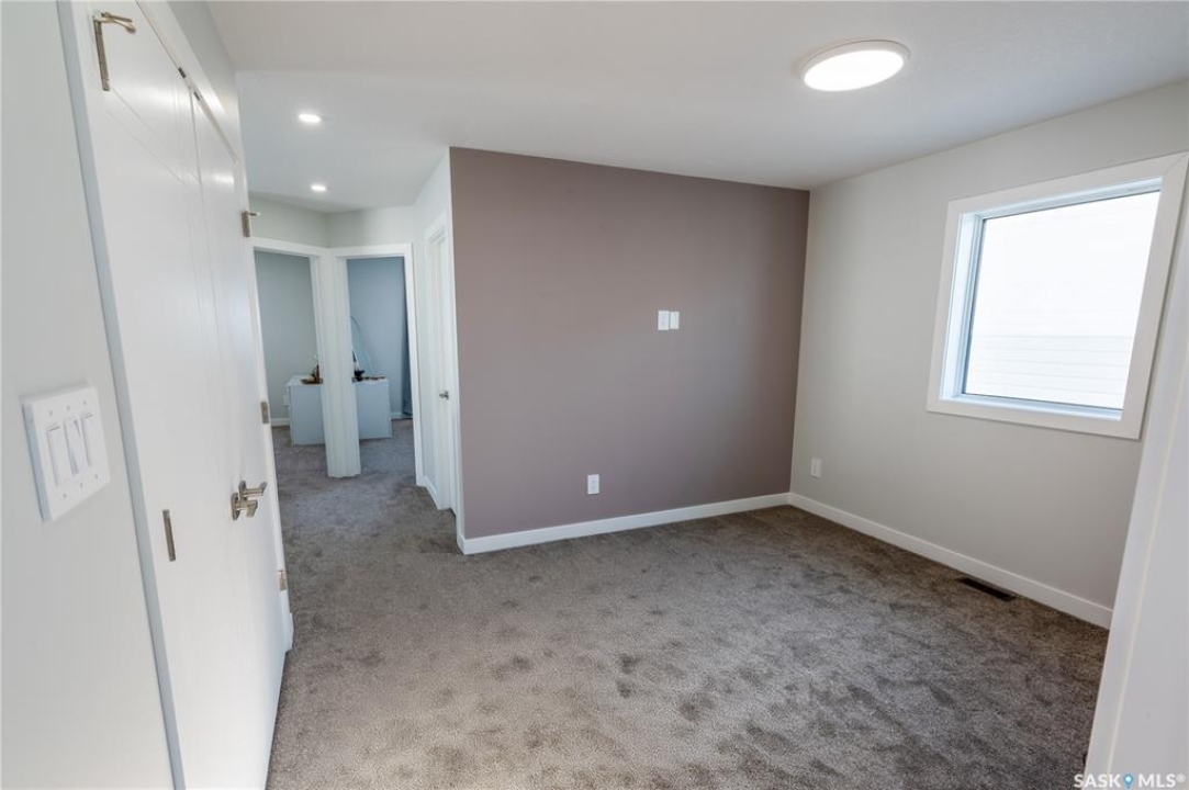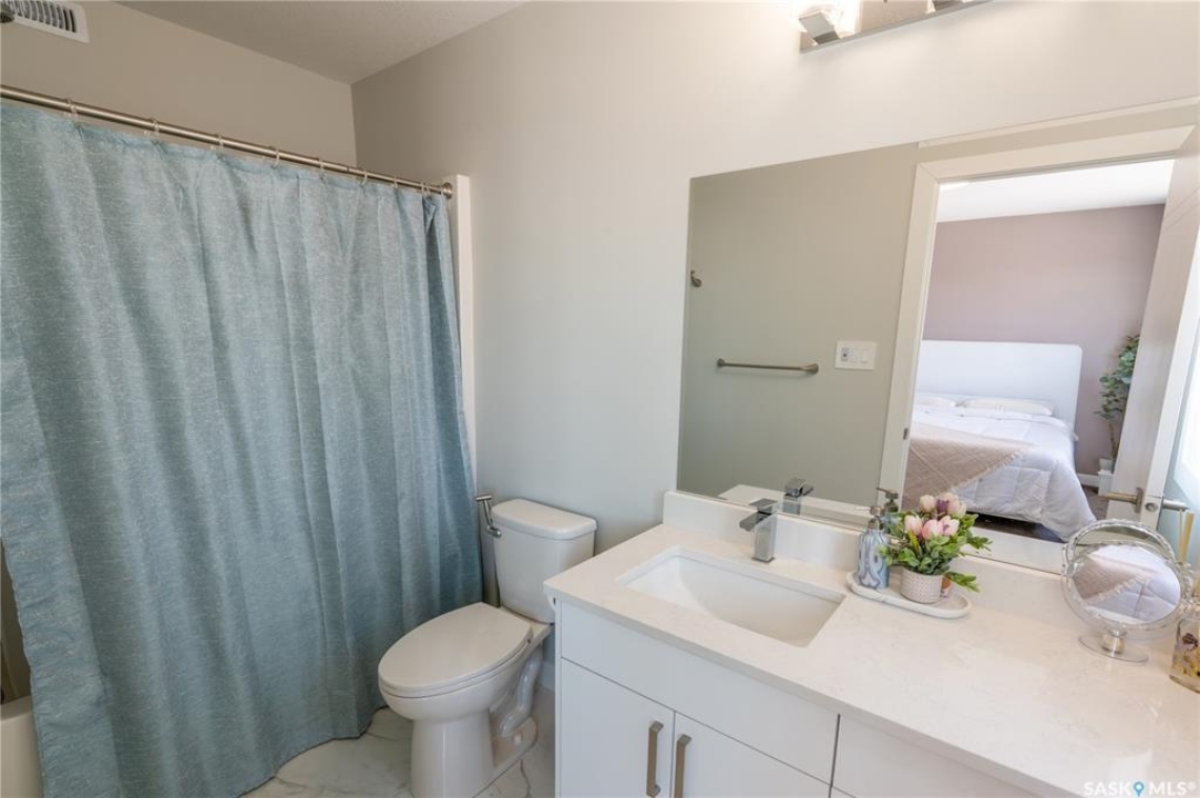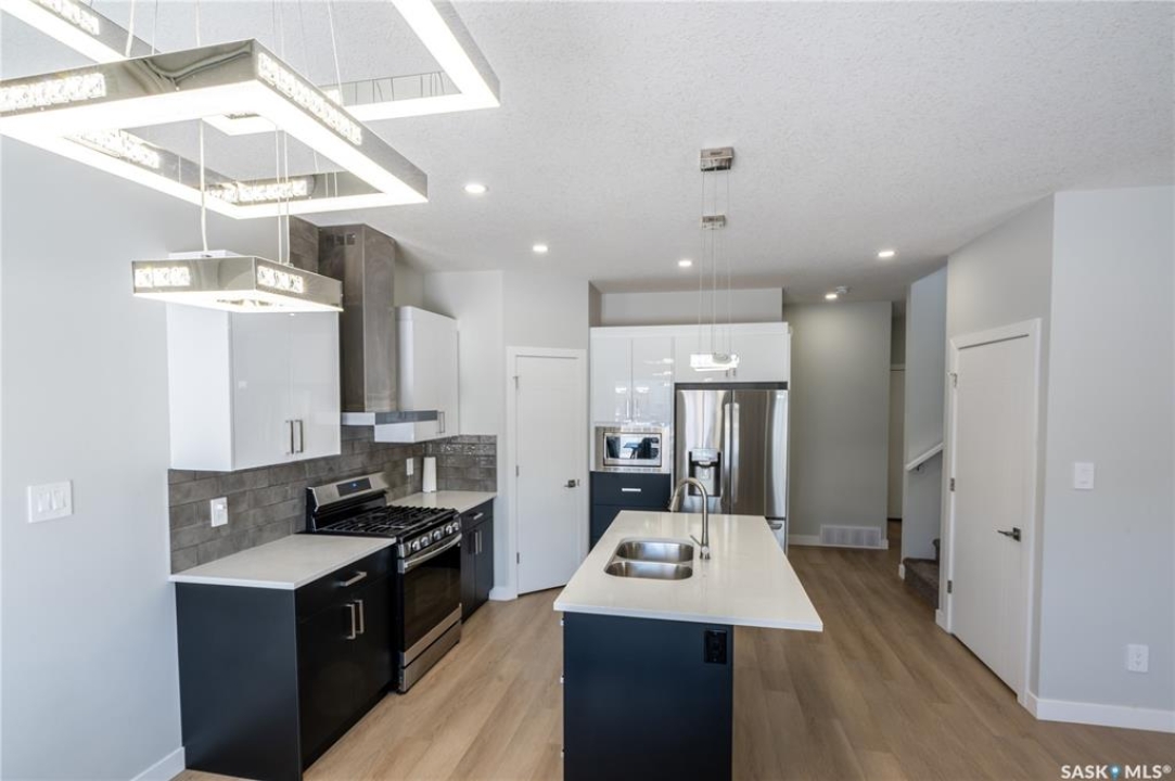 Welcome to this beautifully designed two-storey home in the vibrant and growing community of The Towns. Offering 1,681 sq ft of thoughtfully planned living space, this detached home perfectly blends comfort, functionality, and modern style. From the inviting curb appeal to the double attached garage and 2-car concrete driveway, every detail has been carefully considered. Step inside to a bright and open main floor featuring durable vinyl plank flooring throughout. The spacious living room flows seamlessly into the dining area and upgraded kitchen, complete with stainless steel appliances, quartz countertops, and ample cabinetry — creating the perfect setting for everyday living and entertaining. A stylish feature wall with an electric fireplace adds warmth and character. The main floor also includes a bedroom and a convenient 2-piece powder room. Upstairs, you'll find three generously sized bedrooms plus a versatile bonus room ideal for a home office, playroom, or additional lounge space. The comfortable primary suite features a private 4-piece ensuite, while a second full bathroom and dedicated laundry area enhance the home's practical and family-friendly layout. Plush carpeting in all bedrooms adds warmth and comfort. Additional highlights include vinyl siding with stone accents and excellent curb appeal. The separate basement entry offers outstanding potential for a future suite or expanded living space. Ideally situated in one of Regina's most sought-after neighborhoods, this home delivers modern living with exceptional future potential.
