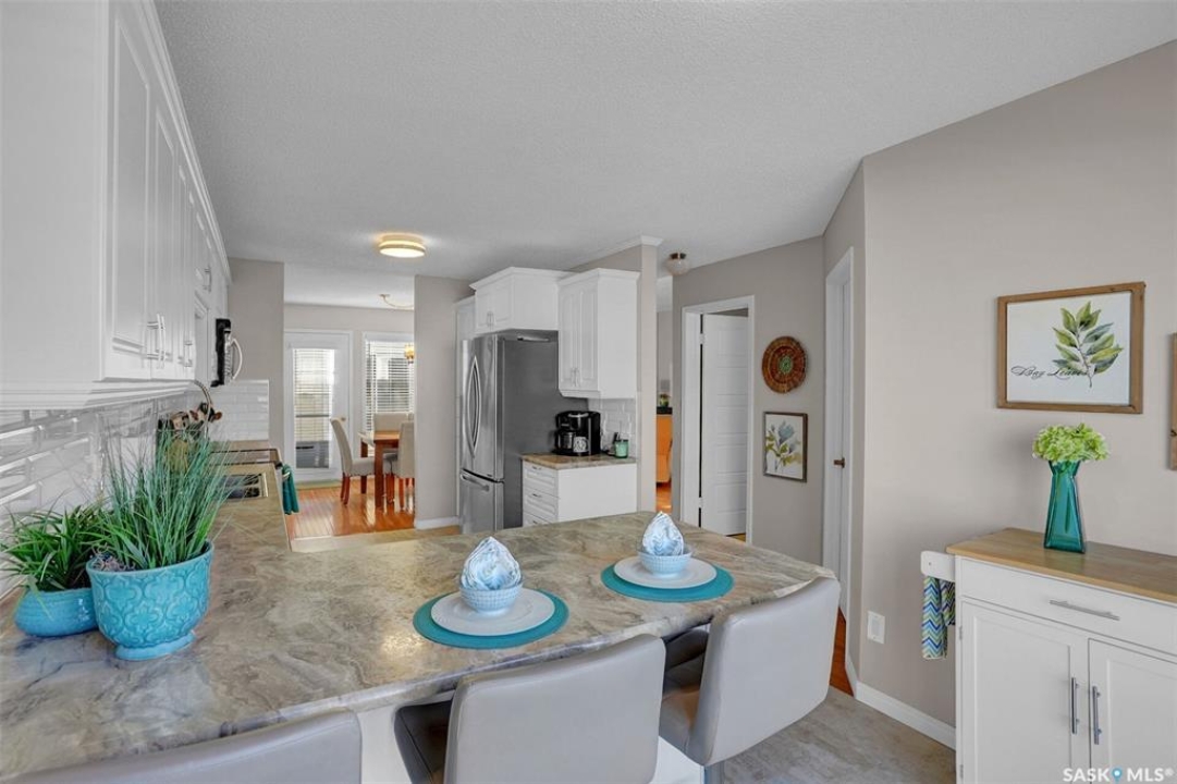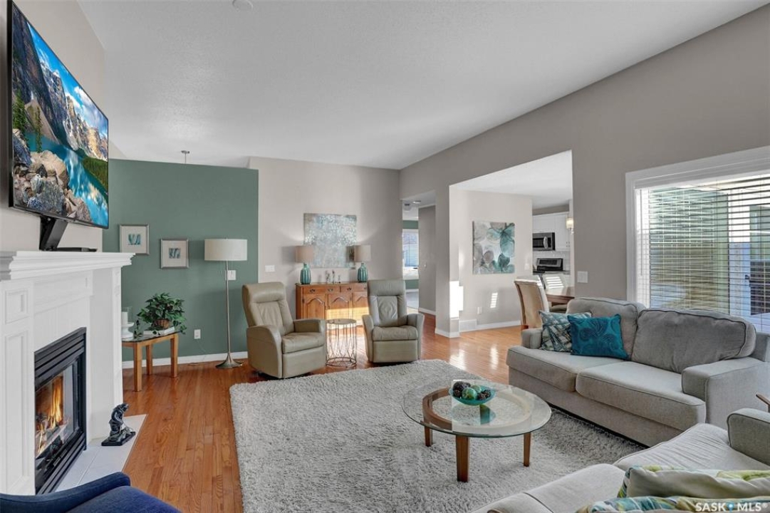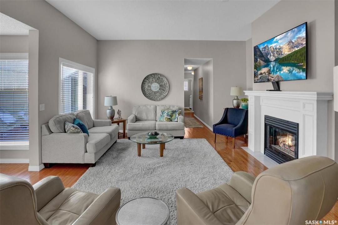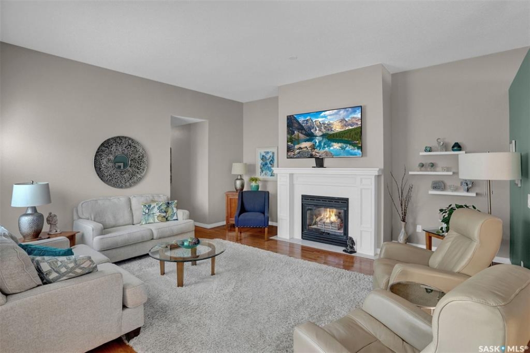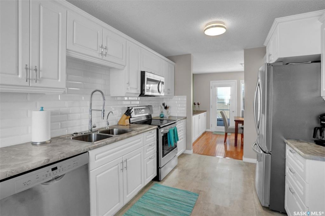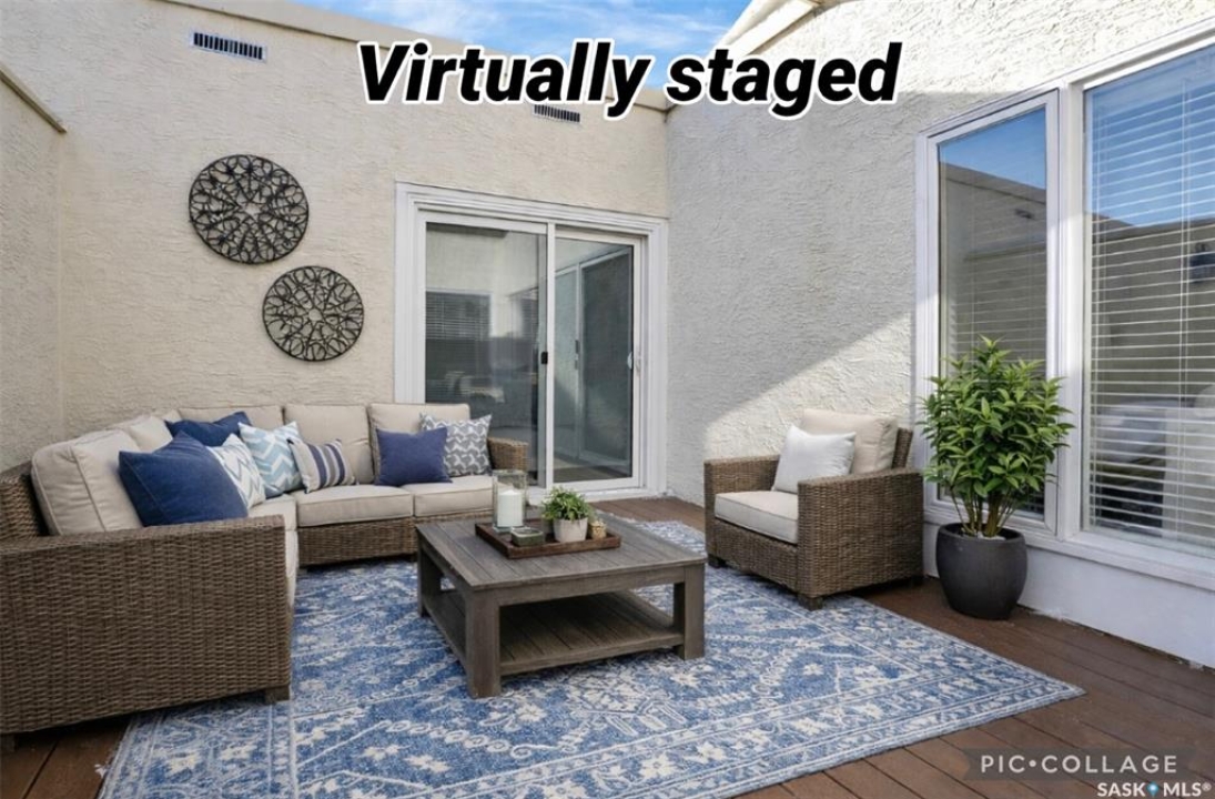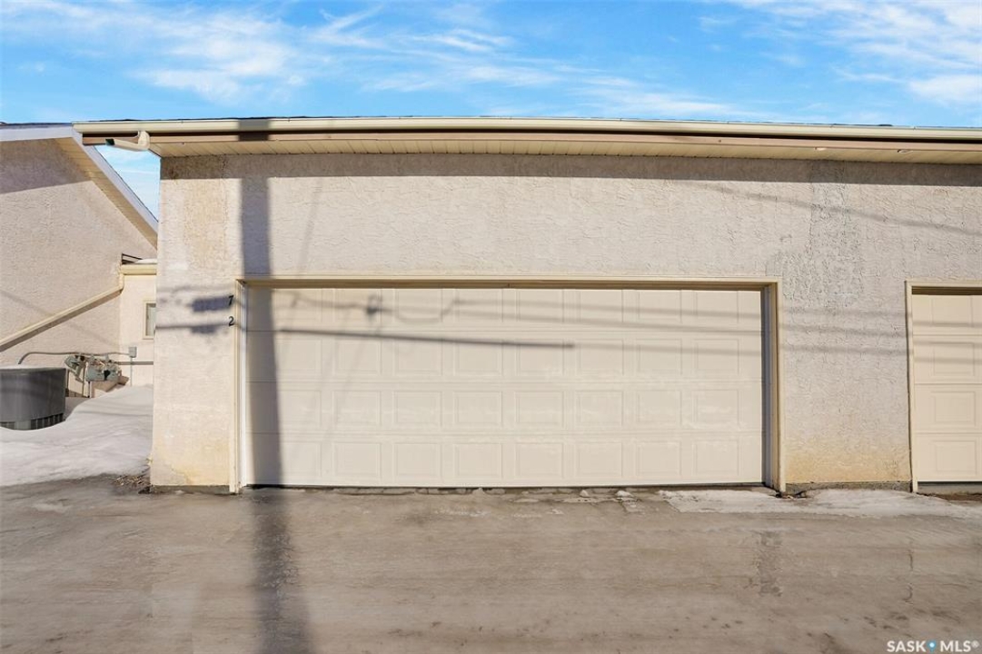 Welcome to this beautifully renovated 1522 sqft bungalow – style condo with a double attached garage, offering a perfect blend of comfort, style, and convenience. This stunning home features 2 spacious bedrooms, and 2 full bathrooms, with thoughtful upgrades throughout. The new kitchen is bright and inviting with crisp white cabinetry, ample storage, and a sit up peninsula – ideal for casual dining, or entertaining. The dining area flows seamlessly into the large living room, highlighted by a striking feature fireplace wall that creates a warm and welcoming focal point. The generous primary bedroom includes a 3 pc ensuite with a modern walk in shower. Main floor laundry with storage is ideal. With access from the dining room or the primary bedroom, it is just steps outside to your private deck area, where you'll love soaking up the sun, or relaxing with family or friends, in the fresh air. The basement is unfinished offering excellent potential for development, and includes a new furnace (2025), for added peace of mind. With the great South area of Regina location, numerous upgrades, and the move in ready feel, this exceptional bungalow condo is a must see. This secure/gated complex includes access to the community club house, exercise area, and visitor parking.