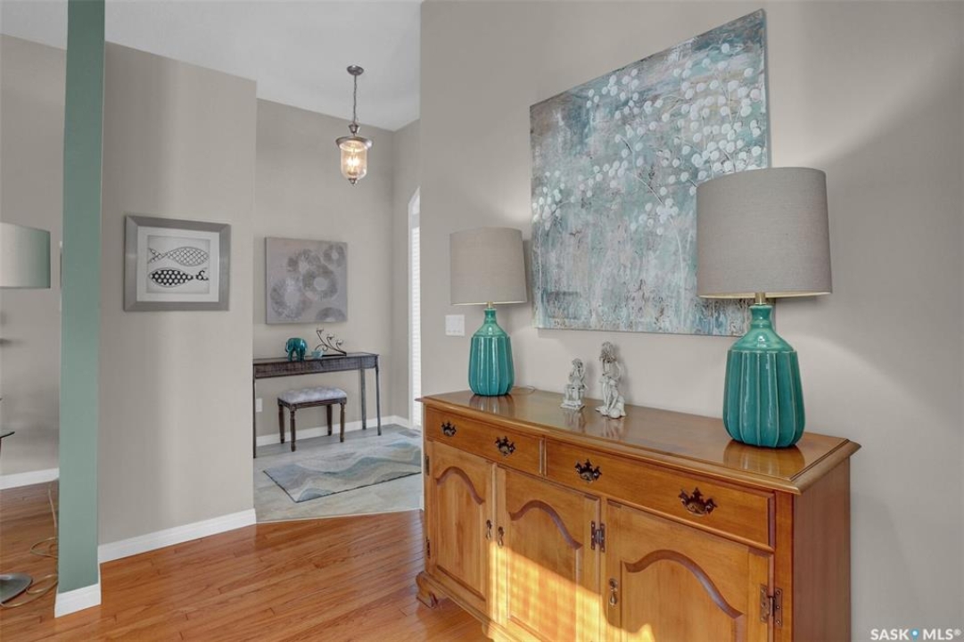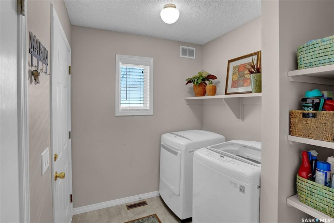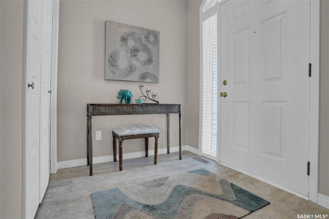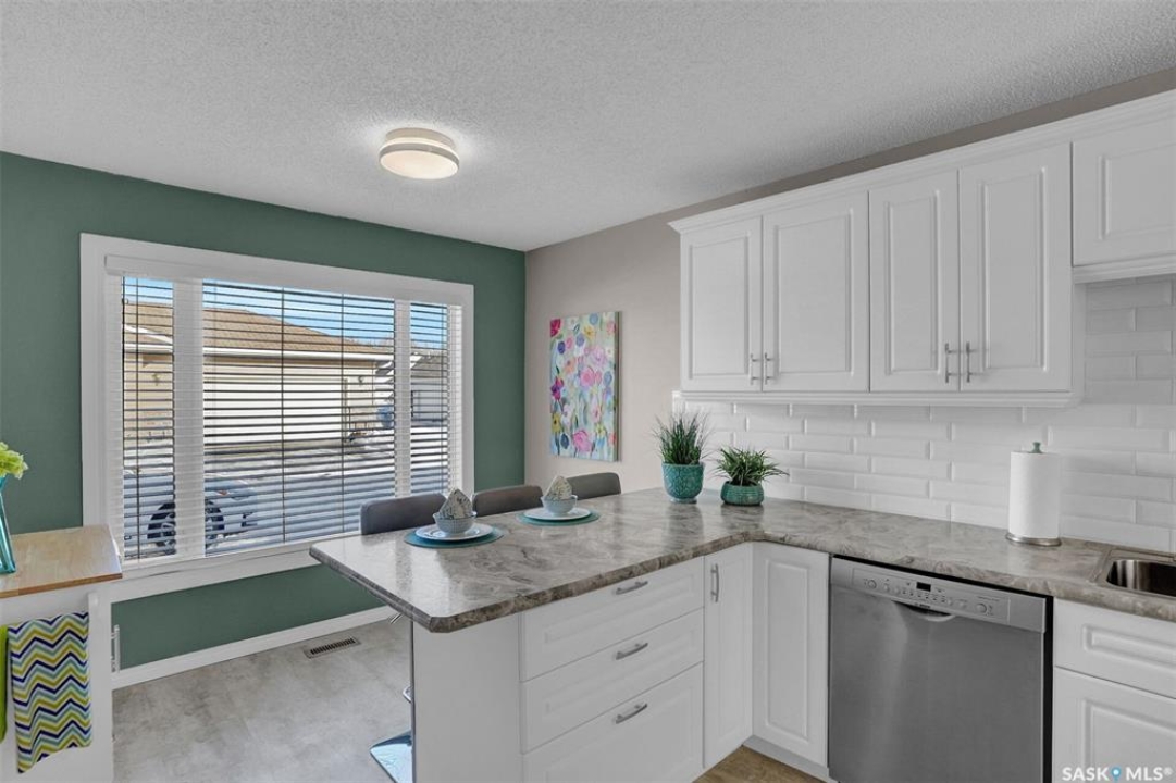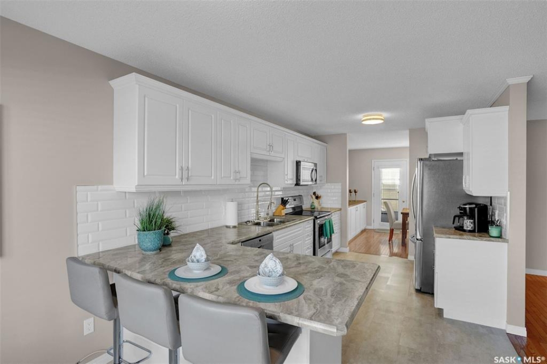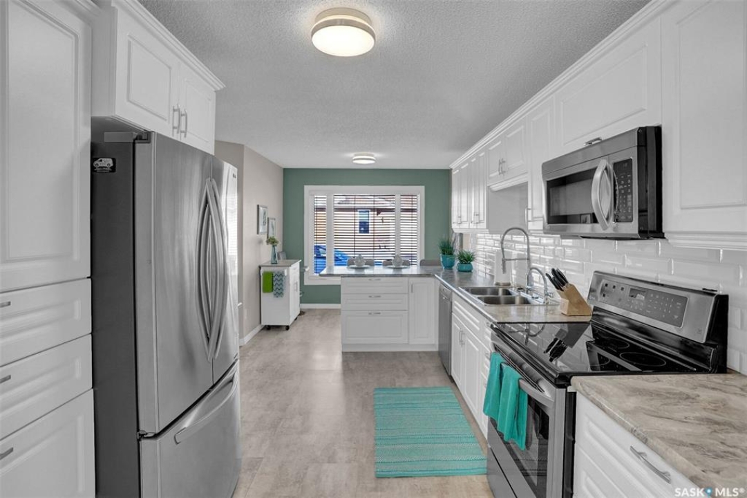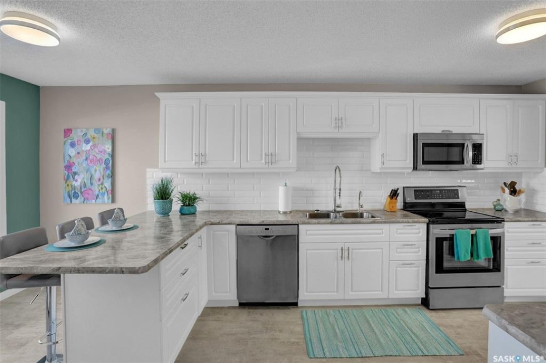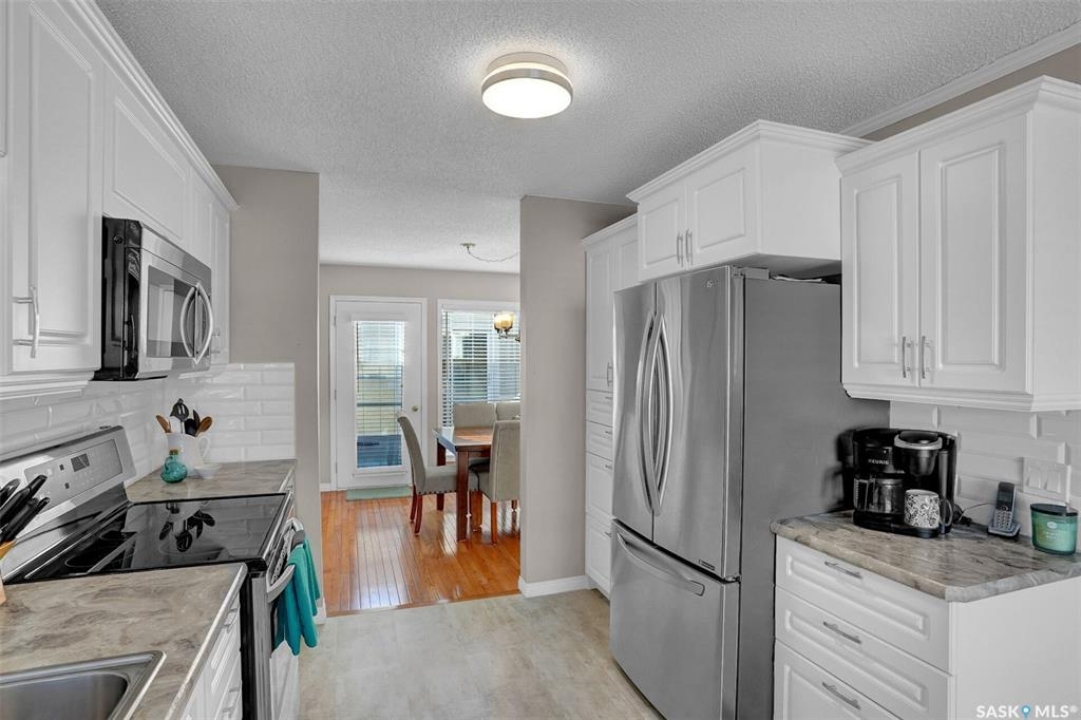 Welcome to this beautifully renovated 1522 sqft bungalow – style condo with a double attached garage, offering a perfect blend of comfort, style, and convenience. This stunning home features 2 spacious bedrooms, and 2 full bathrooms, with thoughtful upgrades throughout. The new kitchen is bright and inviting with crisp white cabinetry, ample storage, and a sit up peninsula – ideal for casual dining, or entertaining. The dining area flows seamlessly into the large living room, highlighted by a striking feature fireplace wall that creates a warm and welcoming focal point. The generous primary bedroom includes a 3 pc ensuite with a modern walk in shower. Main floor laundry with storage is ideal. With access from the dining room or the primary bedroom, it is just steps outside to your private deck area, where you'll love soaking up the sun, or relaxing with family or friends, in the fresh air. The basement is unfinished offering excellent potential for development, and includes a new furnace (2025), for added peace of mind. With the great South area of Regina location, numerous upgrades, and the move in ready feel, this exceptional bungalow condo is a must see. This secure/gated complex includes access to the community club house, exercise area, and visitor parking.