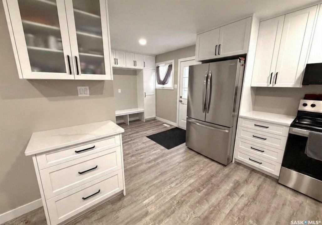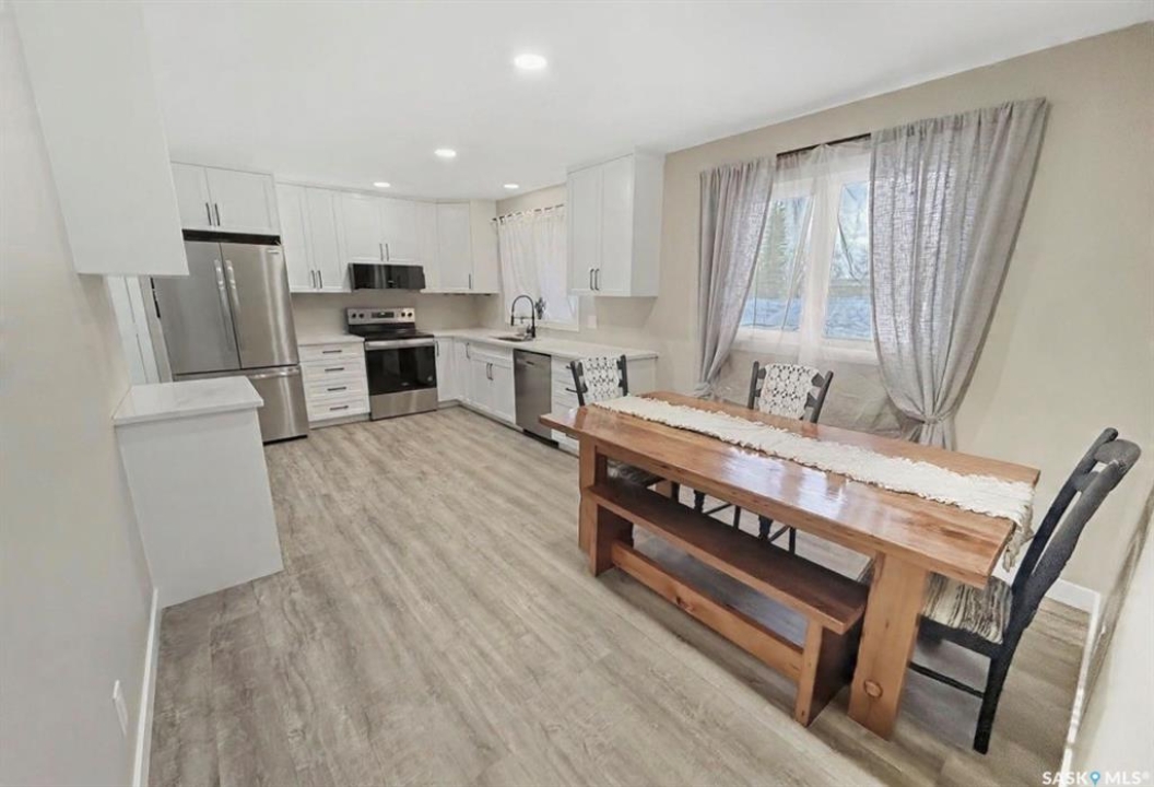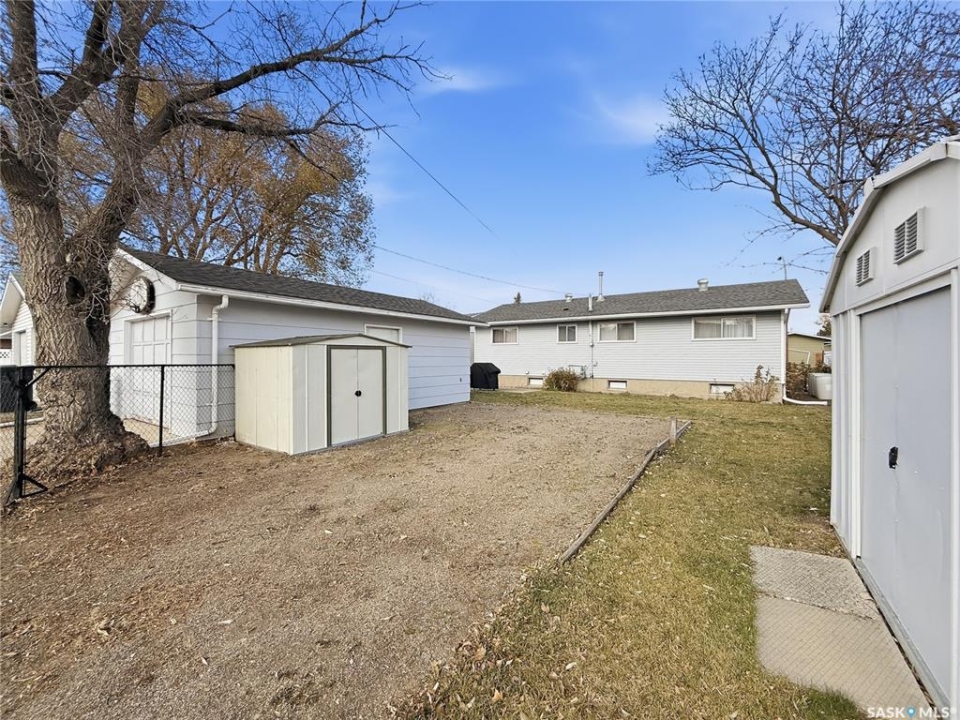 Move-in ready and showing beautifully, this extensively updated 1,172 sq ft bungalow in the desirable northeast quadrant truly feels like new on the main floor. Recent renovations include updated flooring, modern paint, trim, doors, and lighting throughout, creating a fresh, cohesive feel. The bright white kitchen features quartz countertops, recessed lighting, and a full stainless steel appliance package less than two years old, with excellent space for both an island and dining area. Comfort is further enhanced with a new central air conditioner (2025), offering peace of mind for years to come. The location is hard to beat — a genuine five-star setting with greenspace directly across the street and easy walking distance to Elmwood Golf Course, plus nearby schools, parks, walking paths, daycare options, the Iplex, and baseball diamonds. A generous rear mudroom with built-in lockers adds everyday practicality, while the refreshed bathroom and three comfortable main-floor bedrooms create an ideal family layout. Additional updates include some PVC windows, vinyl siding, updated shingles, and a freshly painted lower-level family room. The basement offers versatility with a spacious family area, den, three-piece bathroom, laundry/utility space (NEW washer and dryer in 2025), mid-efficiency furnace, and PEX plumbing. Outside, enjoy a fully fenced yard with RV parking, a 16 x 24 garage, plus two storage sheds providing excellent extra space for tools, toys, or seasonal storage. A well-updated home in a standout location — functional, fresh, and ready for immediate possession.