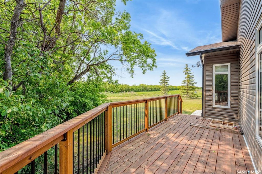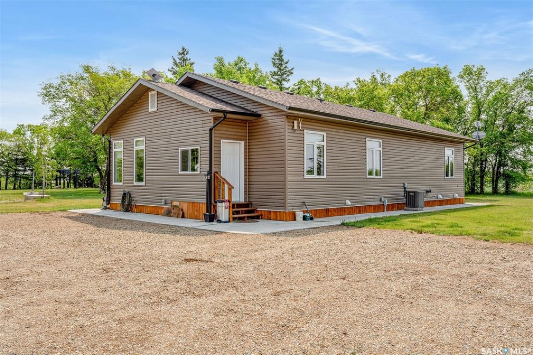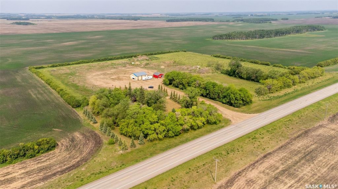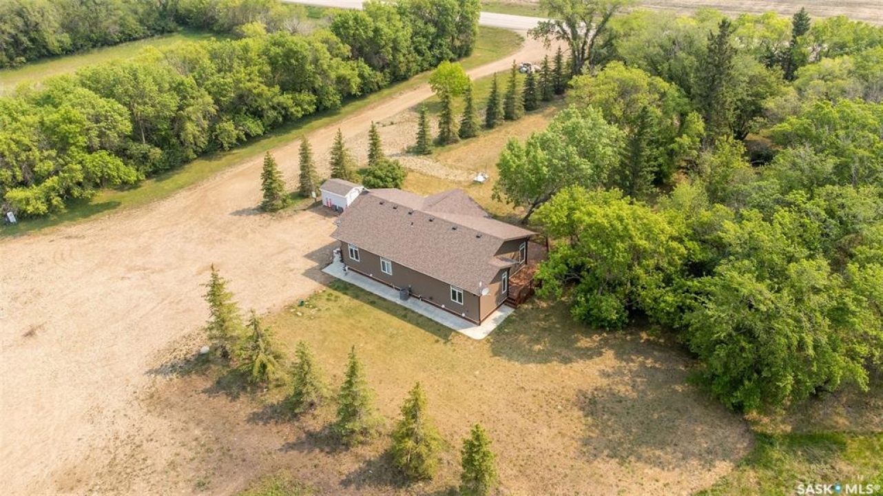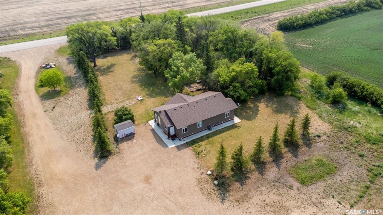 Embark on your own country sanctuary at the exquisite Spalding Acreage, a mere 5 kilometers south of Naicam on Highway 6. Nestled on nearly 13 acres of land, this property offers the perfect blend of charm and practicality. The yard features a mature shelter belt of trees surrounding the house, a spacious wrap-around deck on the east and south sides, and a sunken firepit area for entertaining. The back yard includes a gravel base suitable for heavy machinery, a 36x40 heated shop with 200 amp underground power, and a 24x24 detached garage with two overhead doors. The crown jewel of this property is the stunning 1553 sq ft home built in 2019 with brand new vinyl plan flooring throughout and a newly added porch. Inside, a modern open concept design welcomes you with a spacious dining room, vaulted ceilings, abundant windows, a well-appointed kitchen with a large center island, 5 burner natural gas stove, and new stainless steel appliances. The kitchen seamlessly flows into the living room area, offering picturesque views of the front yard and ample natural light. Additional features include main floor laundry, a main 4 pc bathroom, 3 large bedrooms, and a primary bedroom with a walk-in closet and 4 pc ensuite bathroom. An incredible opportunity awaits to experience this exceptional property firsthand. Schedule your showing today!