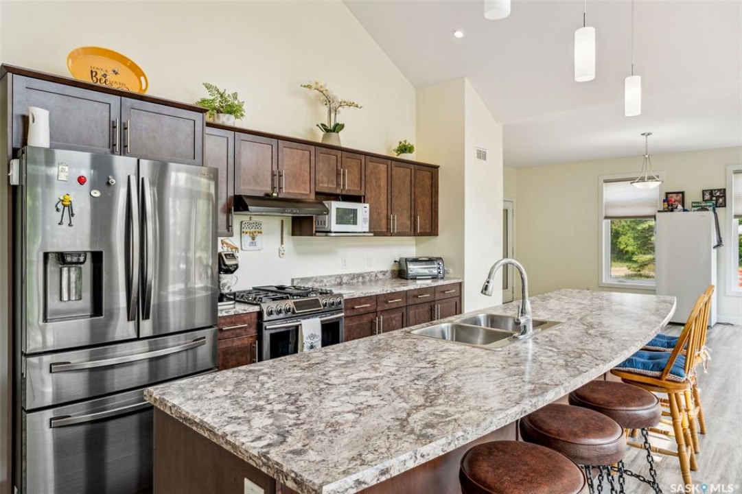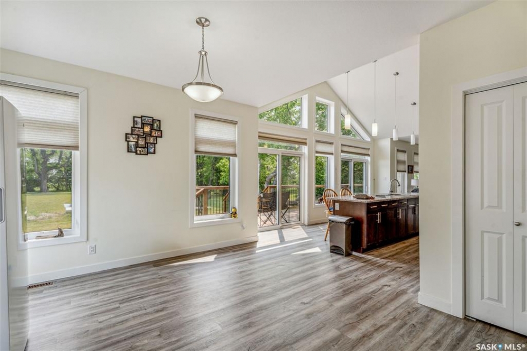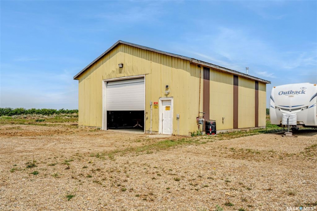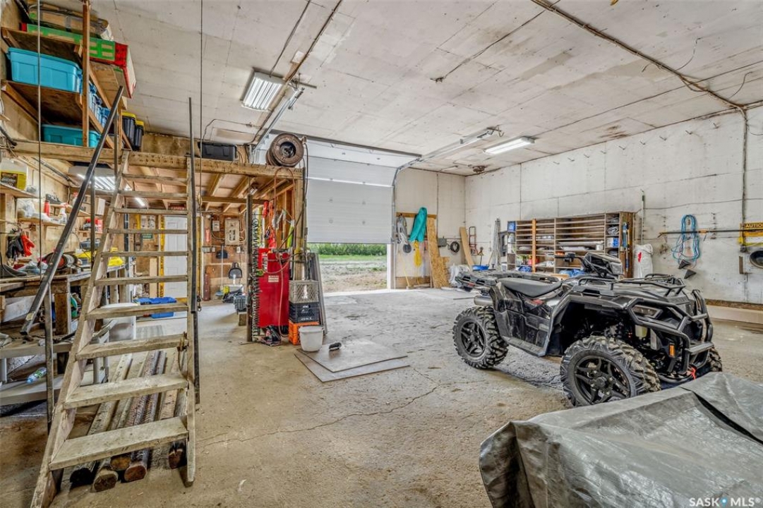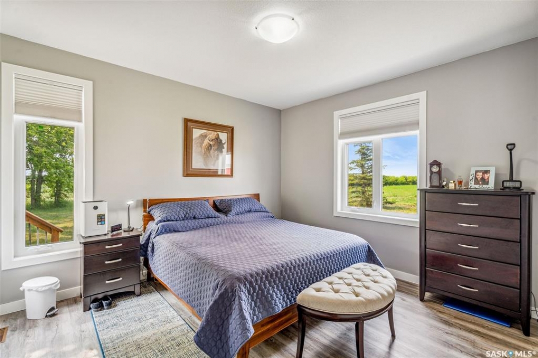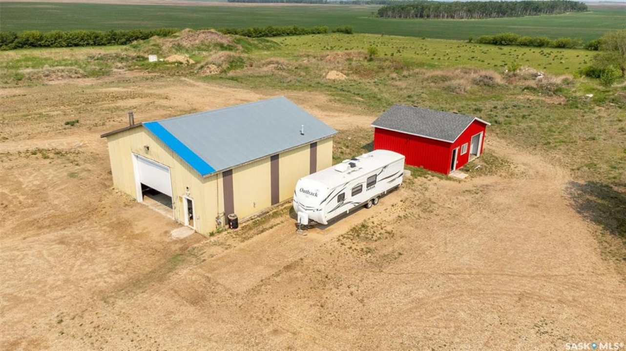 Embark on your own country sanctuary at the exquisite Spalding Acreage, a mere 5 kilometers south of Naicam on Highway 6. Nestled on nearly 13 acres of land, this property offers the perfect blend of charm and practicality. The yard features a mature shelter belt of trees surrounding the house, a spacious wrap-around deck on the east and south sides, and a sunken firepit area for entertaining. The back yard includes a gravel base suitable for heavy machinery, a 36x40 heated shop with 200 amp underground power, and a 24x24 detached garage with two overhead doors. The crown jewel of this property is the stunning 1553 sq ft home built in 2019 with brand new vinyl plan flooring throughout and a newly added porch. Inside, a modern open concept design welcomes you with a spacious dining room, vaulted ceilings, abundant windows, a well-appointed kitchen with a large center island, 5 burner natural gas stove, and new stainless steel appliances. The kitchen seamlessly flows into the living room area, offering picturesque views of the front yard and ample natural light. Additional features include main floor laundry, a main 4 pc bathroom, 3 large bedrooms, and a primary bedroom with a walk-in closet and 4 pc ensuite bathroom. An incredible opportunity awaits to experience this exceptional property firsthand. Schedule your showing today!