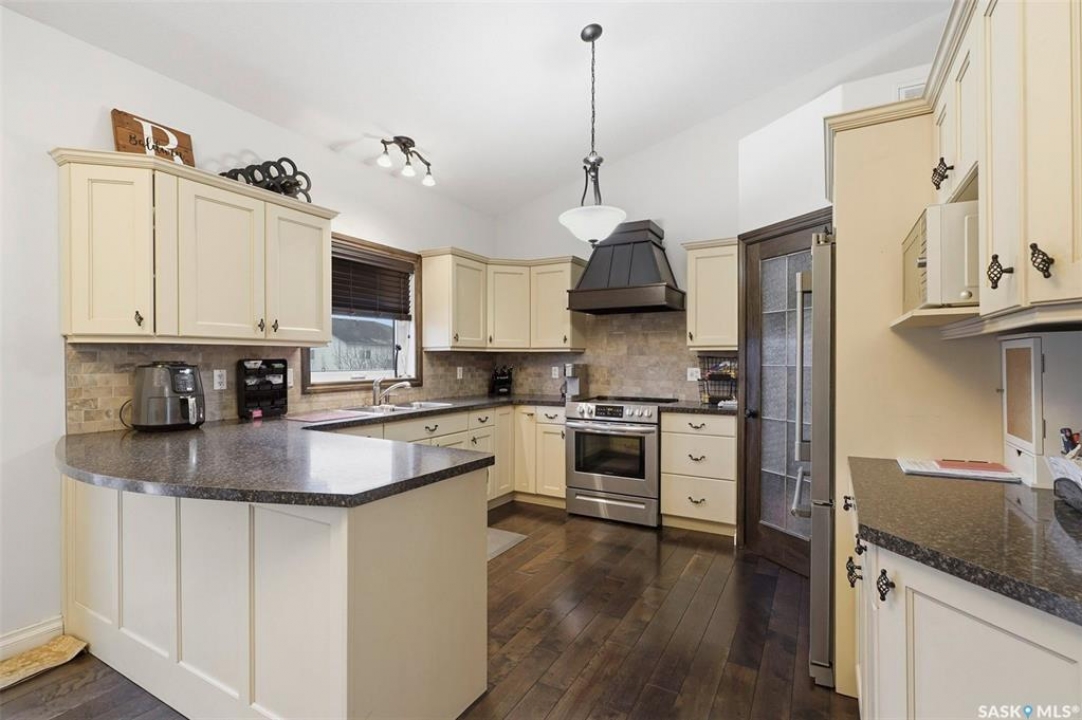 Spacious Southend Bungalow on Quiet Street! Welcome to this beautifully maintained 1,336 sq. ft. family bungalow offering an exceptional layout and room for everyone. Featuring 5 bedrooms and 3 bathrooms, this home is perfectly suited for growing families or those who love to entertain. The airy main floor showcases vaulted ceilings and a very large living room filled with natural light. The upgraded kitchen offers ample cabinetry and prep space, and all appliances are included for added convenience. The spacious primary bedroom features a 3-piece ensuite and a walk-in closet, creating a comfortable private retreat. Downstairs, you'll find a huge entertaining area in the basement, along with additional bedrooms and flexible space ideal for guests, teens, or a home office. Step outside to enjoy the fully landscaped and fenced yard, complete with a two-tiered deck—perfect for summer gatherings. The property also features back alley access and a new Shercom rubber driveway, adding both curb appeal and durability. Additional highlights include central air conditioning and central vac, ensuring year-round comfort and convenience plus upgraded ICF foundation!!! Ideally located in a quiet Southend neighborhood, just steps from parks and greenspace, this move-in-ready home checks all the boxes.