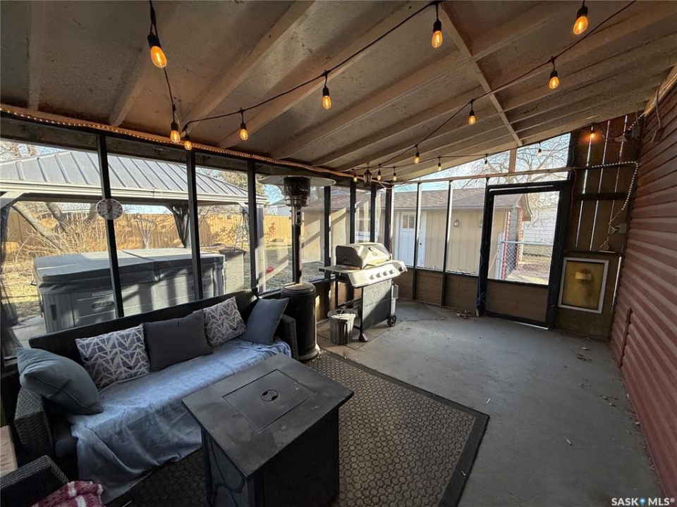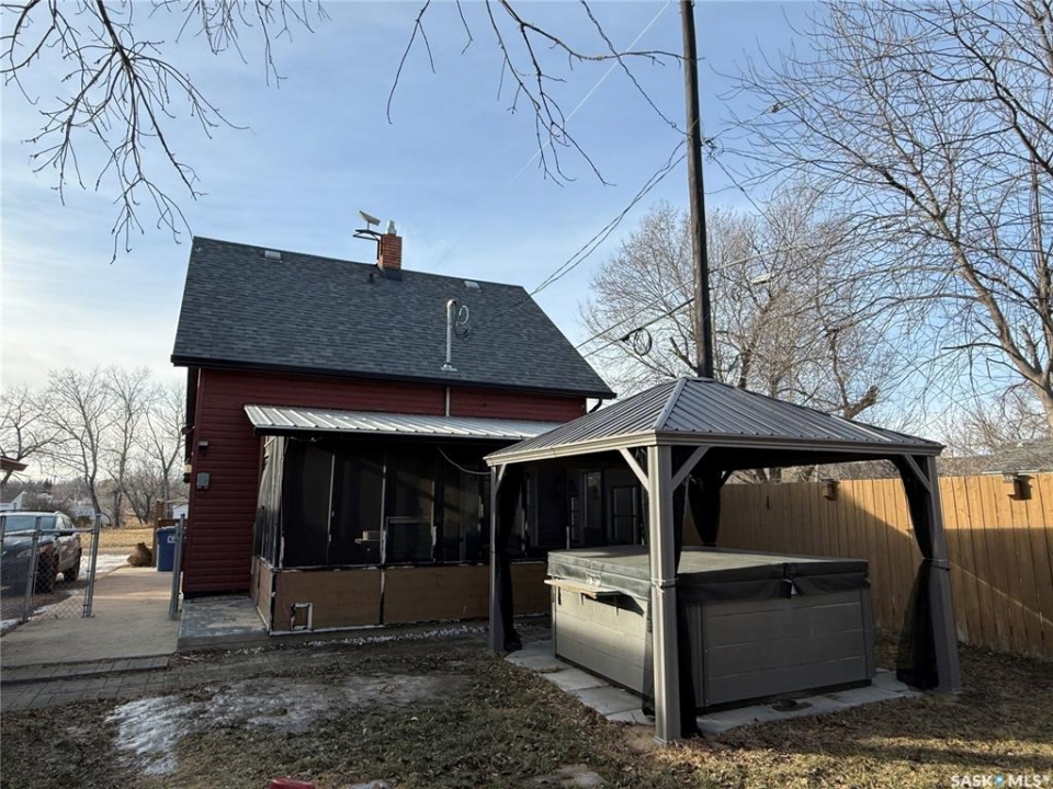 Well-kept and welcoming Radville home with great curb appeal and extensive updates in a quiet area of town. This 1 1/2 storey property features 3 bedrooms on the second floor, a renovated main floor bathroom, and a functional layout with a front entrance mudroom. Enjoy the fully developed, fenced yard with a screened patio, plus a hot tub with gazebo included. The detached garage is great for storage and projects, heated with an included pellet stove. Bonus newly built 15x30' multi-purpose building has endless potential and was originally planned to be a simulator room. Key updates: furnace (2013), fence (2015), most windows & patio door (2016/17), shingles (2018), siding/soffit/fascia & front door (2019), bathroom (2019), cork foundation coating (2019), electrical panel (2020), RO system (2020), central air (2021), water softener and on demand water heater (2024). Move-in ready with comfort and value throughout.
