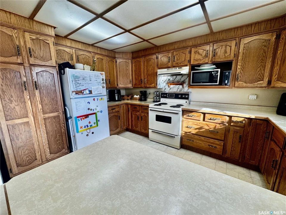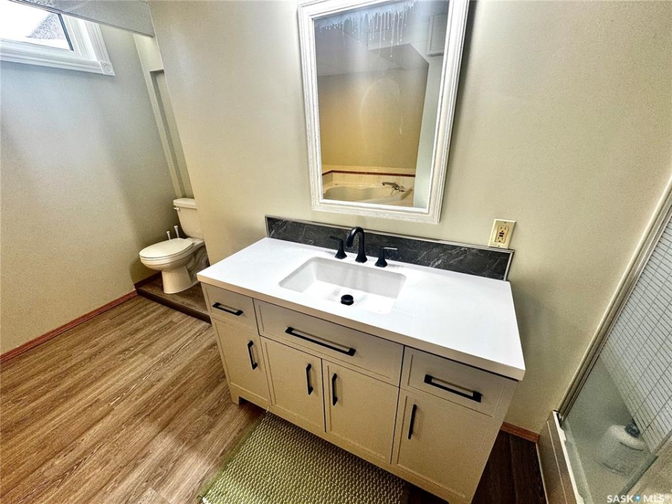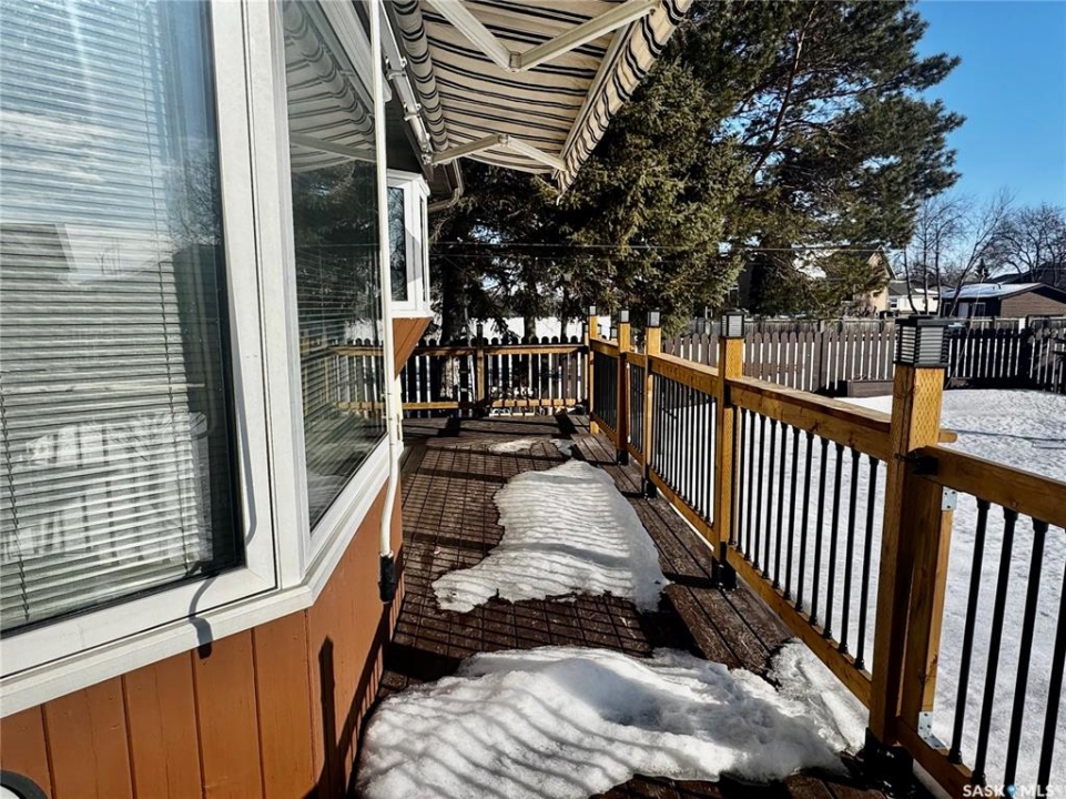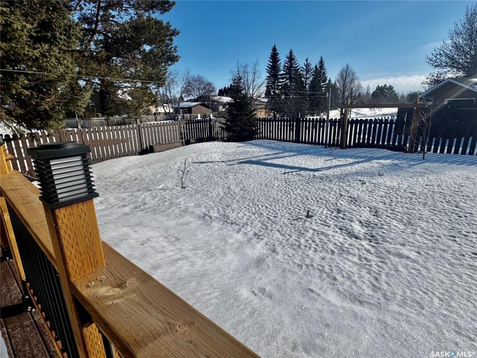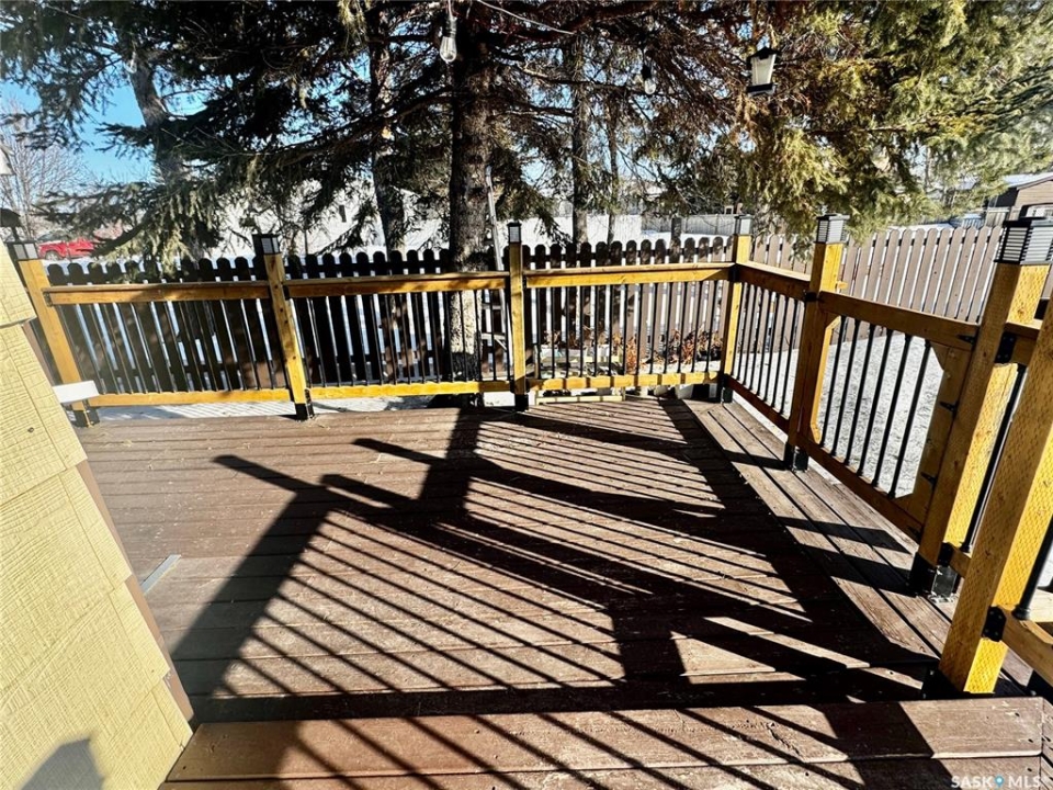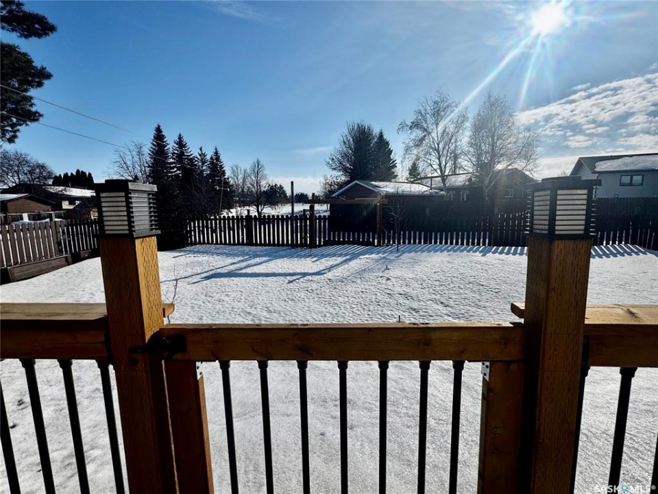 Welcome to 404 Darlington St E in Yorkton SK. This family home is in a perfect location with Weinmaster Park in back and MC Knoll-St.Michaels's school located right across the street. Driving up to the property, you will be welcomed to a concrete driveway that leads to a double car insulated garage (22x22). Entering the home through the north entrance will bring you to a good sized porch area with clear views of the large living room. The living room windows face north. A few steps will take you to the sunny south facing kitchen with an ample amount of counter and cupboard space. Enjoy meals in the south facing dining room. There is direct entry from the dining room area to the huge deck area that wraps around the south and east parts of the home. Down the hall you will find 3 excellent sized bedrooms. The main floor living space is completed with a 4 piece bathroom. Moving to the fully finished basement, you will find an extra large rec room area at the bottom of the stairs. The space has enough room for another living room, play area, and/or home gym. The basement also includes a large amount of storage rooms, office, 3 piece bathroom featuring soaker tub, and utility room. The utility room features HE Furnace and Central Air (2025), water heater (2019), water softener (owned) ,100AMP Electrical Panel, Washer, and Dryer (downstairs only). The front of the home features lawn. The back yard is fenced with back alley access to Weinmaster Park. The 2nd single detached garage is accessible from the street and has a size of 260 square feet. This property is located a short walking distance to two K-8 Schools MC Knoll and St. Micheal's. This property is not for rent. The owners have requested showings to be after 5PM Monday to Friday. Saturday and Sunday Showings to be between the hours of 9AM and 9PM.