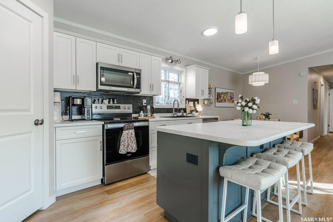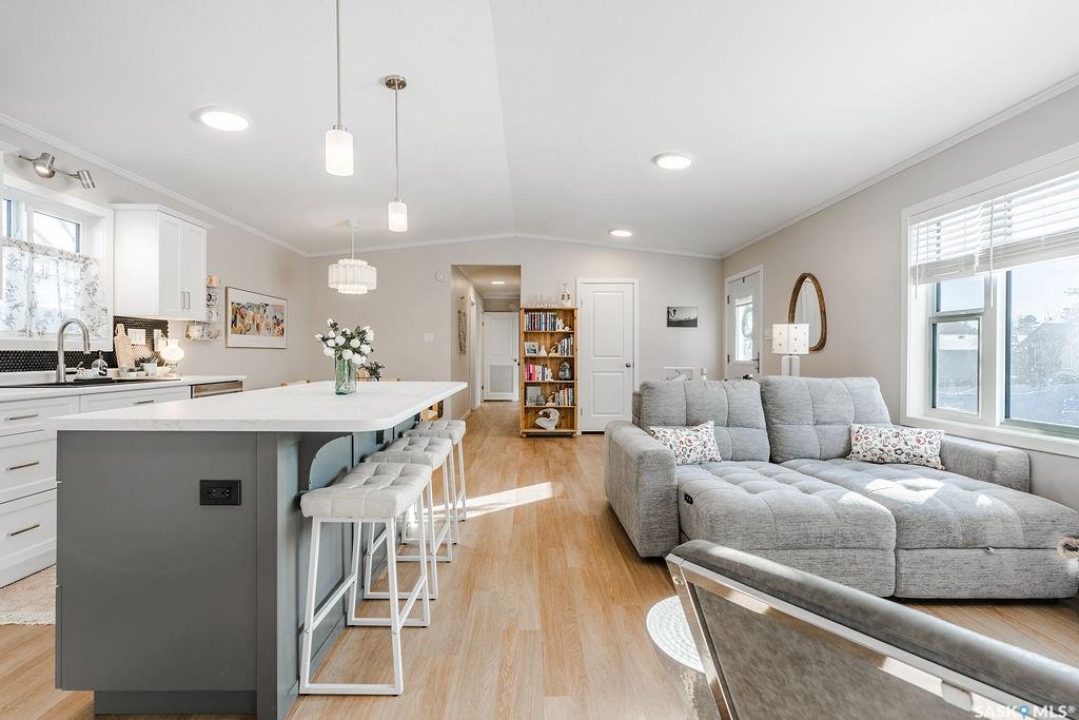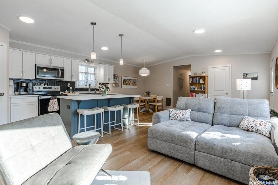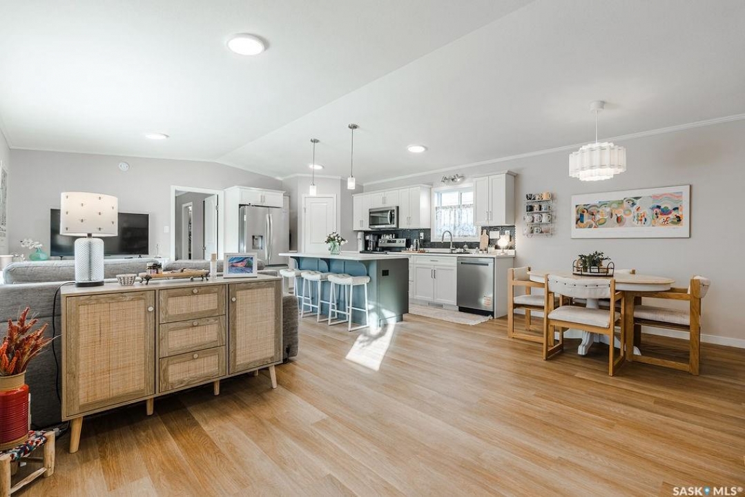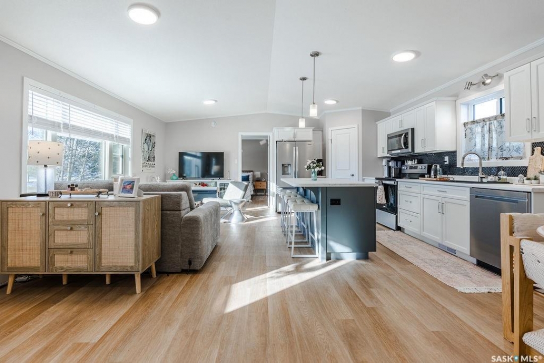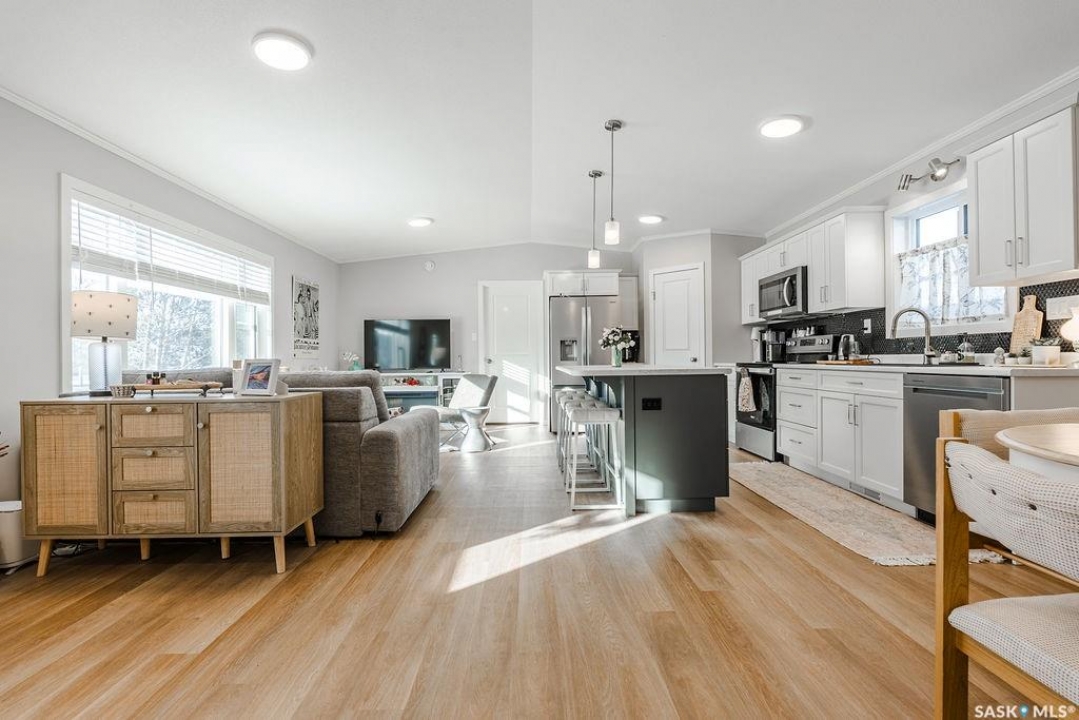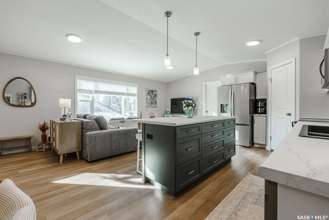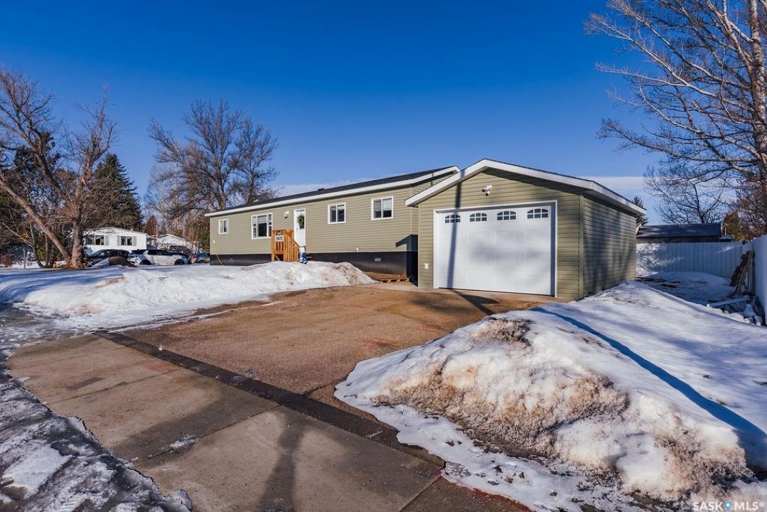 Welcome to 3605 Parkdale Road — a new 2025-built bungalow-style modular home on an owned city lot! Step inside to a bright and inviting open-concept main living area highlighted by a vaulted ceiling. The living room features oversized windows that flood the home with natural light and a cozy electric fireplace for added comfort. The stylish kitchen is thoughtfully designed with stainless steel appliances, a corner walk-in pantry, ample cabinetry, and a convenient eat-up island — perfect for casual meals or entertaining. The kitchen flows seamlessly into the dining area, making everyday living and hosting effortless. The spacious primary bedroom is privately situated and offers a generous walk-in closet along with a 3-piece ensuite bathroom. On the opposite side of the home — ideal for maximum privacy — you'll find two additional bedrooms and a full 4-piece bathroom. The functional mudroom includes laundry, built-in storage, and houses the mechanics, all conveniently located for practical everyday use. Situated on a large south facing corner lot (owned lot which means no lot/pad fees), this property also features a new single detached garage. Move-in ready, under warranty and built for modern lifestyles, this Grandeur built home is a fantastic opportunity for comfortable, low-maintenance ownership.