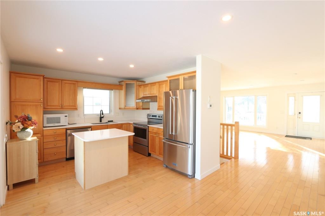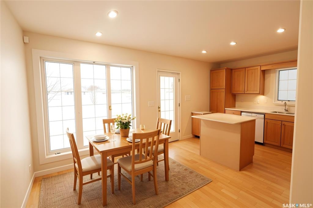 Welcome to 1226 Dover Avenue, Regina, SK. This well-maintained raised bungalow, built in 2001, offers nearly 1,000 sq. ft. of floor area and is situated on an approximately 5,300 sq. ft. lot. The home features a bright and functional layout filled with natural light. The kitchen and bathrooms have recently been upgraded, making the property move-in ready. The front of the home faces a quiet residential street, while the backyard backs onto green space/park, providing a peaceful setting and open view. Additional highlights include an attached single heated garage, as well as front and rear decks, ideal for outdoor enjoyment and entertaining. Located in a desirable, family-friendly neighborhood close to parks and amenities, this property offers excellent value and comfort. Note: some photos in the listing are virtually staged.