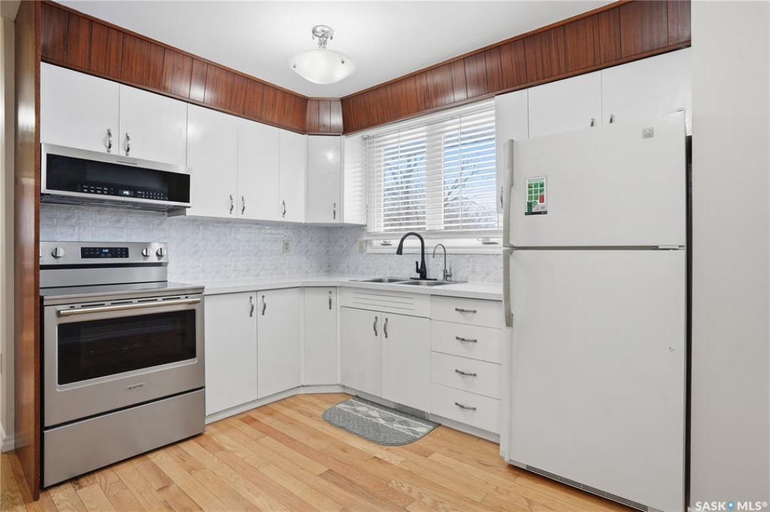 Situated on a tranquil street with a direct view of St. Francis Park, this bi-level residence features a total of four bedrooms, two bathrooms and a single attached garage. Upon entering the home, you will discover a good size living area complete with an upgraded bay window. The kitchen is equipped with all necessary appliances and provides access to the backyard deck and patio area. The main level is complemented by two bedrooms and a four-piece bathroom. The basement also includes two bedrooms, a three-piece bathroom, and a recreation room. The backyard is generously sized and perfect for entertaining, featuring a lawn, a sizable garden area, and a patio space . Upgrades include new shingles on both the house and garage, most windows, furnace, and hardwood flooring on the main level. The location is ideal, overlooking a schoolyard(St. Francis Elementary School), and the street is peaceful and well-established.