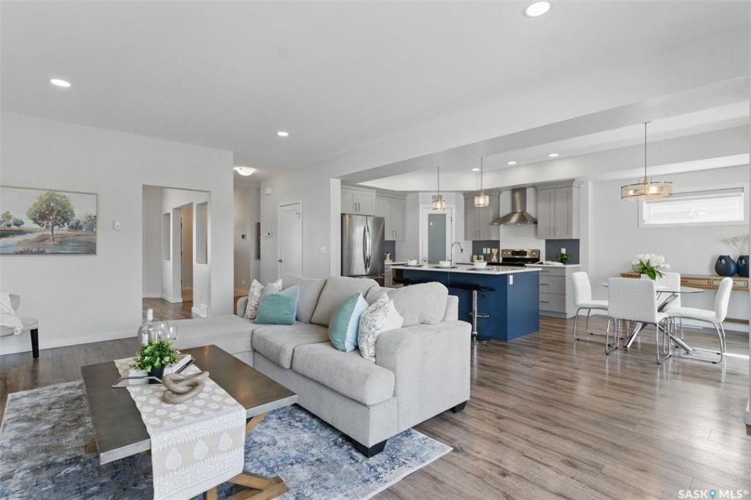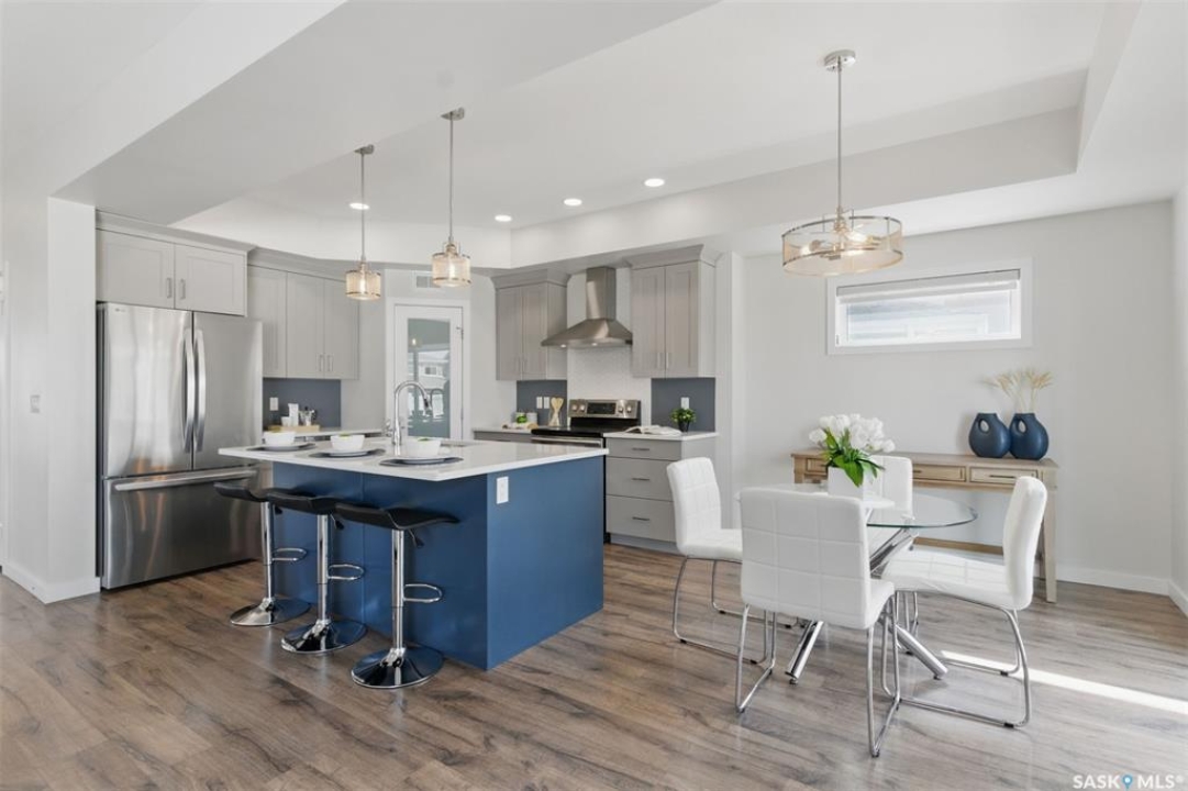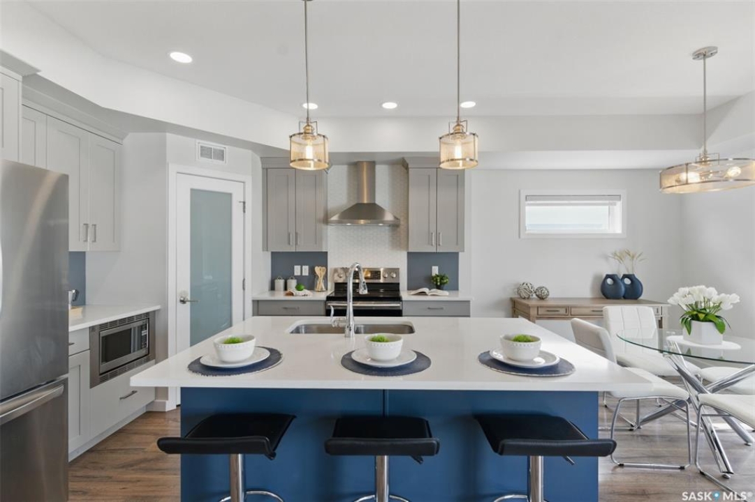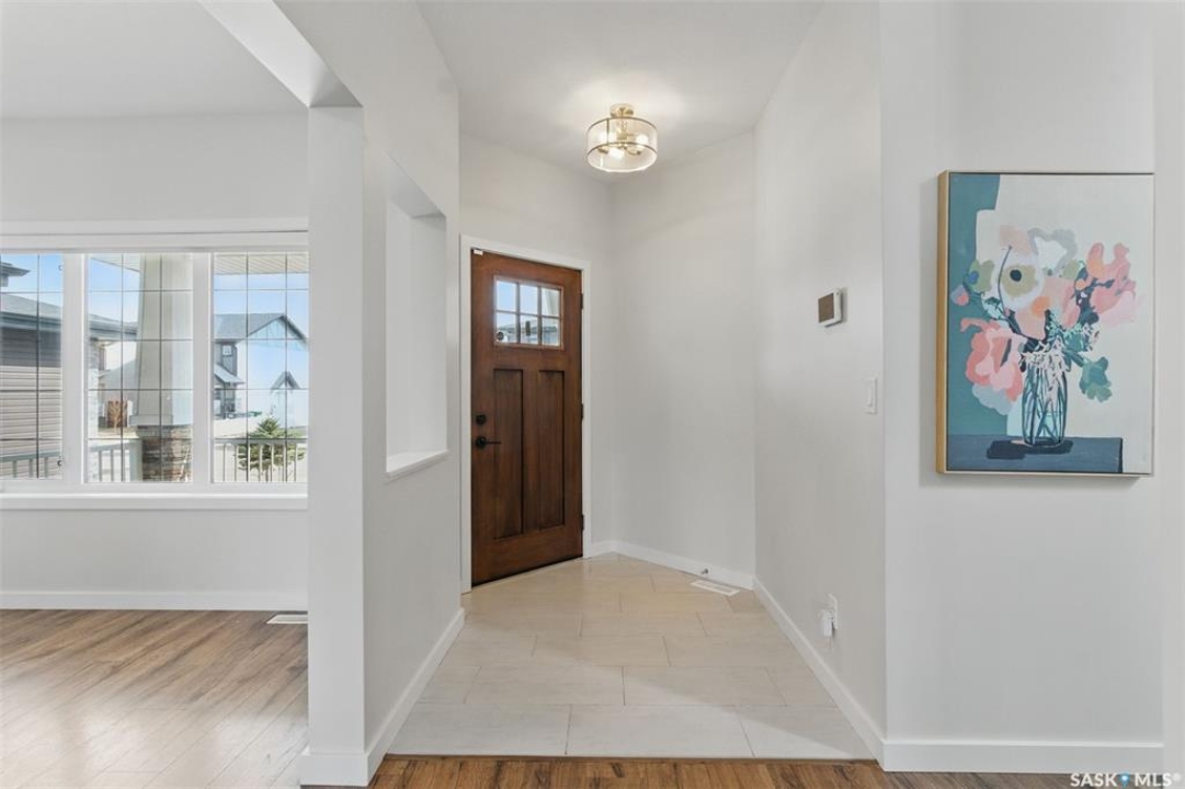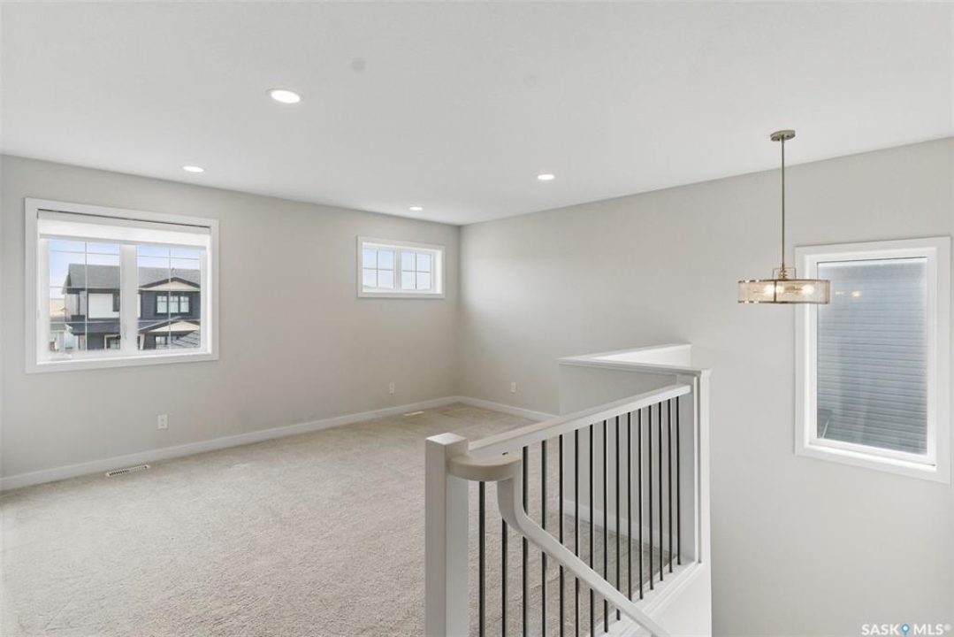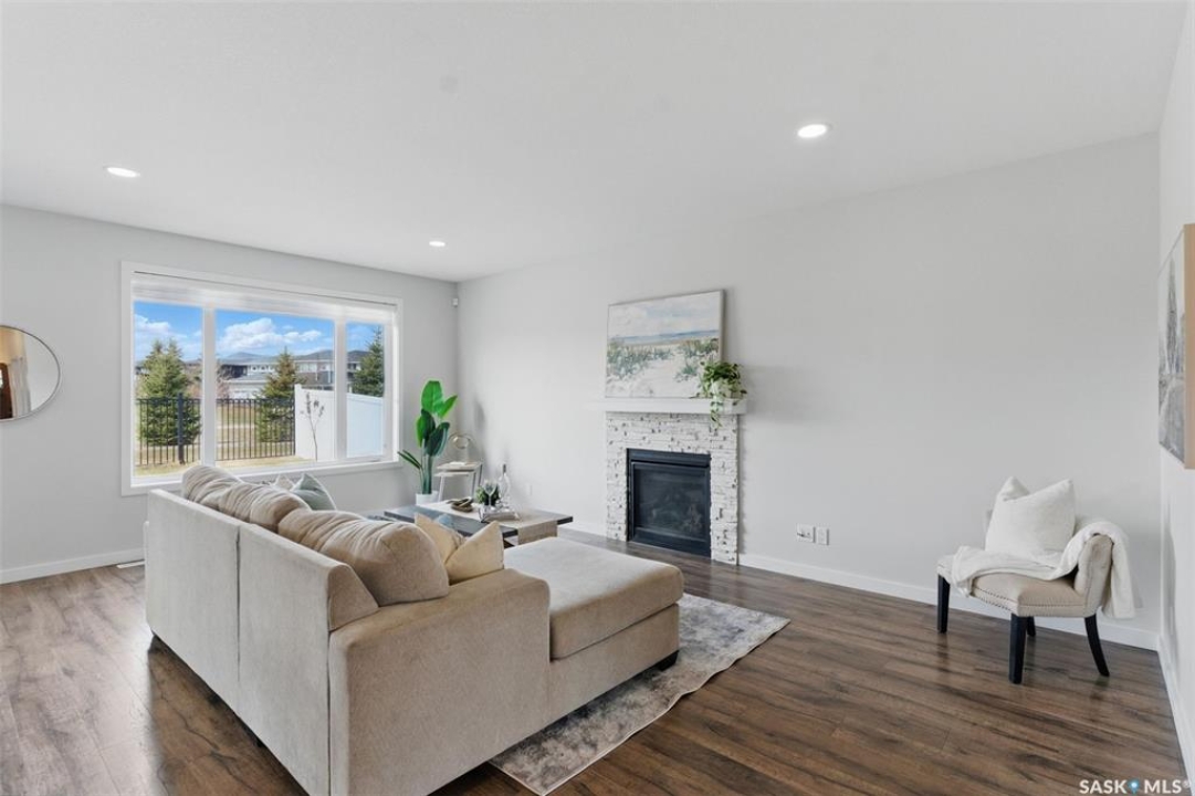 Welcome to 306 Secord Way—an exceptional former Montana Homes show home nestled on a quiet crescent in the highly sought-after Brighton community. This meticulously maintained 2,102 sq. ft. two-storey residence backs onto a scenic walking trail, offering both privacy and picturesque park views. Ideally located within walking distance to parks, shopping, and amenities, with convenient school bus service to Dr. John G. Egnatoff School. From the moment you enter, the home's thoughtful design and attention to detail set it apart. The spacious and airy main floor features high ceilings, a natural gas fireplace, neutral tones, and an open-concept layout. The kitchen is a showstopper with soft grey cabinetry, a deep denim-colored island, quartz countertops, tile backsplash, chimney-style hood fan, and a full stainless steel appliance package. A flexible front den provides a perfect space for a home office or playroom. Upstairs, a large bonus room with built-in shelving, three generously sized bedrooms, convenient laundry, and a luxurious 5-piece primary ensuite-including a corner soaking tub and separate shower-enhance the home's appeal. Stylish Hunter Douglas window treatments complement the interior, while the southwest-facing backyard is fully developed with a large deck, pergola, storage shed, low-maintenance composite fencing, underground sprinklers, and a gate opening directly to the trail and green space beyond. The insulated, drywalled oversized double attached garage offers direct entry, and the open basement awaits your personal touch. Additional upgrades include central A/C, HRV system, triple-pane windows, upgraded faucets and showerheads, and new fridge (2025). This home is a perfect blend of style, comfort, and location-and truly shows like new.
