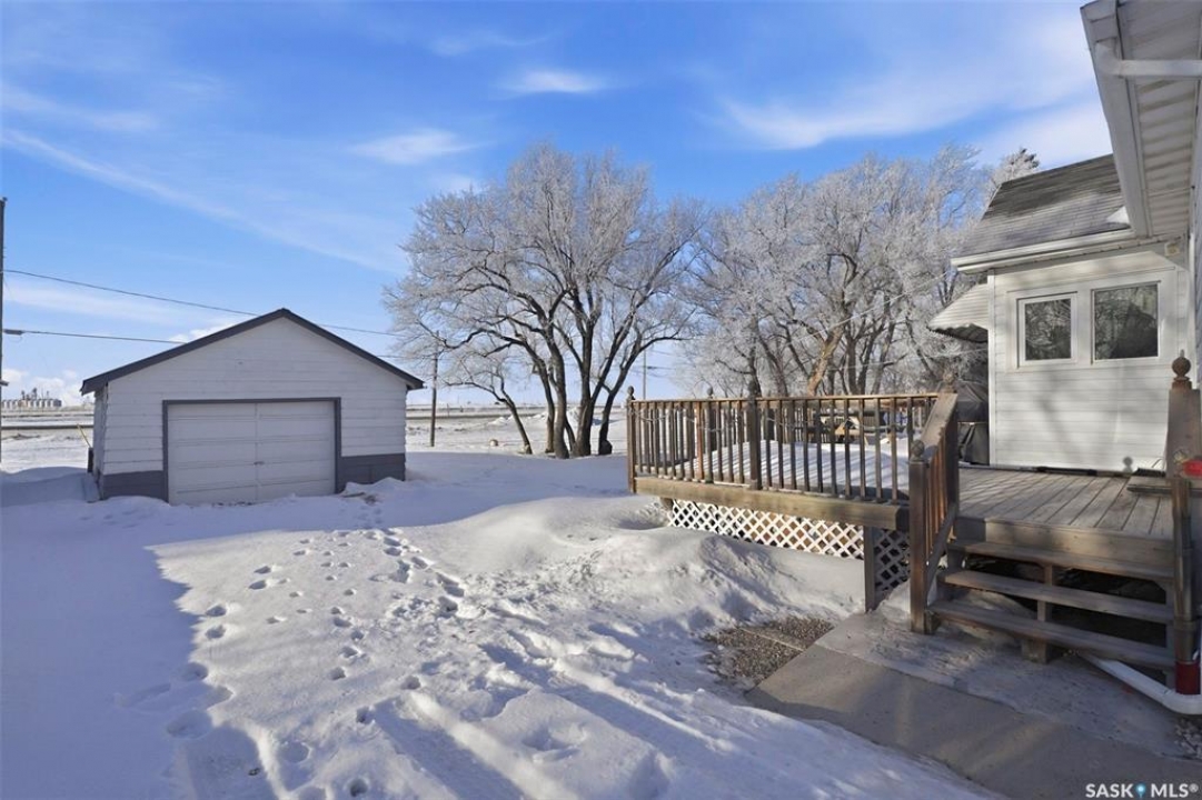 Pride of ownership is evident in this bright, open 3 bedroom bungalow. Floorplan has open flow between kitchen/dining room and living room, with large rooms and tons of natural light. Situated on a huge, park like lot in the centrally located town of Nokomis, this home is priced to sell and is move in ready. As you pull in the driveway, you'll notice the wraparound deck overlooking the expansive back yard. Step in the back door which accesses the huge eat in kitchen with built in bench seating in the dining area, and room for a portable dishwasher. There are tons of cupboards and counter space for the avid cook, and kitchen is open to the bright, spacious living room. Living room spans the west side of the house, with a huge bay window and updated luxury vinyl plank flooring. A small storage room (other) offers storage and closet space. 3 large bedrooms (one currently set up as office) and a 4 piece bath complete the main floor layout. Updates are many, and include windows, furnace, central air, concrete floor and piping in basement, and a 200 amp electrical panel. A central vac with attachments is included. The single detached garage is currently used as storage but has plenty of room to park inside. Nokomis is a progressive community with a k-8 school, daycare, health center, grocery, hardware and drugstore, automotive service station, co-op agro, rec center, craft brewery and more! Located about 1 1/2 hrs from Regina and Saskatoon, 30 minutes from Last Mountain Lake and under 40 minutes to Nutrien Lanigan and BHP Jansen potash mines homes are affordable and the community is welcoming. Call today for your private viewing!