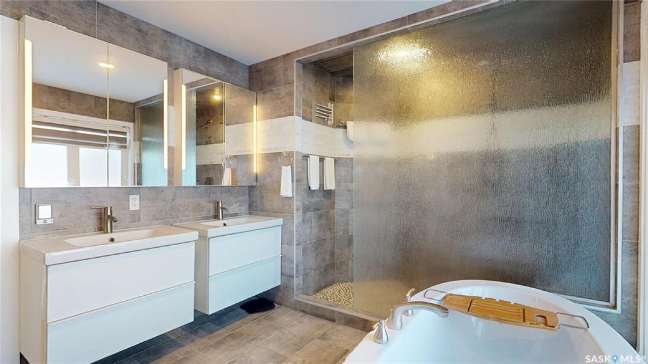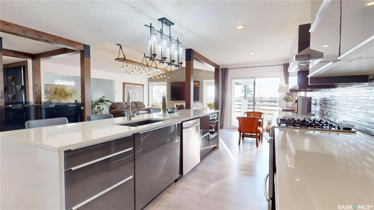 Welcome to this stunning executive home located in the prestigious Westhill neighborhood of Regina. Perfectly positioned to back onto the Goulet Golf Course, this property offers elegance, comfort, and breathtaking views in every direction. Step inside to a bright, open floor plan designed for modern living and effortless entertaining. The kitchen, dining, and living spaces flow seamlessly together, highlighted by wood beams, glass railings, and large windows that capture the beauty of the golf course beyond. The kitchen is as functional as it is stylish, with plenty of workspace and direct access to the expansive back deck — perfect for morning coffee or evening sunsets. The master retreat is truly exceptional — featuring a spacious sitting area, private access to the deck, and a lavish 5-piece ensuite complete with a soaker tub. The expansive walk-in closet provides ample storage and organization for a truly luxurious experience. The main floor is complete with a second bedroom. The fully developed walkout basement offers the ultimate in recreation and relaxation. Enjoy a large games area, stylish wet bar, cozy rec room, and one bedroom and a den — ideal for guests or family. The basement is complete with a sunroom, that can be used for every season. A well-appointed bathroom completes this versatile space, with direct access to the backyard. The outdoor spaces have been thoughtfully designed to make the most of the serene golf course setting. The yard offers privacy, space, and impeccable landscaping, creating a tranquil oasis for entertaining or unwinding in style. This is a must see home to be truly appreciated.