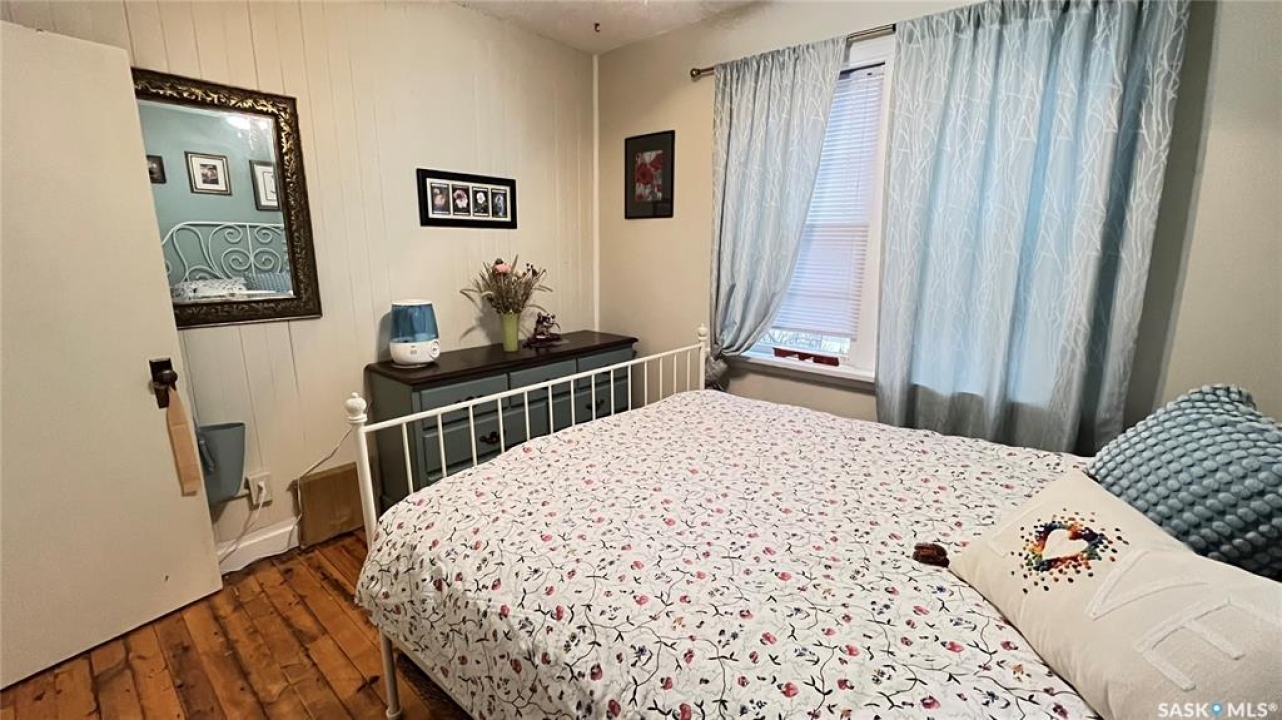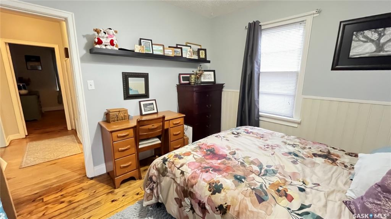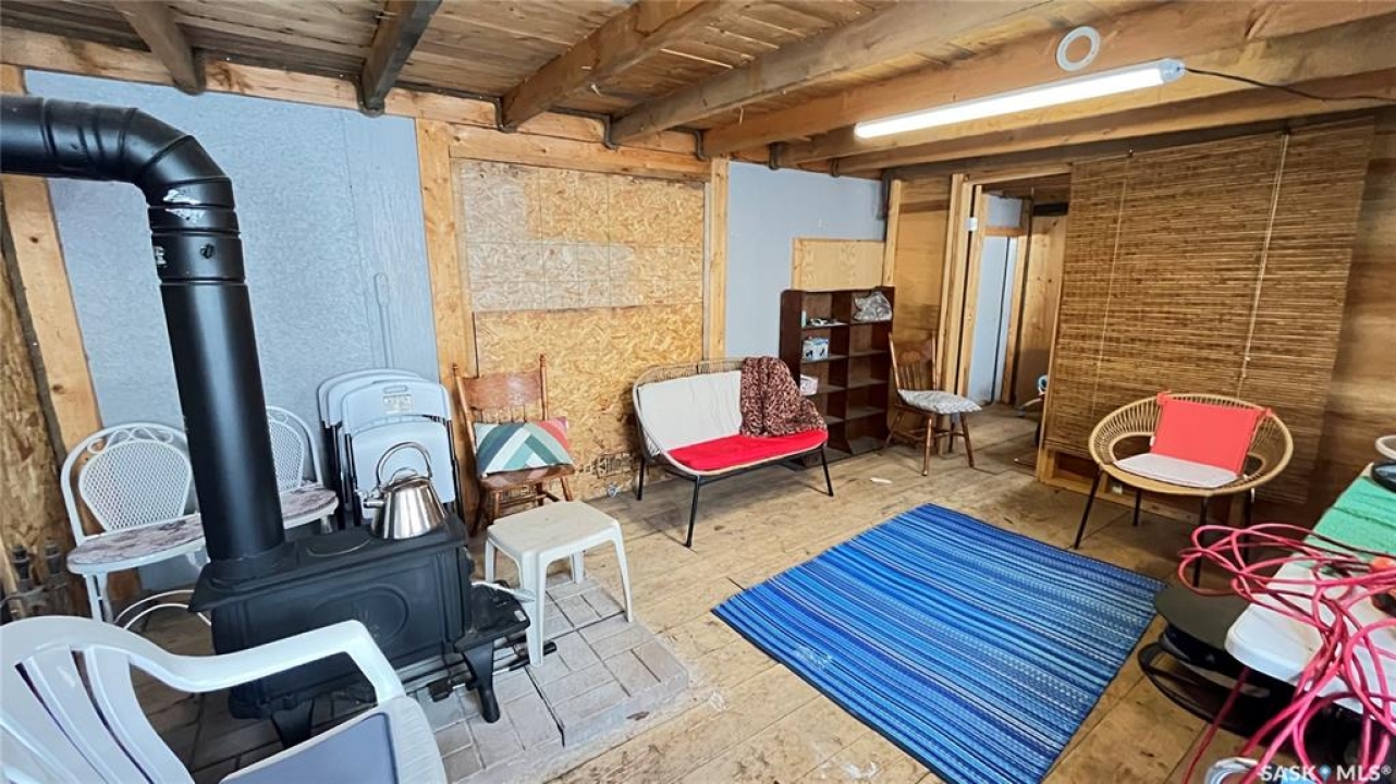 Discover the vintage charm of this beautifully upgraded 1940's home, now fully modernized to meet today's standards. Previously an AirBnB wiring and plumbing are upgraded to today's code. The metal roof and new hot water tank (2024) and furnace (2019) offer peace of mind. Featuring two spacious bedrooms on the main floor and a third in the finished basement, this property offers versatile living options for families or guests. Enjoy two comfortable living room spaces, with the flexibility to add a second bathroom downstairs for added convenience. The garage has been thoughtfully divided, providing a single car space and a cozy gathering area complete with a wood burning stove—perfect for relaxing with friends or family. Situated on a generous corner lot just steps from local schools, this affordable, move-in ready home combines classic character with contemporary comfort. Don't miss your chance to own a unique property in a welcoming neighbourhood.