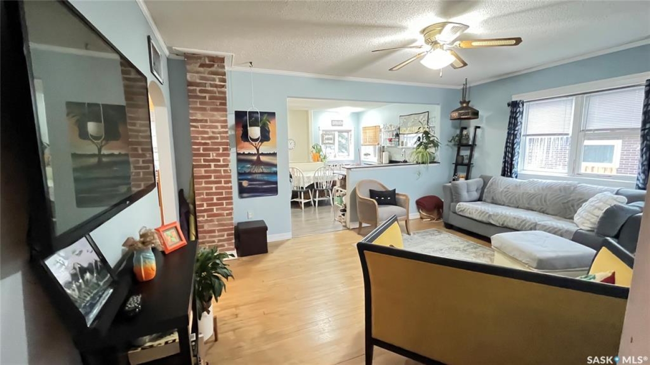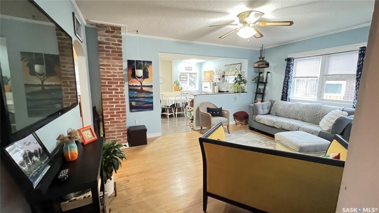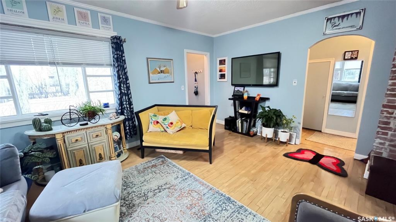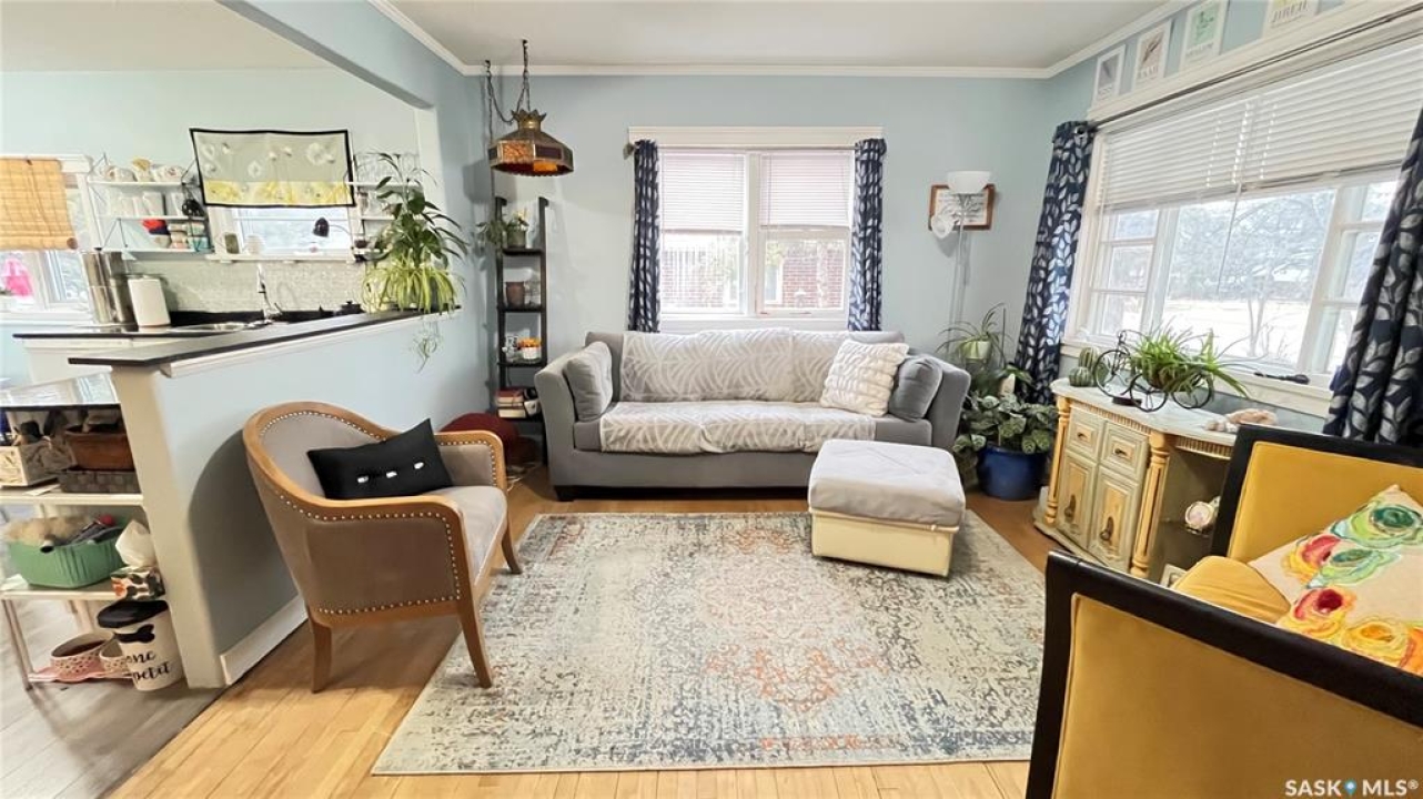 Discover the vintage charm of this beautifully upgraded 1940's home, now fully modernized to meet today's standards. Previously an AirBnB wiring and plumbing are upgraded to today's code. The metal roof and new hot water tank (2024) and furnace (2019) offer peace of mind. Featuring two spacious bedrooms on the main floor and a third in the finished basement, this property offers versatile living options for families or guests. Enjoy two comfortable living room spaces, with the flexibility to add a second bathroom downstairs for added convenience. The garage has been thoughtfully divided, providing a single car space and a cozy gathering area complete with a wood burning stove—perfect for relaxing with friends or family. Situated on a generous corner lot just steps from local schools, this affordable, move-in ready home combines classic character with contemporary comfort. Don't miss your chance to own a unique property in a welcoming neighbourhood.