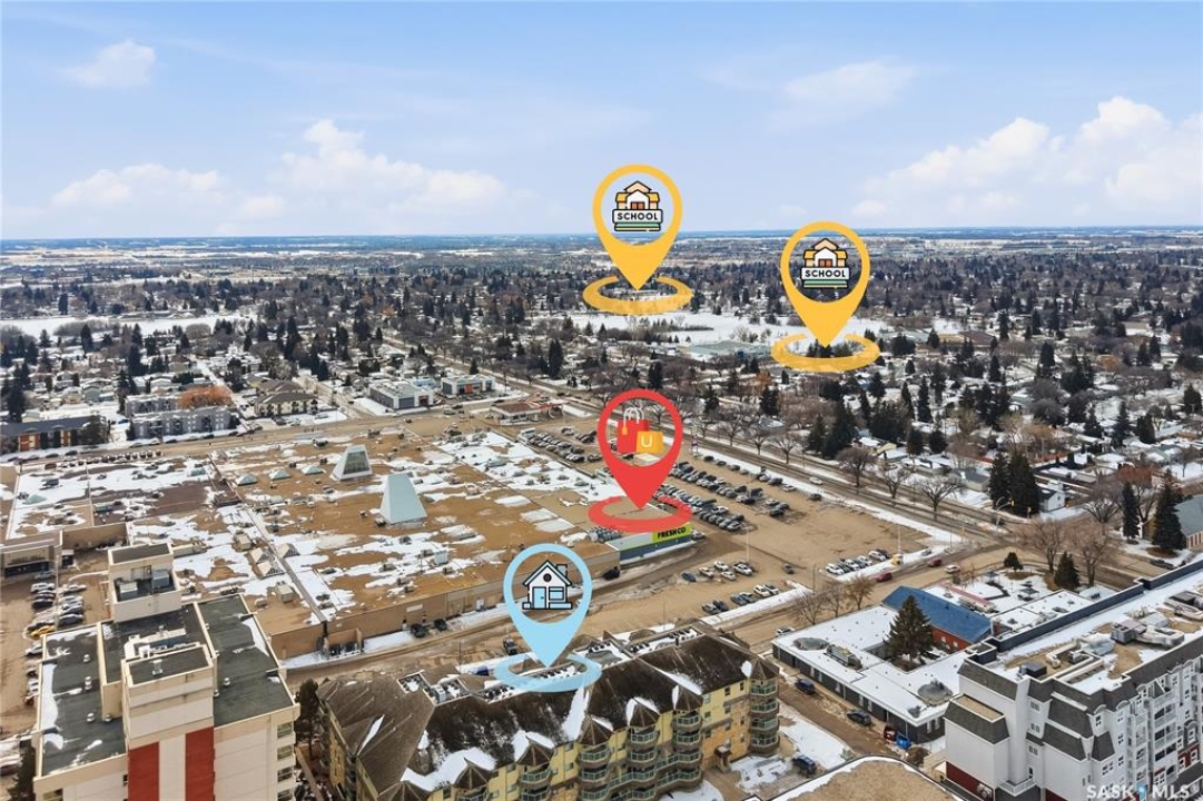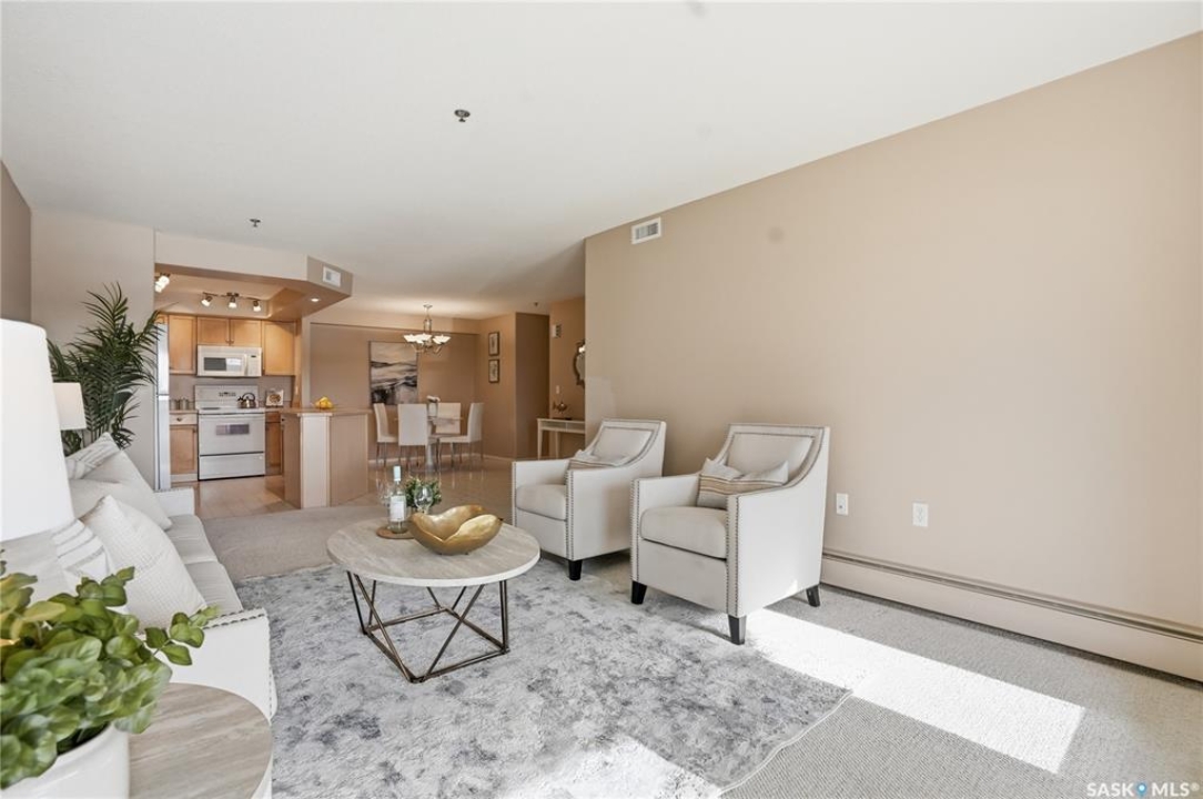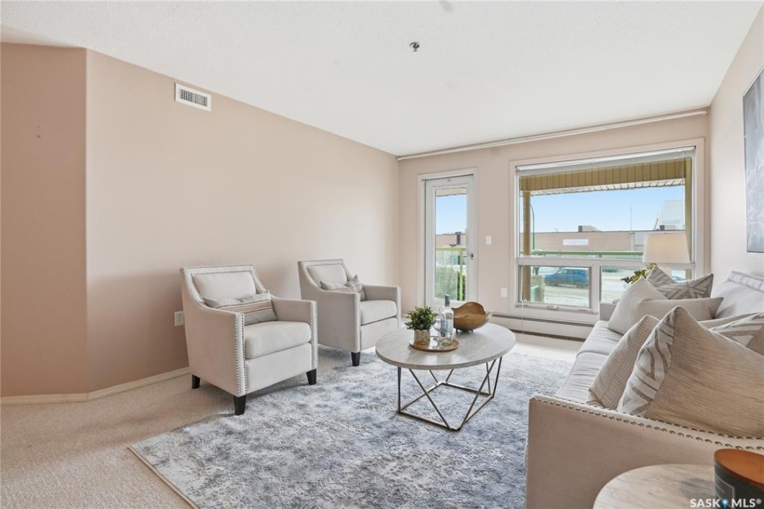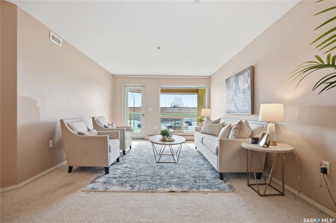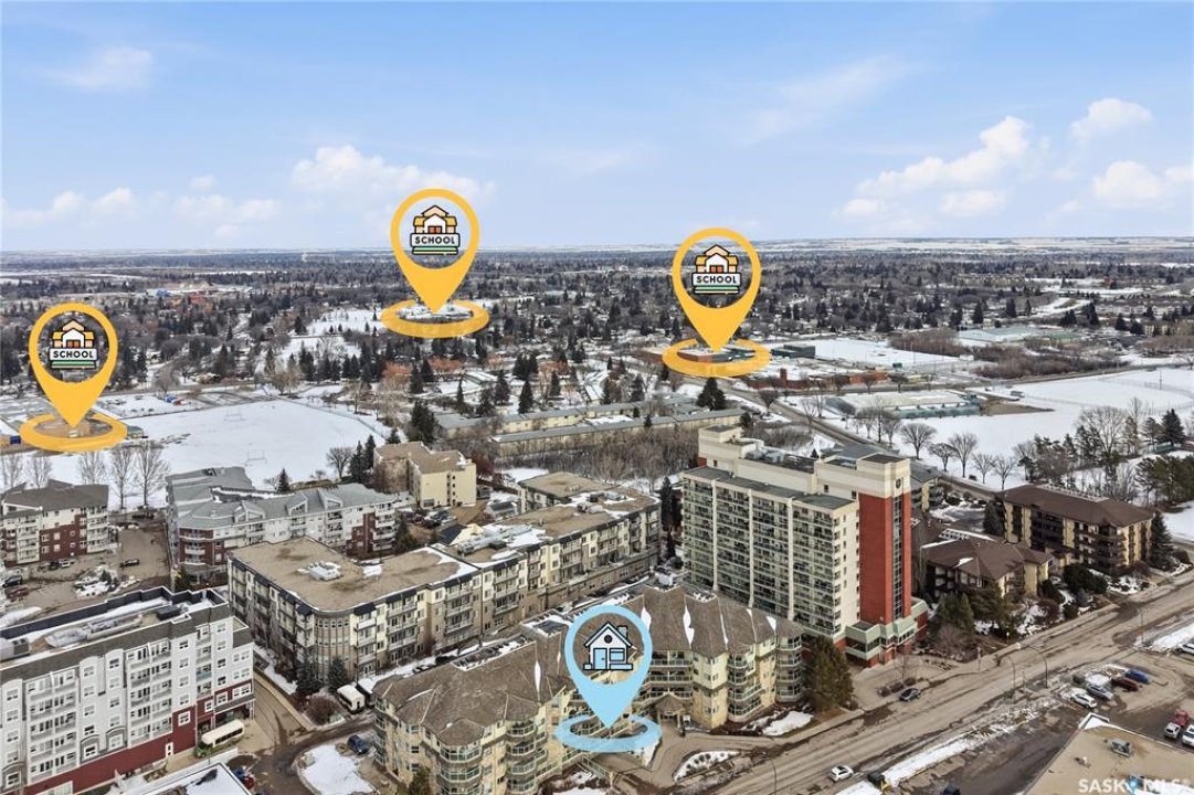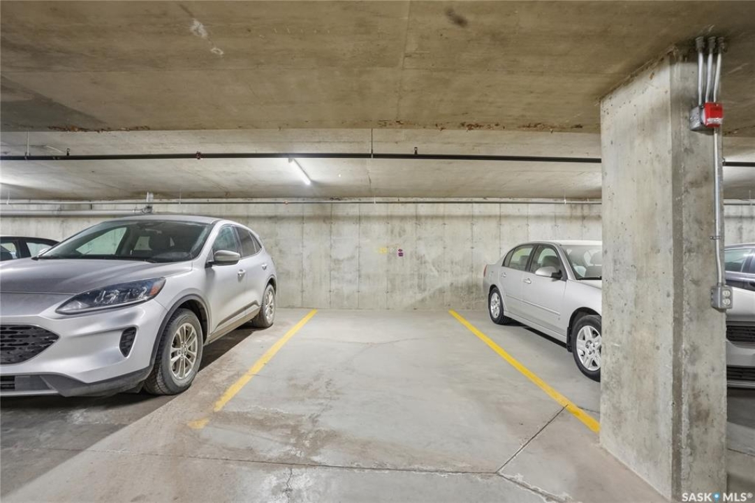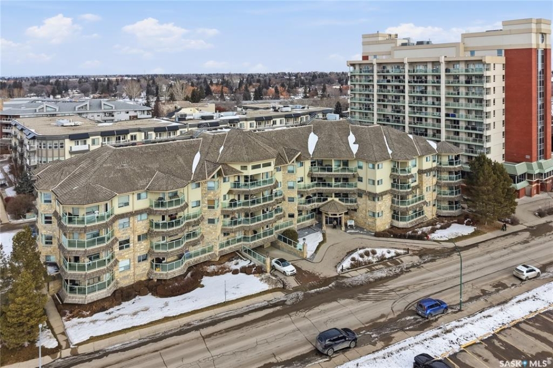 Welcome home to this ideally located, 2-Bed, 2-Bath, south facing condo with one underground parking stall! You'll love the bright, open concept layout of the spacious dining room, kitchen, and living room. The large living room window lets the southern sun exposure into the room, overlooking the oversized balcony. The primary bedroom features 2 closets and a 3-pc ensuite. The second bedroom feels like it has its own 4-pc ensuite as well, only a couple steps away from the second bathroom. Convenience is abundant with this unit with the in-suite laundry room and storage space. You'll appreciate the underground parking with one stall and separate storage locker. The building features an elevator, exercise room, amenities (meeting) room with shuffleboard, pool table, and more. Conveniently located across the street from Market mall with many amenities, near schools, parks, greenspace and city transit stops. Available for quick possession. As per seller's instructions, please present all offers prior to 3:00 p.m. on Sunday February 22nd, 2026. If you are looking for all the conveniences this condo offers, book your personal viewing today!