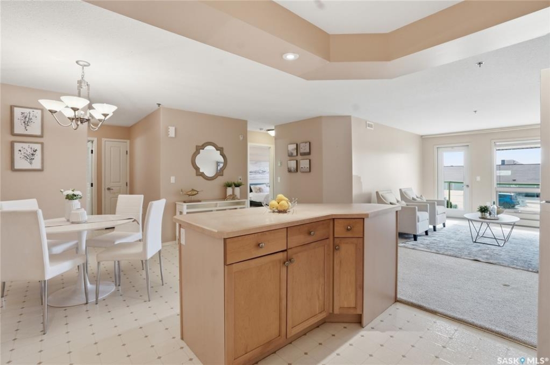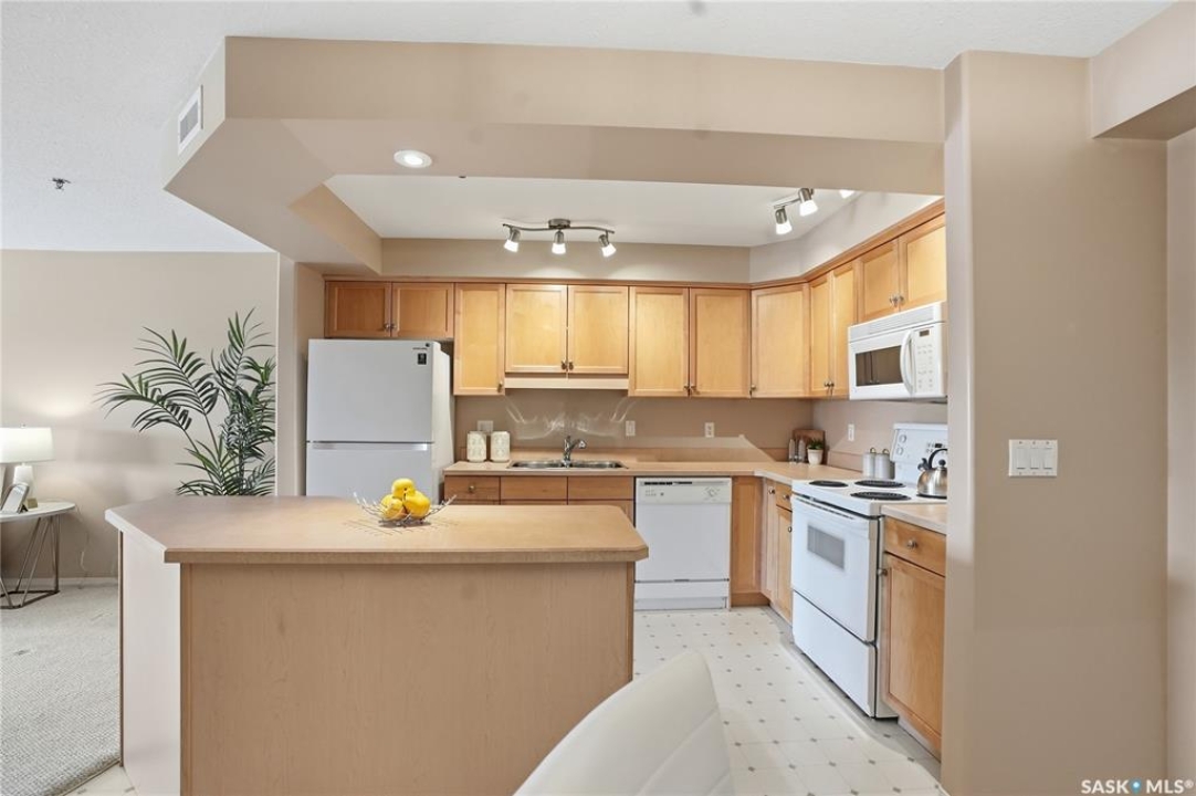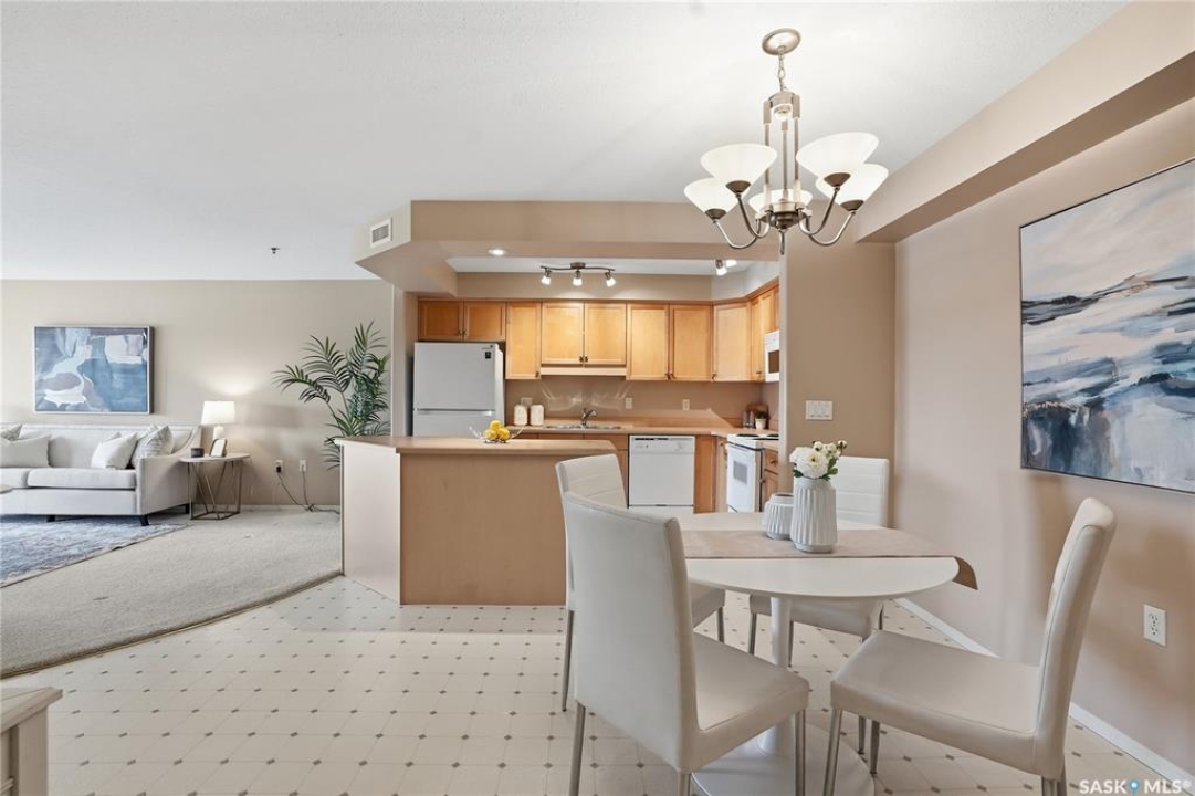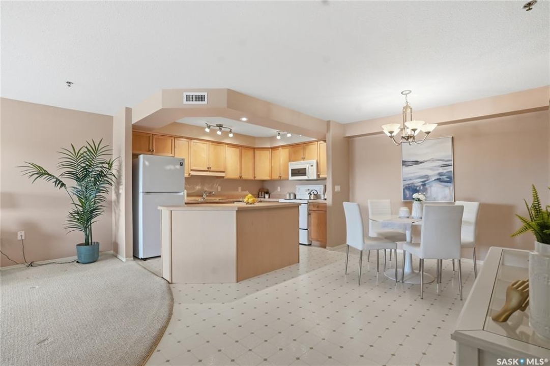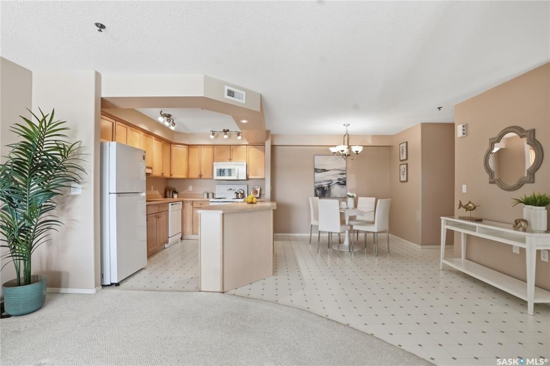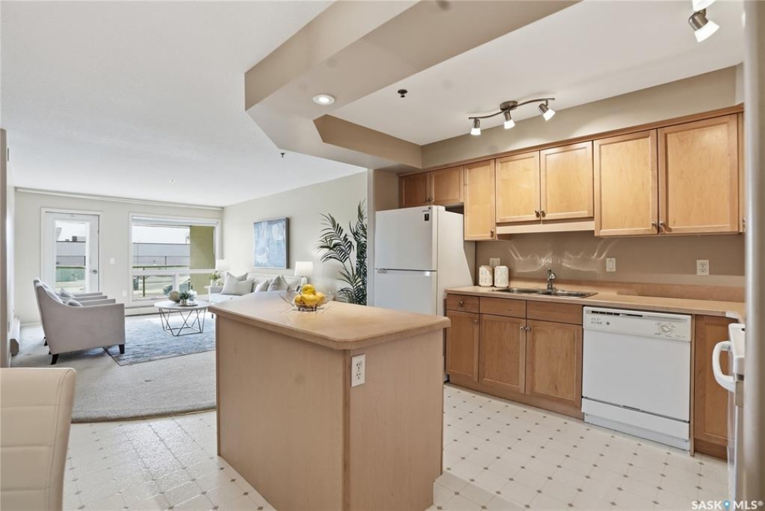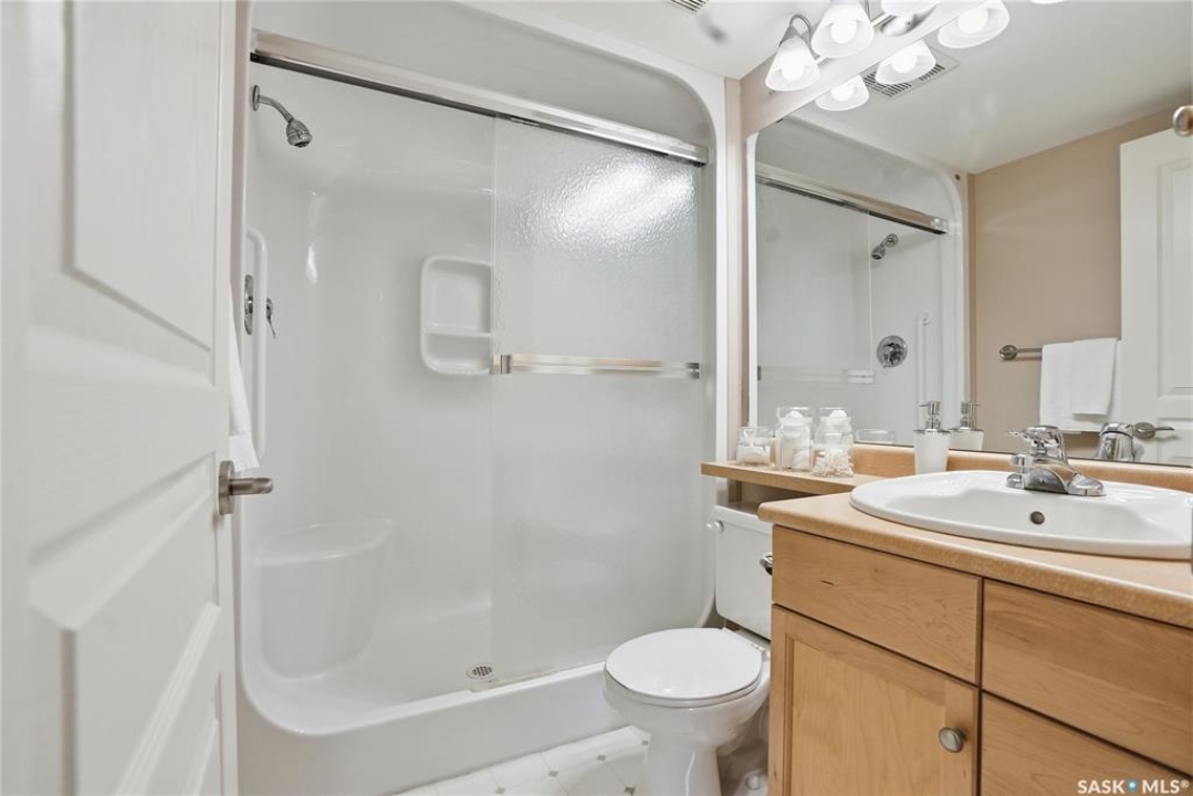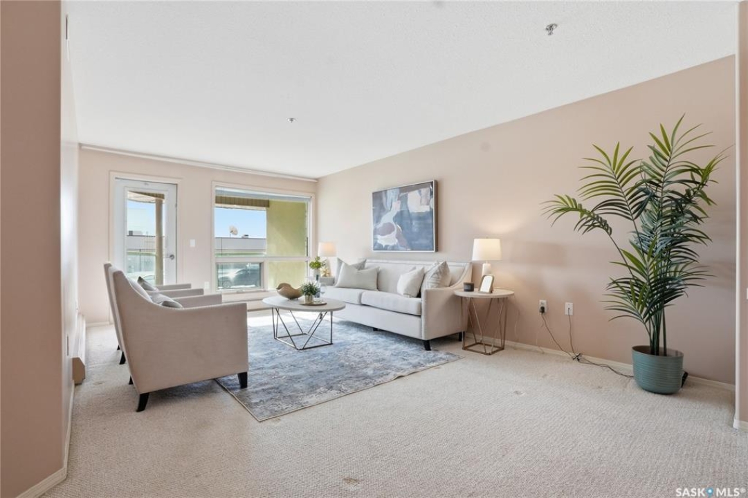 Welcome home to this ideally located, 2-Bed, 2-Bath, south facing condo with one underground parking stall! You'll love the bright, open concept layout of the spacious dining room, kitchen, and living room. The large living room window lets the southern sun exposure into the room, overlooking the oversized balcony. The primary bedroom features 2 closets and a 3-pc ensuite. The second bedroom feels like it has its own 4-pc ensuite as well, only a couple steps away from the second bathroom. Convenience is abundant with this unit with the in-suite laundry room and storage space. You'll appreciate the underground parking with one stall and separate storage locker. The building features an elevator, exercise room, amenities (meeting) room with shuffleboard, pool table, and more. Conveniently located across the street from Market mall with many amenities, near schools, parks, greenspace and city transit stops. Available for quick possession. As per seller's instructions, please present all offers prior to 3:00 p.m. on Sunday February 22nd, 2026. If you are looking for all the conveniences this condo offers, book your personal viewing today!