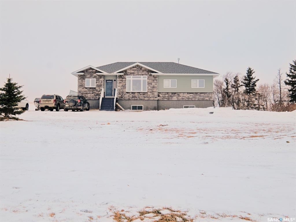 Experience the perfect balance of comfort, efficiency, and scenic country living with this impressive 1,479 sq. ft. bungalow set on 10 picturesque acres. Designed with both functionality and quality in mind, this home offers space, privacy, and modern energy-efficient features in a beautiful rural setting. The main level features a bright and spacious layout with three bedrooms, 2.5 bathrooms, and the convenience of main floor laundry. The primary suite offers comfort and privacy, while the open living areas create a welcoming atmosphere for both everyday living and entertaining. The fully developed ICF block basement adds exceptional durability and energy efficiency, while providing two additional bedrooms, a full bathroom, and generous living space. In-floor heating ensures warmth and comfort throughout the lower level, creating a cozy retreat during cooler months. This property is equipped with geothermal heating and cooling, offering an environmentally friendly and cost-efficient solution for year-round comfort. The home is serviced by well water and positioned in a scenic area that showcases the natural beauty of the surrounding landscape. Step outside onto the deck and take in the peaceful views of your private 10-acre parcel — ideal for those seeking space to roam, hobby farming potential, or simply the serenity of country living. Combining solid construction, modern efficiency, and a stunning rural backdrop, this property presents a rare opportunity to enjoy acreage living without compromising comfort or quality.