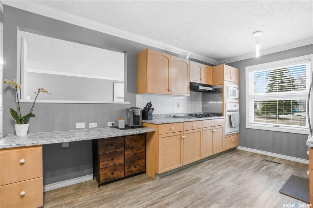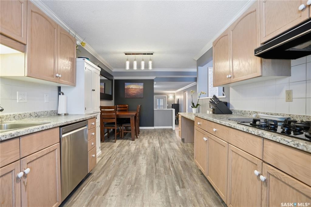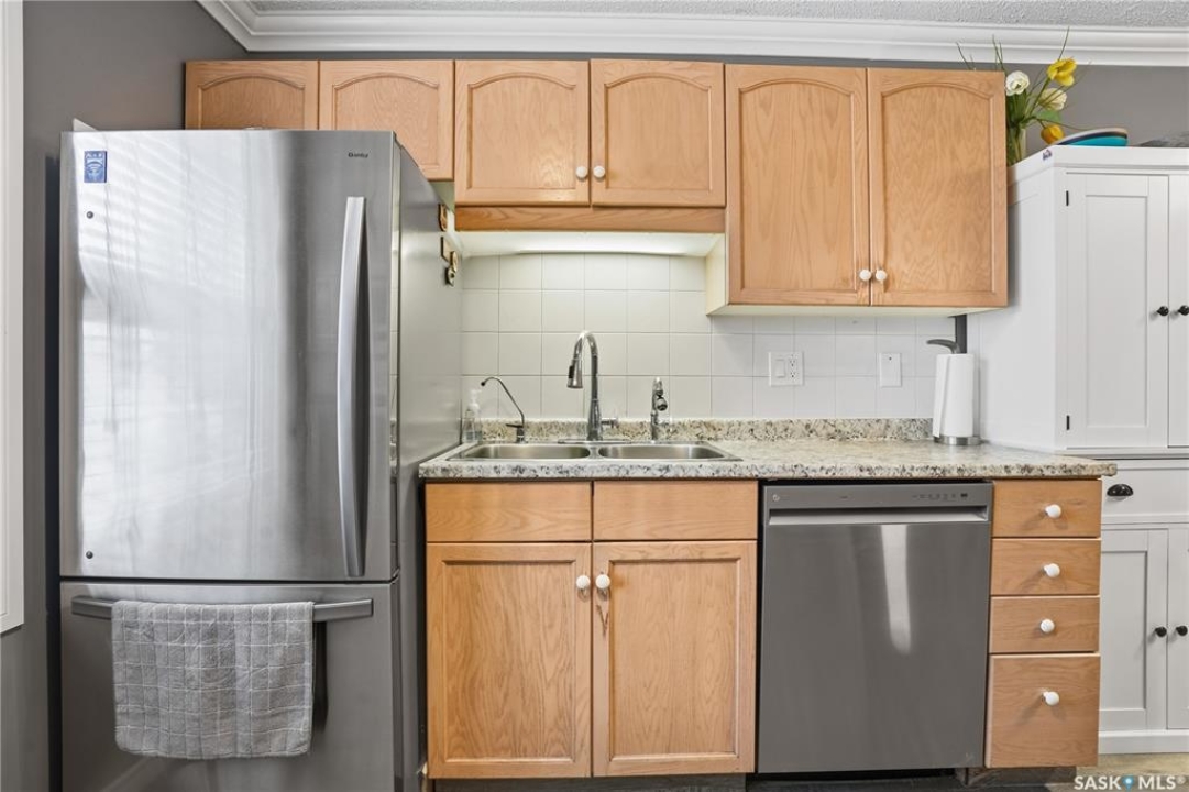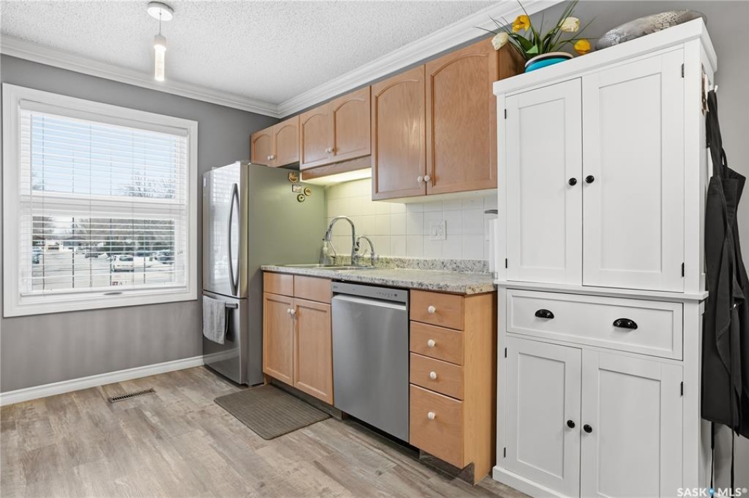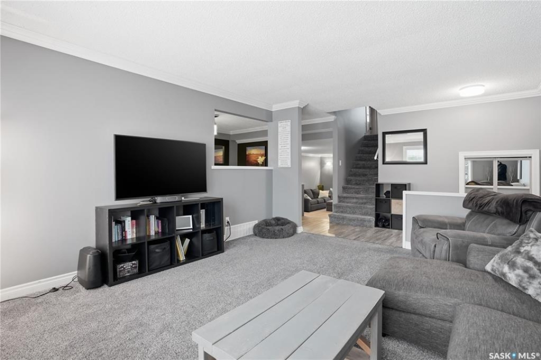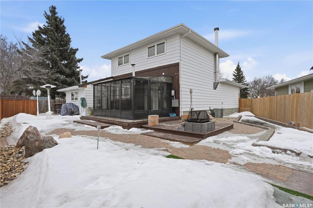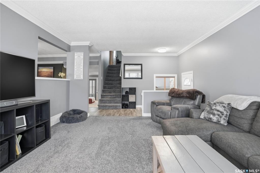 Welcome to 83 Carter Crescent in the desirable community of Normanview West. This beautifully updated 1,440 sq. ft. two-storey split offers exceptional space, comfort, and curb appeal. The front yard features attractive xeriscaping and a large driveway with RV parking. A low-maintenance brick exterior enhances the home's timeless appeal. Inside, the freshly painted main floor showcases a unique and functional layout with a bright south-facing living room, complete with newer carpet and abundant natural light. The kitchen includes a full appliance package with built-in wall oven and gas cooktop, complemented by durable vinyl plank flooring that flows into the dedicated dining area. Just steps away, the cozy family room features a charming wood-burning fireplace and access to the fully enclosed sunroom. With solid panels and its own wood fireplace, this inviting space allows you to enjoy the outdoors year-round—without the insects. A generously sized bedroom and updated 3-piece bath complete the main level. Upstairs, you'll find a spacious primary bedroom with double closets, a third bedroom, and a well-appointed 5-piece bath with dual sinks and a relaxing bubble tub. The fully developed basement offers incredible flexibility, including a den (with non-egress window and closet), office/playroom, large rec room, 3-piece bath with walk-in shower, laundry/utility room, and ample storage. The backyard is thoughtfully landscaped with xeriscaping, a cedar fence, a deck with stone perimeter, artificial turf sitting area, and a large flower bed—perfect for entertaining or relaxing. The tandem garage (28' x 14') is fully insulated and heated. Additional highlights include crown moulding throughout, updated lighting, vinyl windows, upgraded furnace and A/C, and close proximity to a nearby elementary school. This move-in ready home offers space, style, and comfort in a fantastic location. Come see it for yourself, you wont be disappointed.