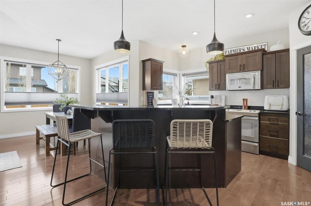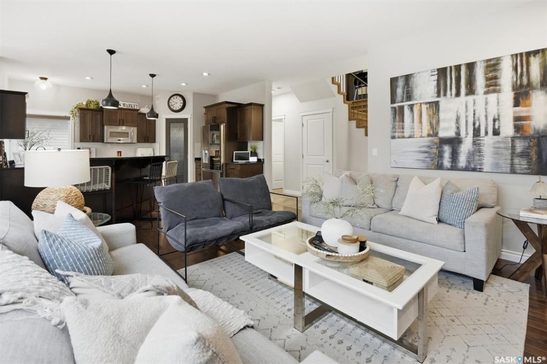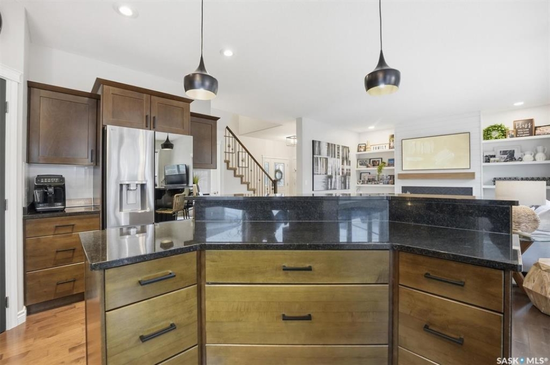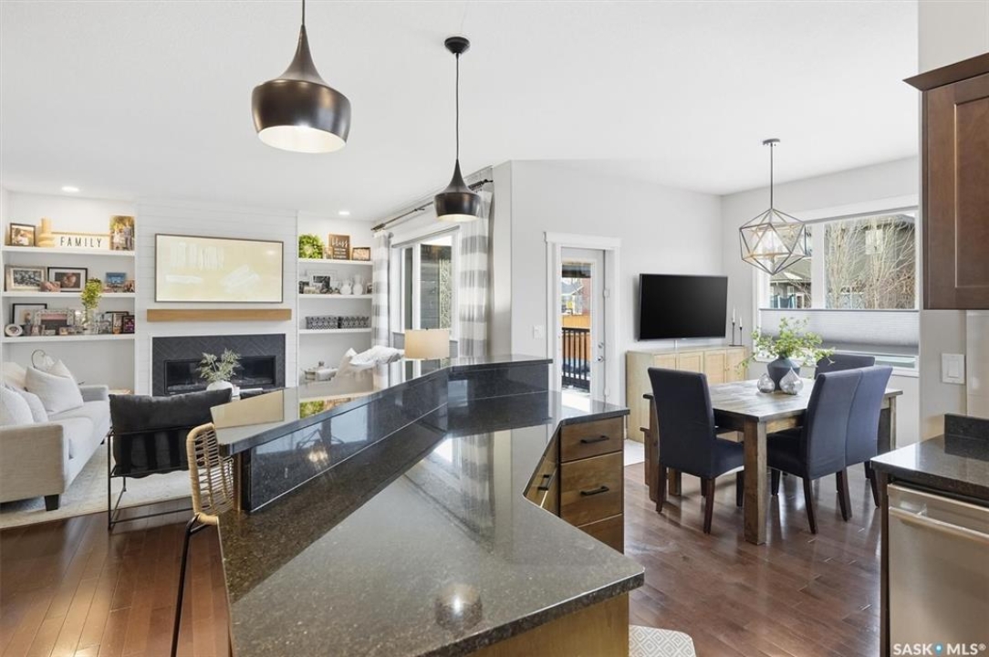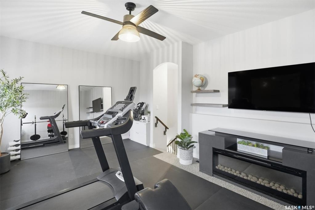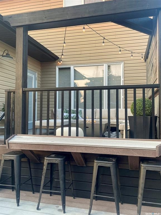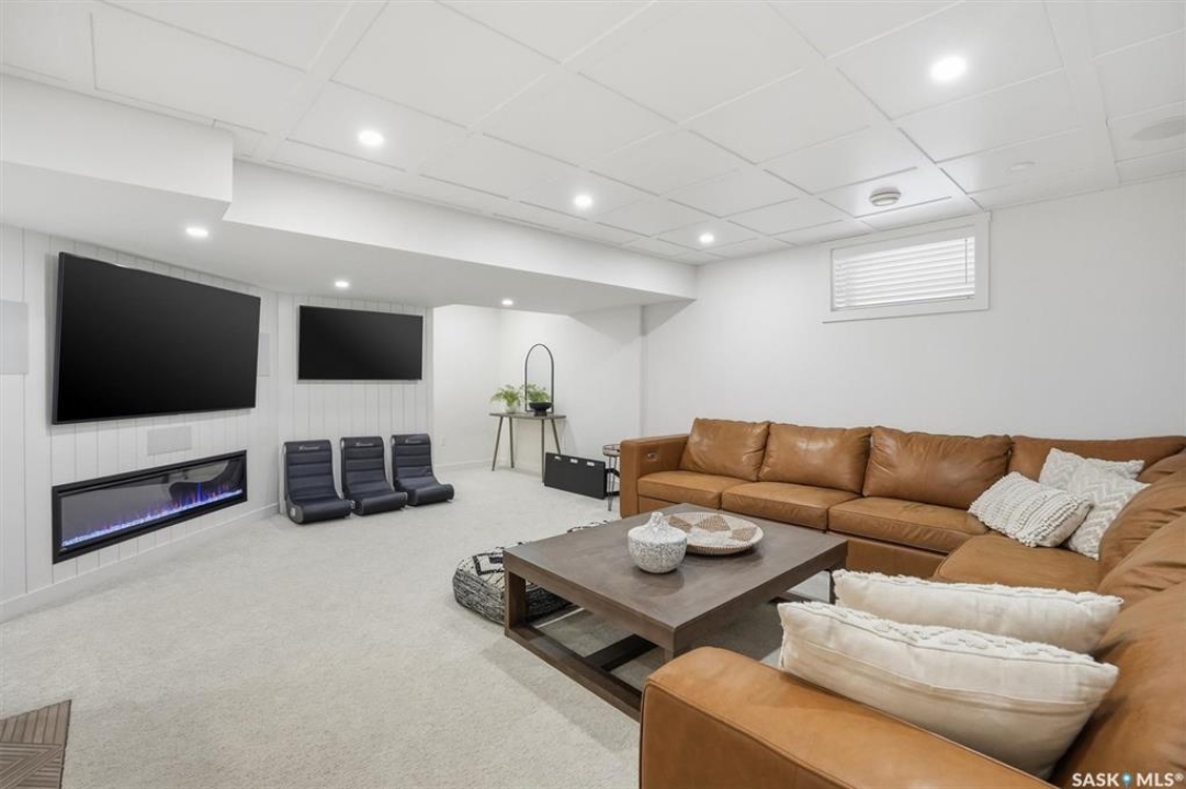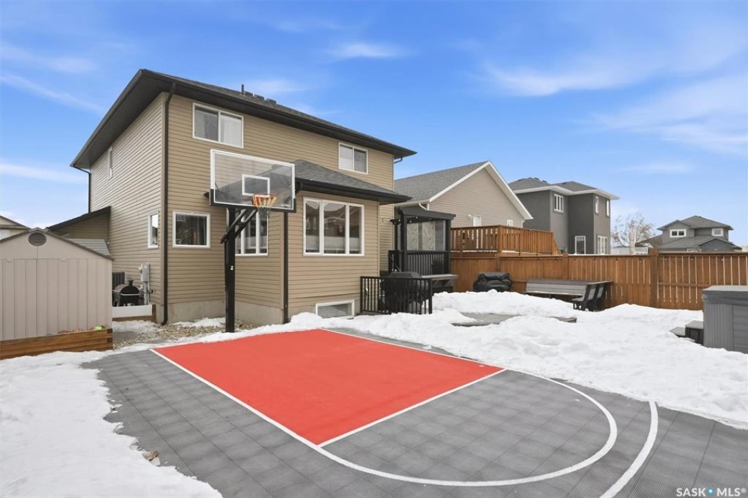 Welcome to this fully developed 4 bedroom, 4 bathroom home in the desirable community of Willowgrove. Designed for modern family living and effortless entertaining, this property offers a functional layout, extensive upgrades, and standout recreational features both inside and out. The main floor flows seamlessly into a bright, open living space anchored by a gas fireplace, while upstairs you'll find a spacious bonus room—perfect as a family lounge, home office or gym, or kids' retreat. With four bedrooms and four bathrooms, the home provides ample space for growing families or guests, and the fully finished basement expands the living area with a custom entertainment zone that truly sets this property apart. With a custom bar for hosting with multi-keg taps, a dishwasher, glass rinser, and built-in surround sound that carries throughout the space and even into the basement bathroom, this space is a true get away. The homes mechanical systems and infrastructure have been carefully upgraded for comfort and efficiency. The home features a 98% efficient fully modulating Ruud furnace and a/c, HEPA filter, humidifier, tankless w/h, water softener, and a RO water system. The heated garage includes a Reznor heater, and the home is equipped with multiple gas lines for the fireplace, BBQ, upper-deck fire table, and a future gas outlet rough in. An ext. RV plug adds further flexibility for owners with an RV or trailer parking spot (front drive allows for 3 car parking). Outside, the zero-maintenance yard ensures easy upkeep while maximizing enjoyment. The backyard is highlighted by a hottub and a sport court, offering a rare at-home recreation space ideal for basketball in summer and perfect ice in the winter. Whether entertaining friends, relaxing with family, or enjoying the convenience of a move-in-ready home with high-end mechanical systems already in place, 1015 Muzyka Road delivers a complete lifestyle package in one of Saskatoon's most popular neighbourhoods.