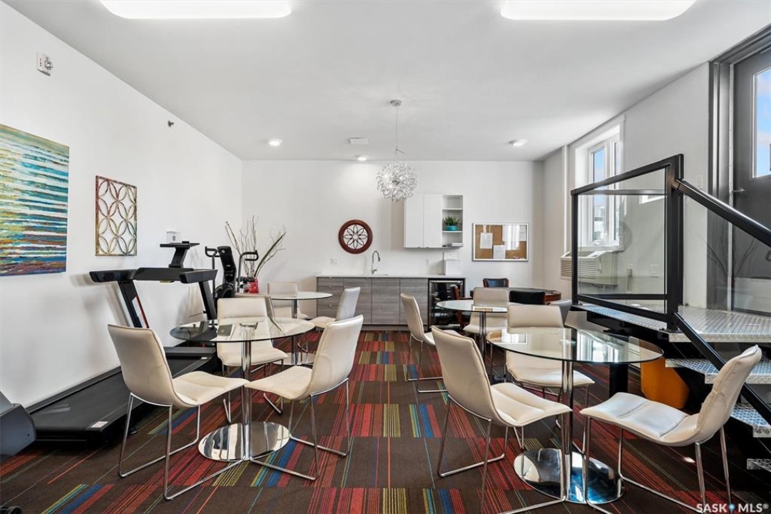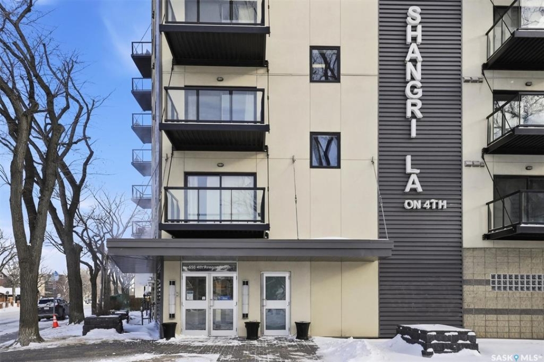 Welcome to The Shangri-La on 4th Ave. This stylish 1 bedroom, 1 bathroom condo is perfectly situated in the heart of Saskatoon. The bright impeccably maintained unit features a functional open concept layout. Enjoy the convenience of a built-in computer workspace, modern kitchen, upgraded stainless steel appliances, quartz countertops and tile back splash - ideal for both everyday living and entertaining. You are close to City Hospital, University of Saskatchewan, Royal University Hospital, downtown shops, restaurants and city transit. What a great location offering the best of urban living with easy access to nature. Set in a soundly constructed concrete building, residents can enjoy premium amenities including a rooftop patio with BBQ area, an amenities room with fitness equipment, and the added convenience of one underground parking stall. Don't miss this incredible opportunity to own in one of Saskatoon's most sought after locations. Book your showing today with your favorite Realtor!
