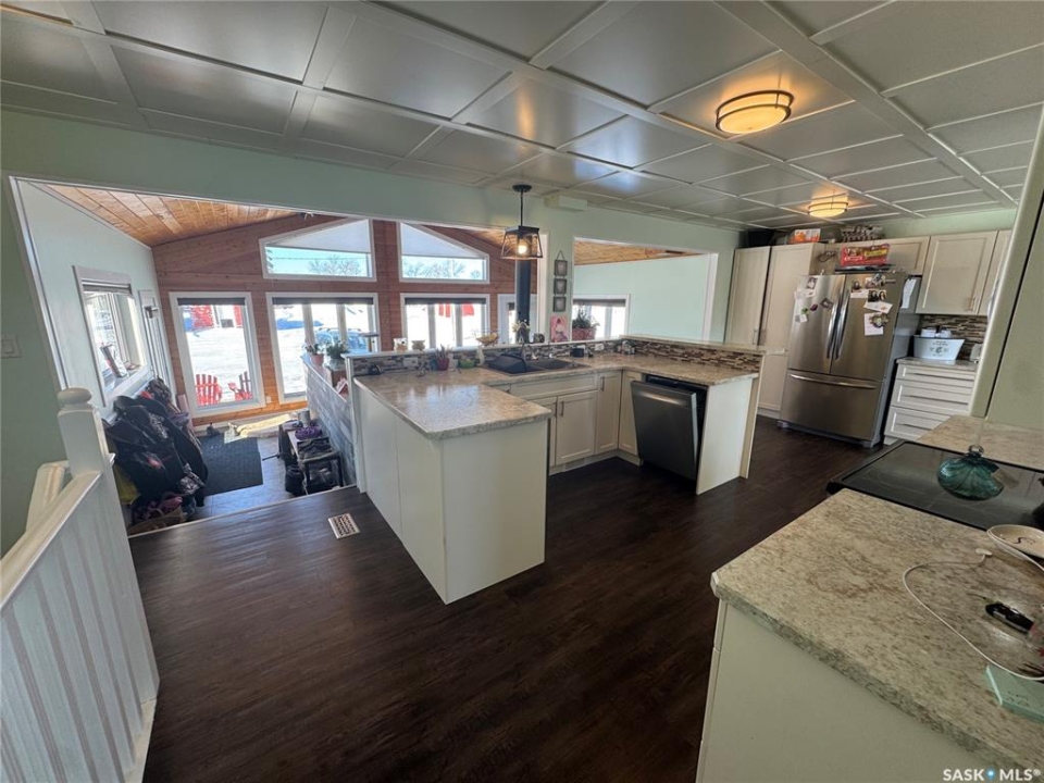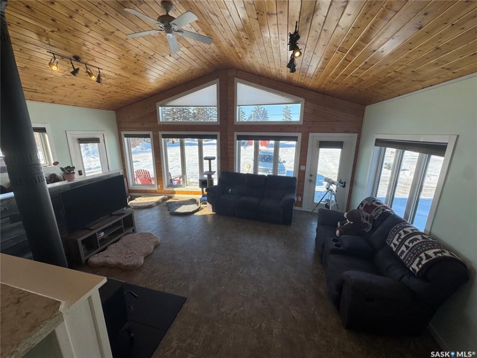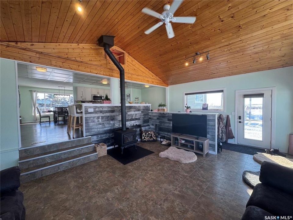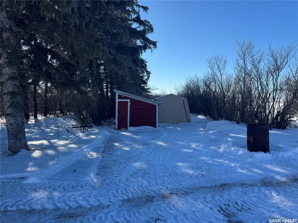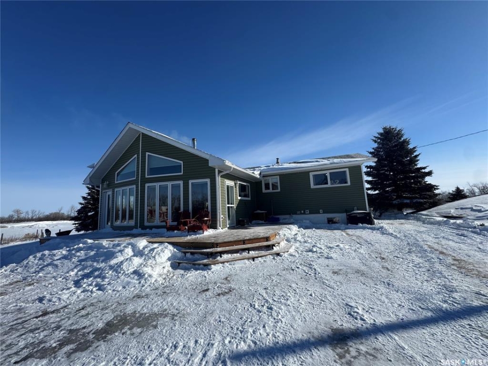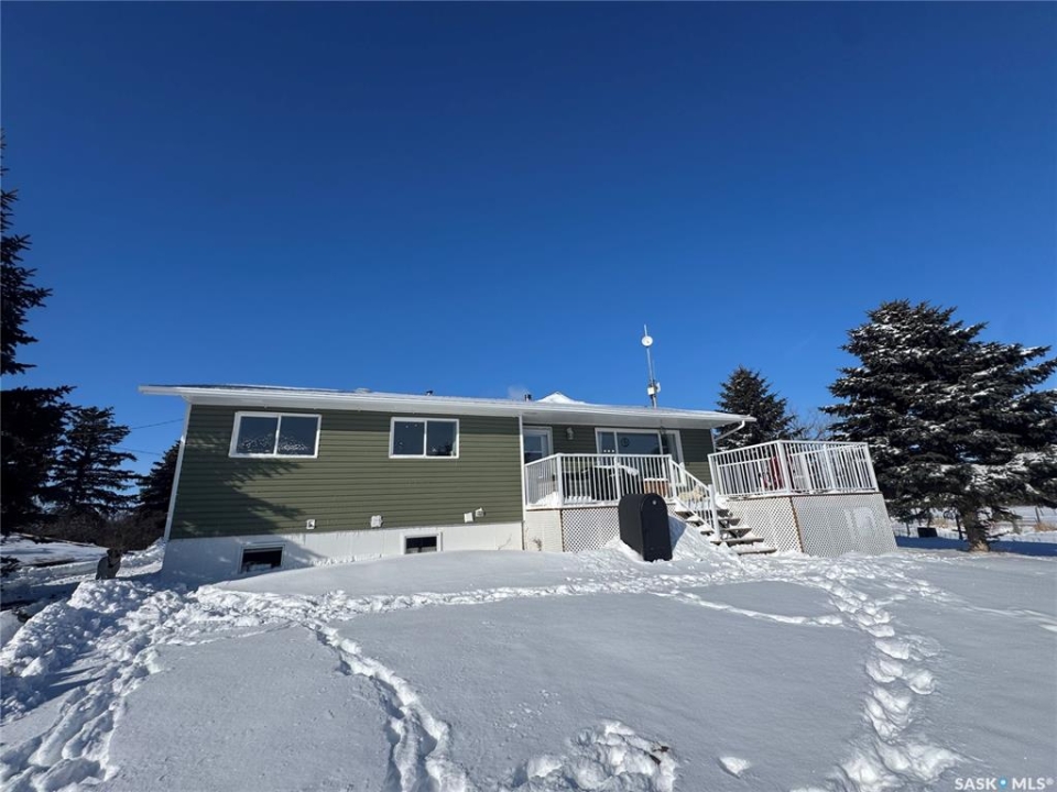Escape the city and enjoy peaceful, self sufficient prairie living at the move-in ready AK Ranch, located less than an hour from Regina and just minutes to Indian Head. This spacious 5 bedroom, 2 bathroom bungalow offers comfort, functionality, and rural charm. The bright great room features a cozy brand new wood burning stove and large picture windows, while the open kitchen and generous dining area are perfect for everyday living and entertaining. The main floor includes a large primary bedroom with his and hers closets, a second bedroom, and a 4-piece bathroom. The fully renovated lower level provides three additional bedrooms, a family room with ample storage, a 3-piece bathroom, and laundry/utility room. Recent upgrades include a new wood burning stove, Green Sand Water Treatment System, high-efficiency gas furnace, dishwasher, and over the range microwave. Ideal for hobby farmers or those seeking space and independence, the property features multiple powered outbuildings, three fenced areas, a dirt arena, corrals surrounding the barn, and plenty of room for animals, gardening, or storage. An insulated double detached garage adds convenience, while mature chokecherry, apple, and willow trees line the private lane, creating a beautiful and private setting. Ample room for many garden areas. A rare opportunity to embrace the freedom of acreage living; space, privacy, and self sufficient lifestyle all in one exceptional property.