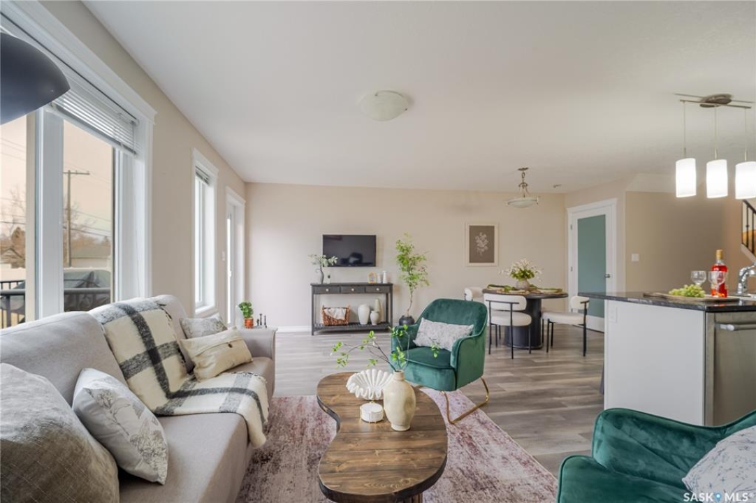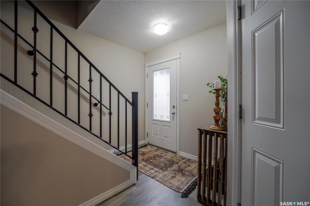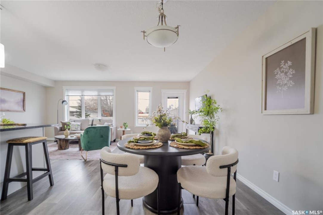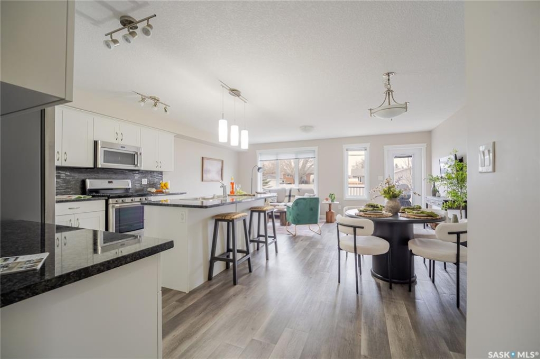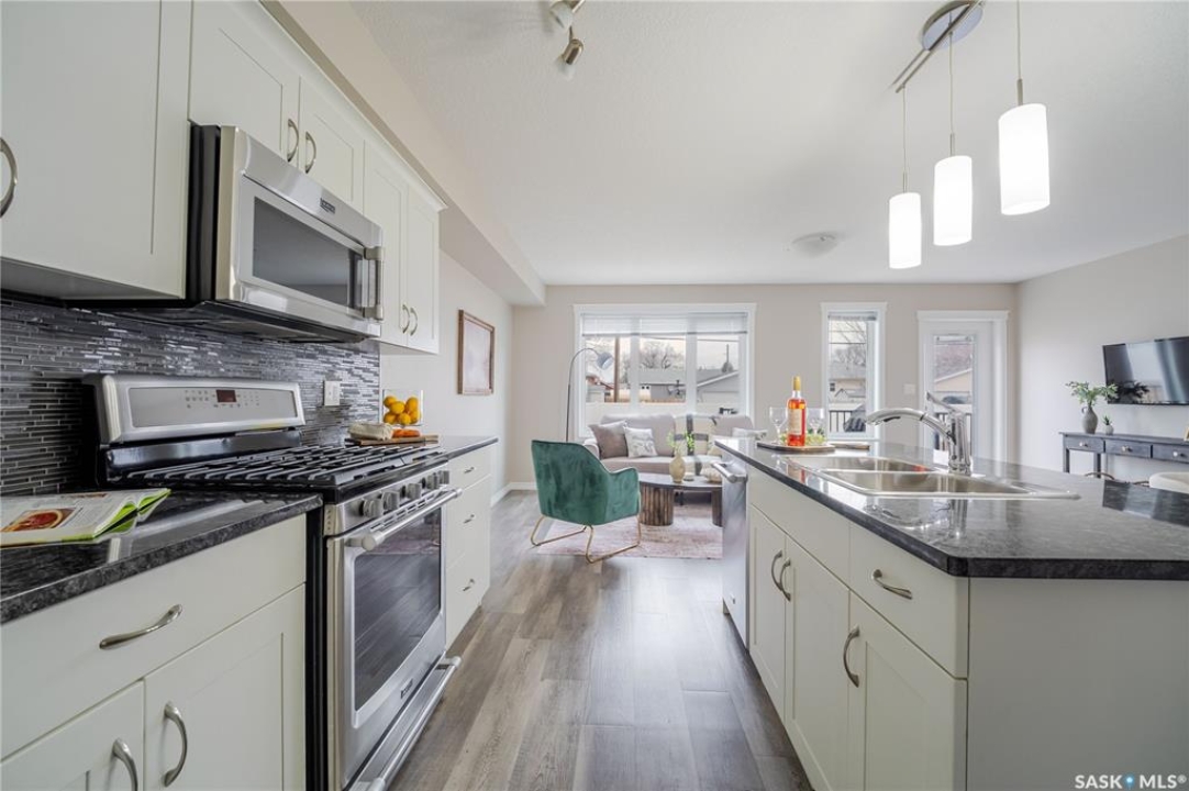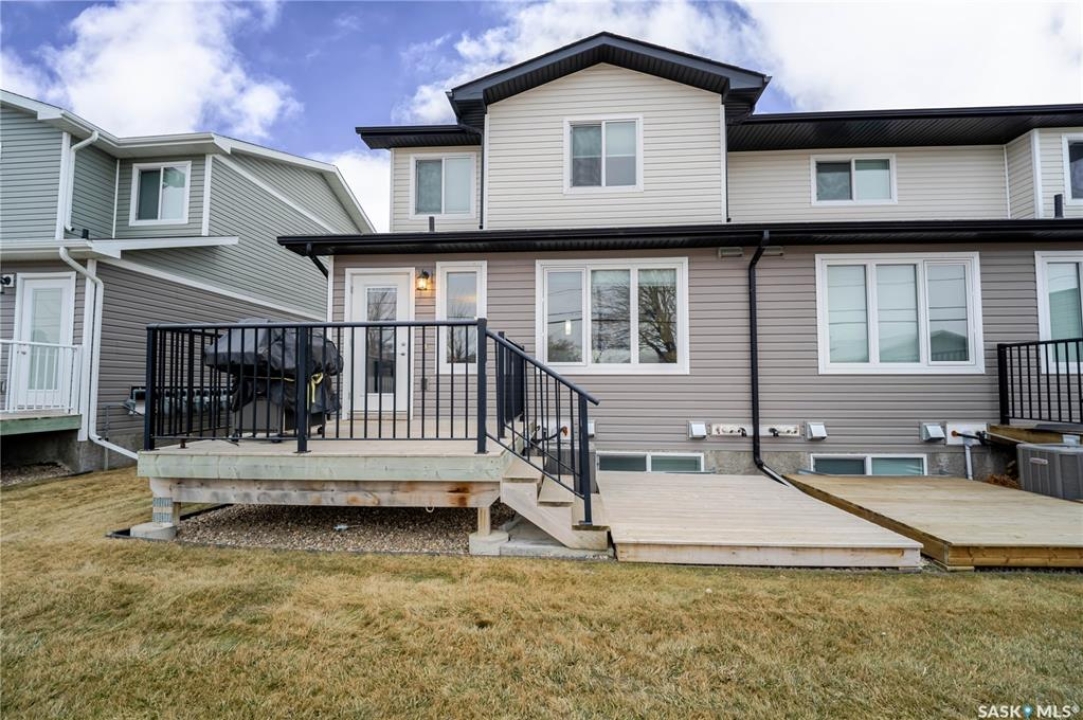 Discover easy condo living in a convenient location near schools, shops, and a quick walk to Wakamow Valley! This end-unit townhouse, built in 2015, offers privacy with only one shared wall, featuring 4 bedrooms, 4 bathrooms, an attached garage, and a finished basement—all in just over 1,300 sq ft. Step inside to an open main floor with a modern kitchen featuring granite counters, a gas stove, a large pantry, and an island with seating. Vinyl plank flooring flows throughout this level, which also has a half bath and garage access with built-in shelves. Upstairs you'll find three good-sized bedrooms, laundry, and a spacious master suite complete with a cozy fireplace, walk-in closet, and a sleek ensuite bathroom. The basement provides a great space for movie nights, equipped with built-in speakers and a projector setup. There's also a bedroom with a Murphy bed and a full bathroom. Outside, enjoy a shared yard and a small deck with a gas BBQ hookup (Weber BBQ included). Plus, lawn care, snow removal, and water are covered with condo fees. If you're ready for low maintenance living in a wonderful neighborhood, book a showing today!