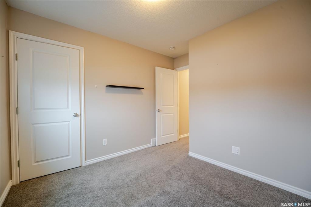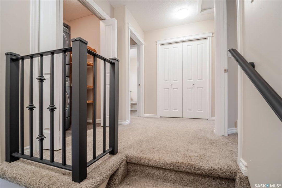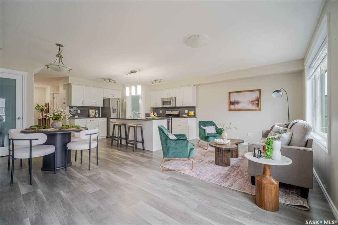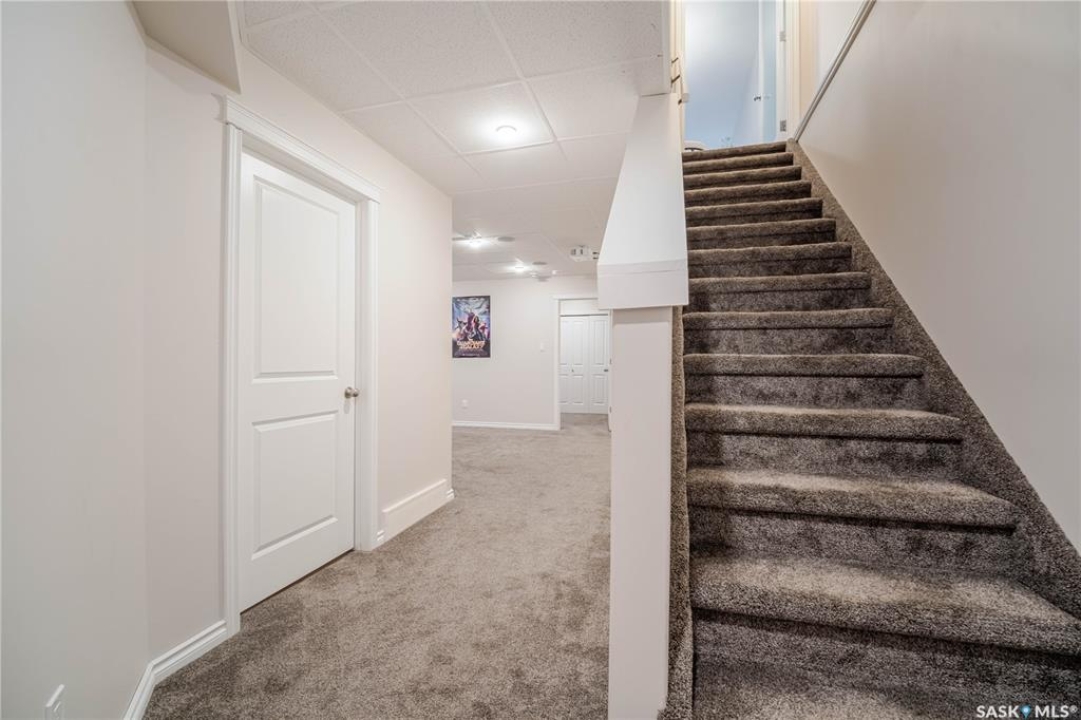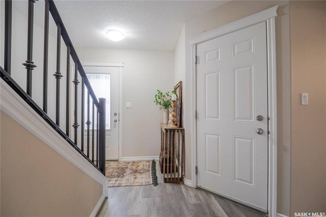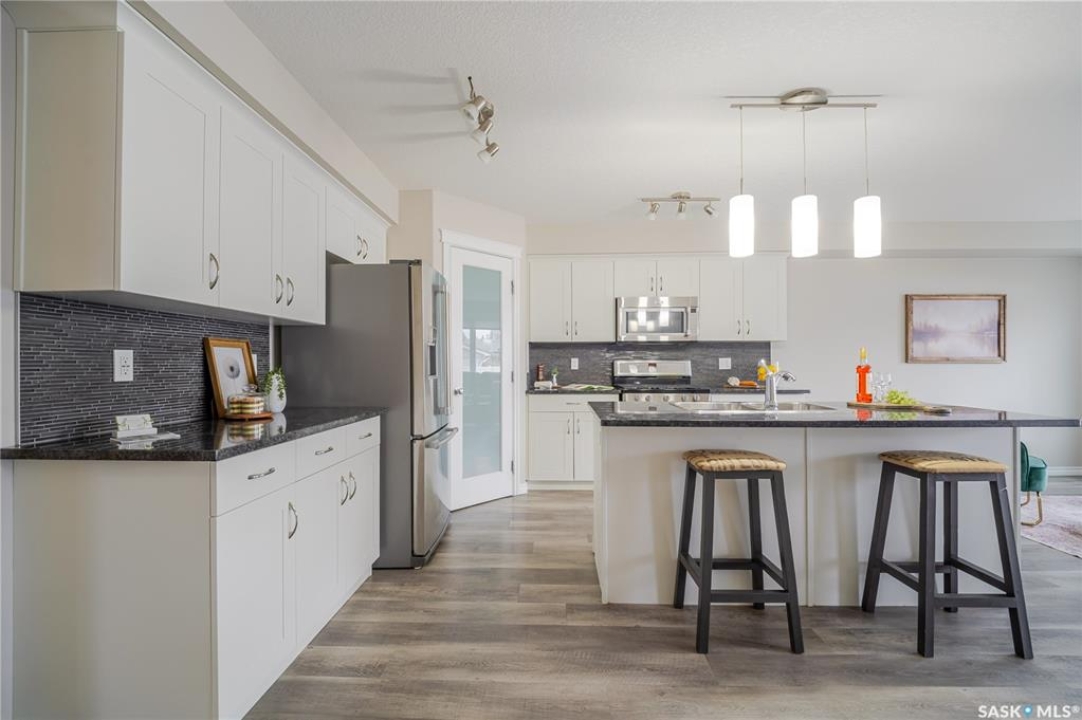 Discover easy condo living in a convenient location near schools, shops, and a quick walk to Wakamow Valley! This end-unit townhouse, built in 2015, offers privacy with only one shared wall, featuring 4 bedrooms, 4 bathrooms, an attached garage, and a finished basement—all in just over 1,300 sq ft. Step inside to an open main floor with a modern kitchen featuring granite counters, a gas stove, a large pantry, and an island with seating. Vinyl plank flooring flows throughout this level, which also has a half bath and garage access with built-in shelves. Upstairs you'll find three good-sized bedrooms, laundry, and a spacious master suite complete with a cozy fireplace, walk-in closet, and a sleek ensuite bathroom. The basement provides a great space for movie nights, equipped with built-in speakers and a projector setup. There's also a bedroom with a Murphy bed and a full bathroom. Outside, enjoy a shared yard and a small deck with a gas BBQ hookup (Weber BBQ included). Plus, lawn care, snow removal, and water are covered with condo fees. If you're ready for low maintenance living in a wonderful neighborhood, book a showing today!