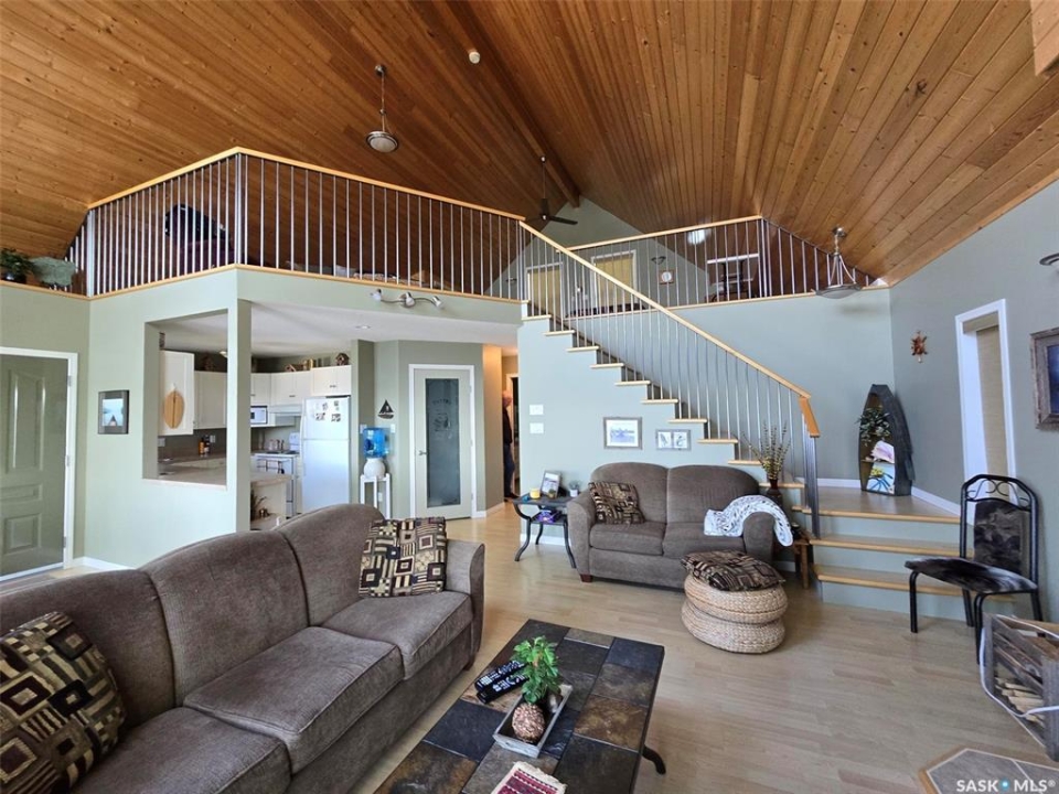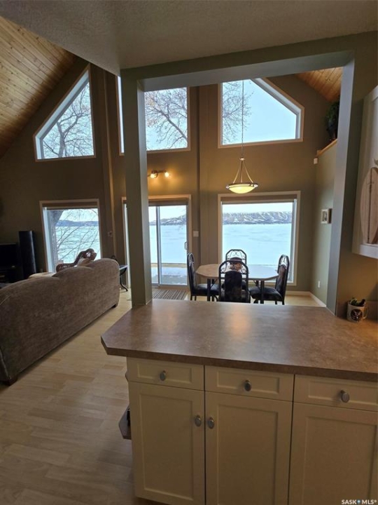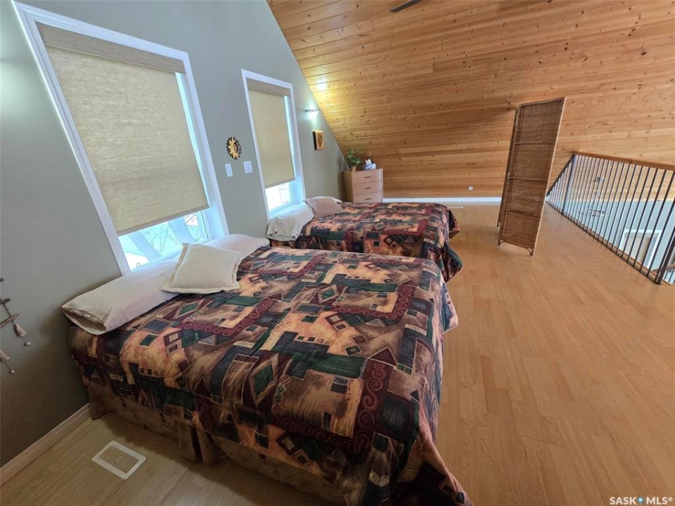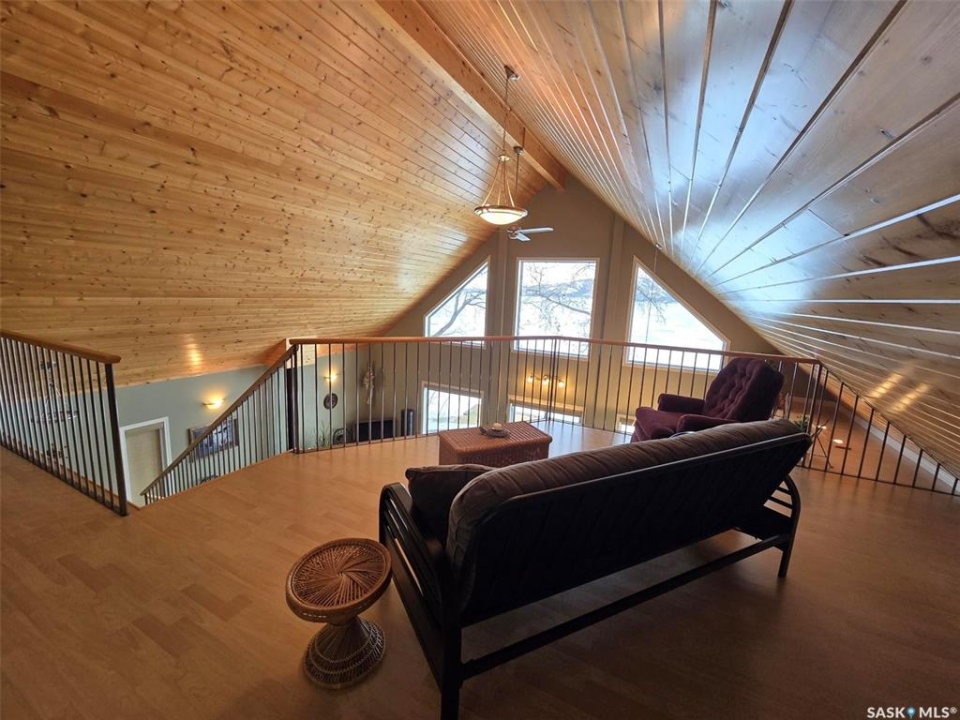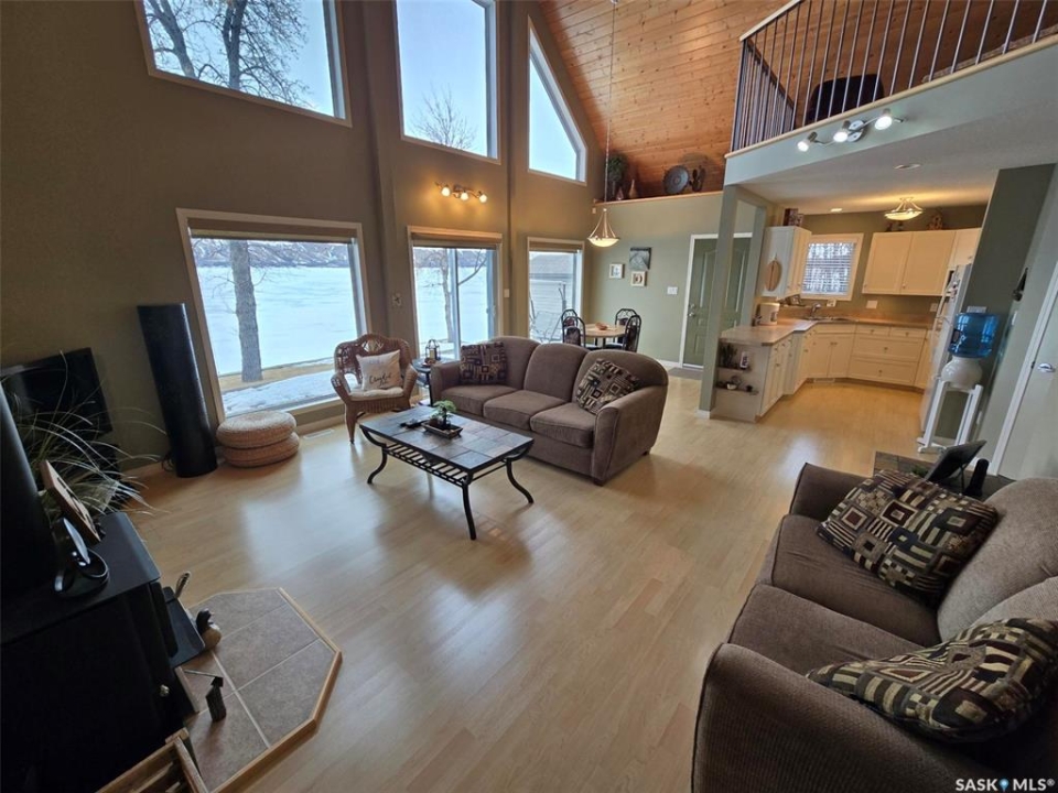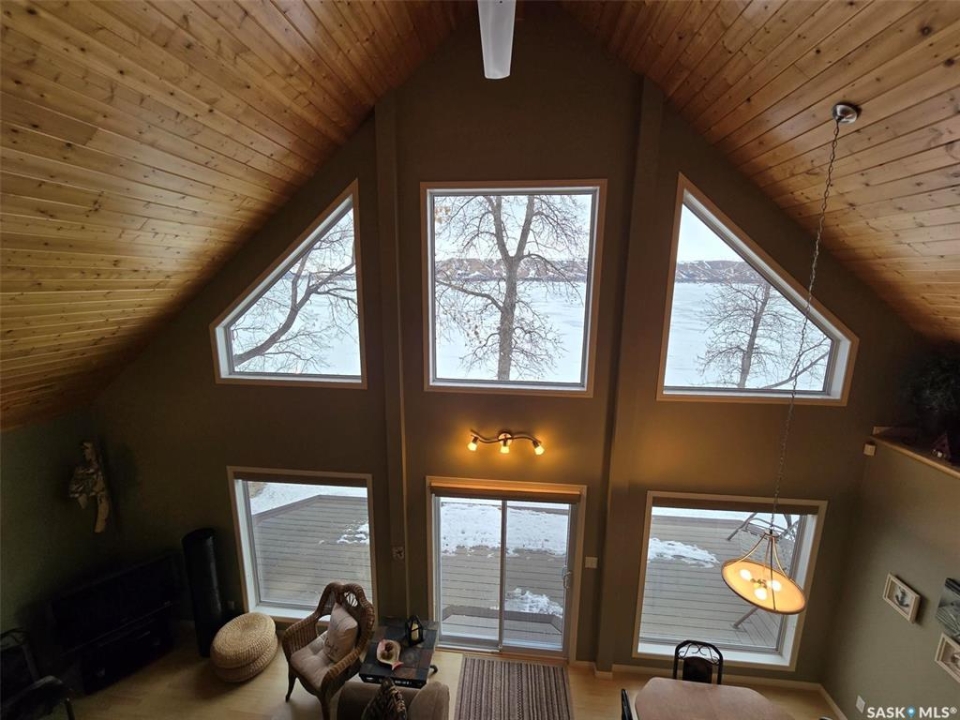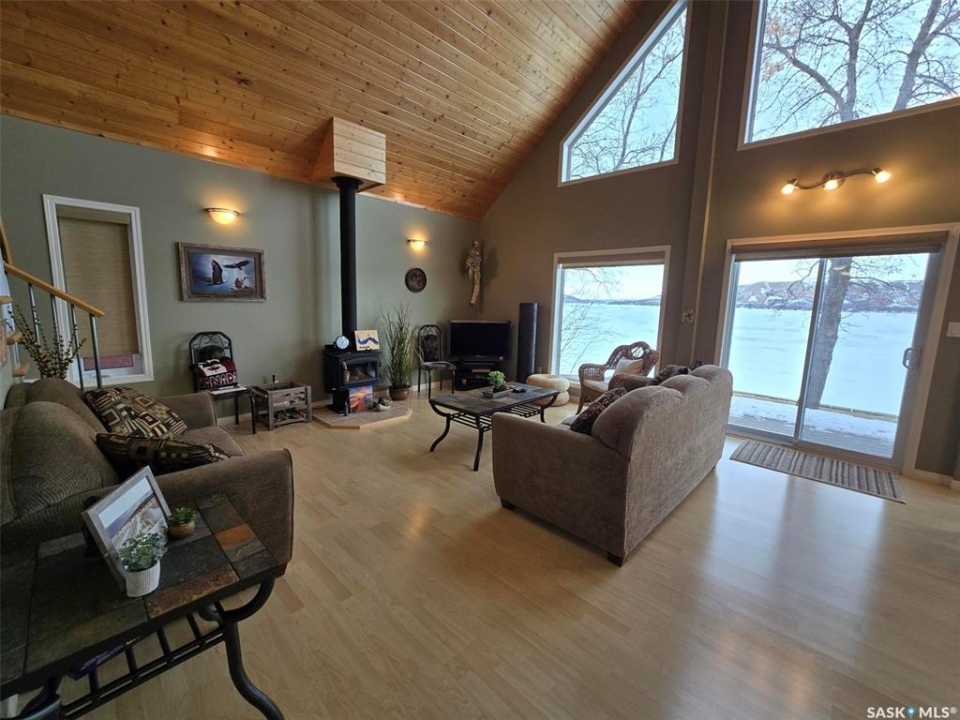 WAKE UP TO LAKEFRONT LIVING AT IT'S FINEST IN THIS BEAUTIFUL CROOKED LAKE HOME. Built in 2004 , this one owner home is breathtaking , meticulous and turn key for possession. Leased lot (64'x ) on the quiet side of Crooked Lake , Grenfell Beach (Yellow Calf) will be sure to please. Private access , well treed and a flat lot makes it easy to maintain. This "A" frame home is approx 1300 Sq ft including the main level and loft. Enter the home from the backyard into a porch, with closet/ laundry and the mechanics room. Cozy and spacious Primary bedroom is located down the hall with a Jack n' jill 4 piece bathroom. From here the view takes your breath away from the vaulted room where the dining . living room and kitchen meet. This area will be the place where memories are made around the wood stove in the winter and the front deck in the summer. Classic kitchen with have more counters and cabinets than most homes but with a lake view. Corner pantry provides extra storage. Dining room has a door to exit to side deck and garden doors to front deck. Lots of living room area to entertain family and friends. Take the solid stairs to the loft, which will be one of your favorite rooms of the house. Make this loft extra sleeping room , the primary bedroom or office/ flex space. It currently hosts 2 beds and a futon for the guests. Boat house 10' x 28' with concrete floor, retaining wall , garden shed are all assets. Features: HE propane furnace, new central air (2022), 200 amp panel, Securtek monitoring ($20 + monthly- doors, smoke, motion), water softner, iron filter, well with submersible pump (65'), 2000 gal concrete septic, wrap around composite decking, ICF foundation, and back yard partially fenced, 4' x48' white aluminum dock. Financing now available with terms and conditions. Lease due in Dec. $3378 and tax due in Sept $2125 based on a 5 year term. This property is the complete package l, with sunset , lake and valley views. Don't miss out, on this BEAUTY!