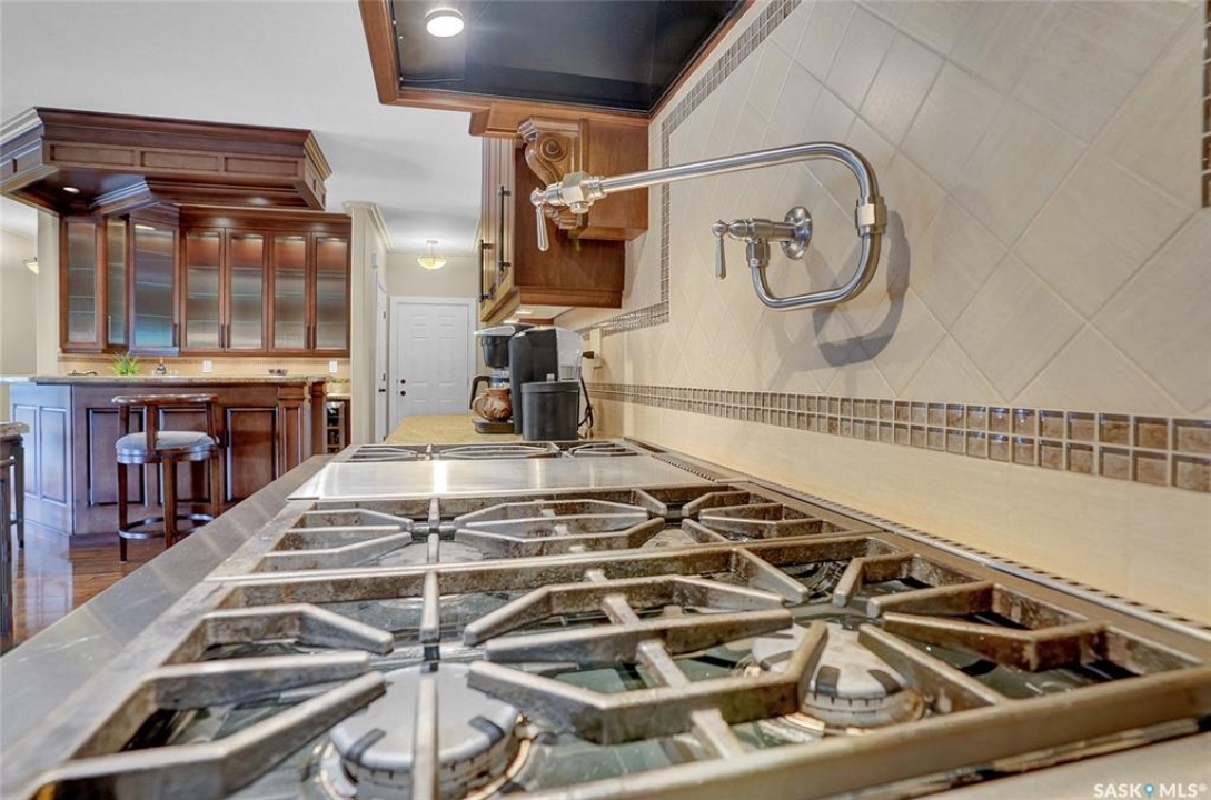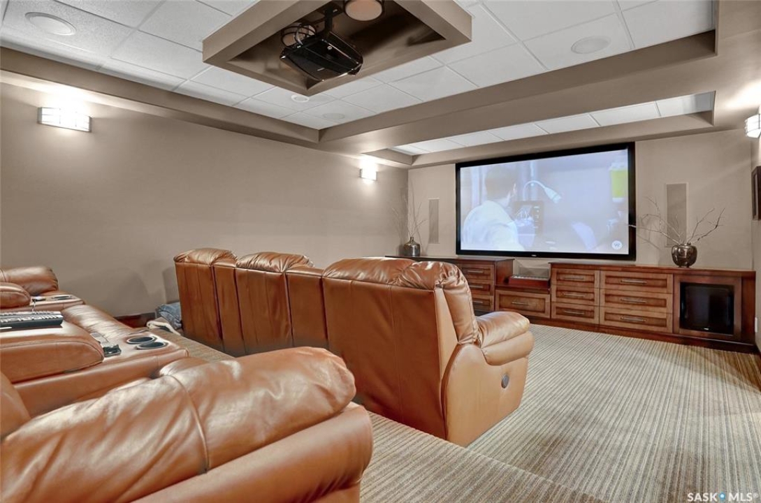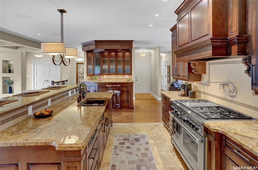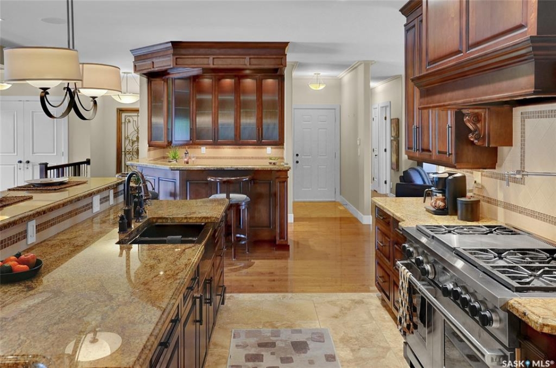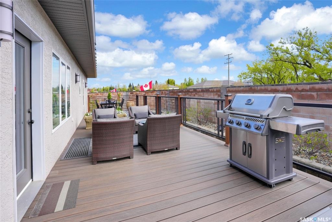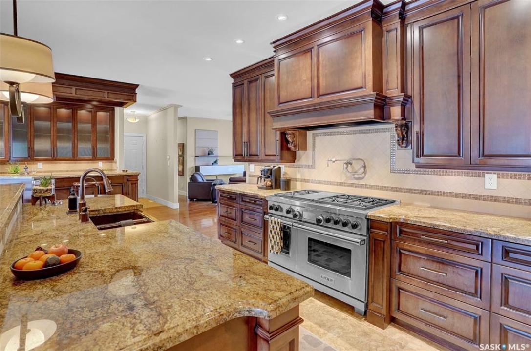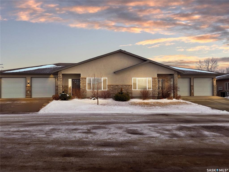 Nestled in the Lynbrook Golf Club community of Moose Jaw, this luxury condo is the epitome of refined living. Every detail of this property has been meticulously designed to offer an unparalleled lifestyle experience. Just a stone's throw from the lush greens of the Golf Course, this gated condo provides the perfect blend of privacy & prestige. This condo boasts high-end luxury finishes & upgraded features, offering over 4200 sqft of finished space. The 2 x dbl. att. heated garages, complete w/in-floor heating, offer ample storage space, w/1 garage even featuring its own laundry area. Step into the elegant living room, where hardwood floor, coffered ceiling & a masterful gas fireplace set the stage for sophisticated relaxation. The grand dining room, illuminated by a stunning chandelier, is the perfect setting for dinner parties. The gourmet kitchen is equipped w/cabinetry-faced sub-zero refrigeration & drawers, dishwasher, a 48” WOLF gas stove top w/double ovens & pot water faucet, all centered around a professionally sculpted quartz countertop island adding style. For casual gatherings, the condo offers a relaxed space ideal for after-dinner cocktails/morning coffee, complete w/wet bar. The main level houses 2 bedrooms & an office, while the lower level features 2 additional bedrooms, family room, theater room w/level seating, recliners & custom surround sound that runs throughout the home. A versatile den currently serves as a gym but is a flex room to suit your lifestyle. The dreamy primary suite is a sanctuary, boasting an opulent 5pc. bath w/6ft shower, soaker tub & a to die for walk in closet. Outdoors, the amazing deck is an entertainer's paradise, complete w/synthetic grass for your personal future putting hole. The beautiful landscaping enhance the aesthetic appeal of this outdoor haven. Experience luxury living like never before, where every detail has been thoughtfully designed for you. Ask your REALTOR � for Feature list & click on multi media link.