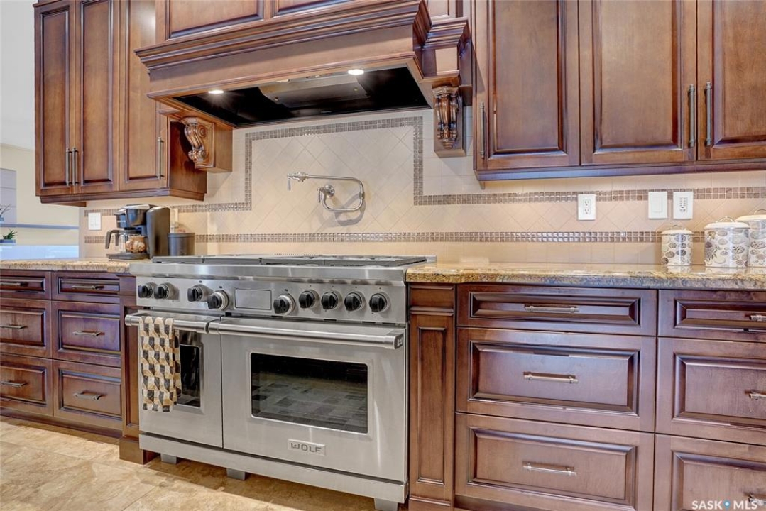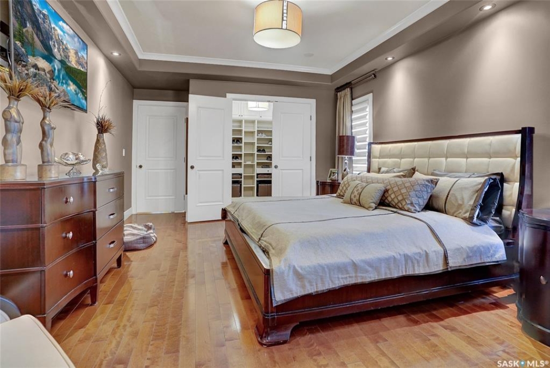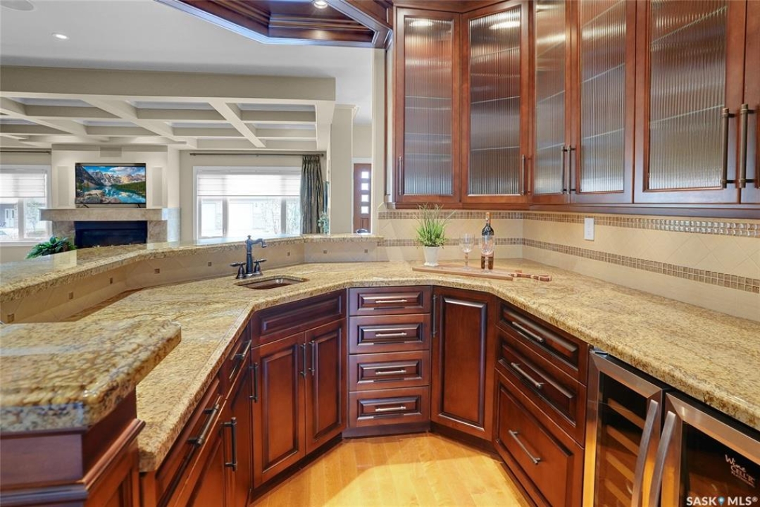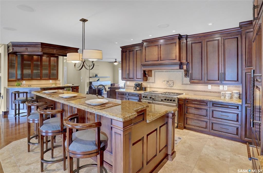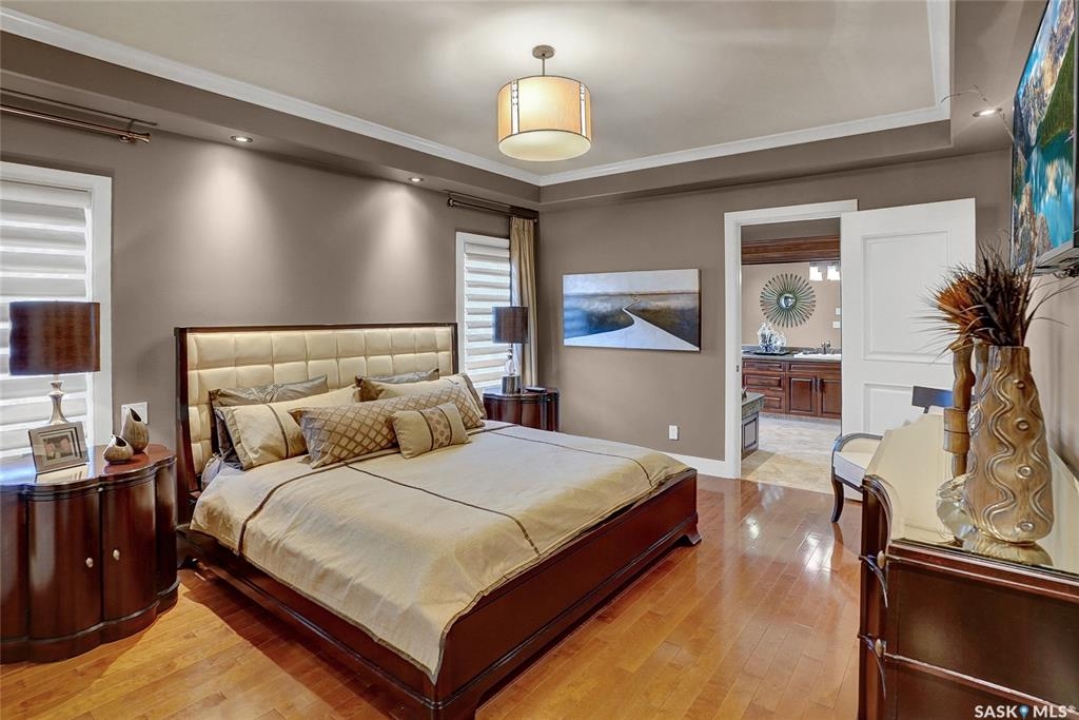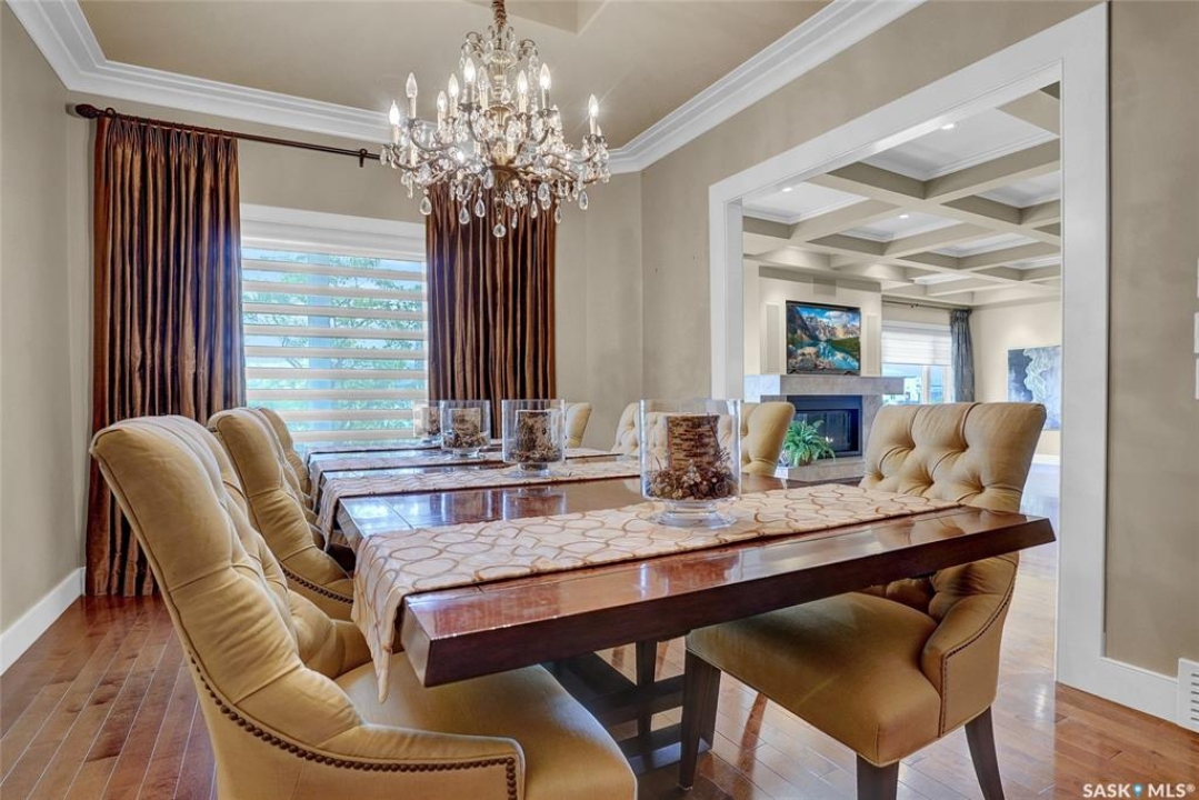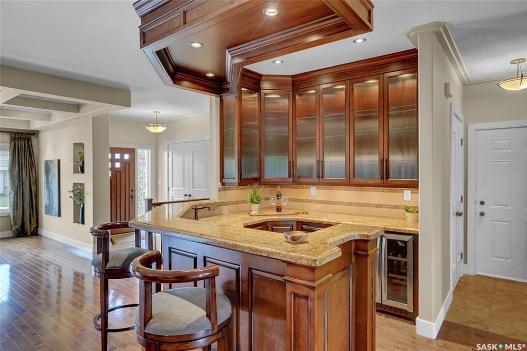 Nestled in the Lynbrook Golf Club community of Moose Jaw, this luxury condo is the epitome of refined living. Every detail of this property has been meticulously designed to offer an unparalleled lifestyle experience. Just a stone's throw from the lush greens of the Golf Course, this gated condo provides the perfect blend of privacy & prestige. This condo boasts high-end luxury finishes & upgraded features, offering over 4200 sqft of finished space. The 2 x dbl. att. heated garages, complete w/in-floor heating, offer ample storage space, w/1 garage even featuring its own laundry area. Step into the elegant living room, where hardwood floor, coffered ceiling & a masterful gas fireplace set the stage for sophisticated relaxation. The grand dining room, illuminated by a stunning chandelier, is the perfect setting for dinner parties. The gourmet kitchen is equipped w/cabinetry-faced sub-zero refrigeration & drawers, dishwasher, a 48” WOLF gas stove top w/double ovens & pot water faucet, all centered around a professionally sculpted quartz countertop island adding style. For casual gatherings, the condo offers a relaxed space ideal for after-dinner cocktails/morning coffee, complete w/wet bar. The main level houses 2 bedrooms & an office, while the lower level features 2 additional bedrooms, family room, theater room w/level seating, recliners & custom surround sound that runs throughout the home. A versatile den currently serves as a gym but is a flex room to suit your lifestyle. The dreamy primary suite is a sanctuary, boasting an opulent 5pc. bath w/6ft shower, soaker tub & a to die for walk in closet. Outdoors, the amazing deck is an entertainer's paradise, complete w/synthetic grass for your personal future putting hole. The beautiful landscaping enhance the aesthetic appeal of this outdoor haven. Experience luxury living like never before, where every detail has been thoughtfully designed for you. Ask your REALTOR � for Feature list & click on multi media link.