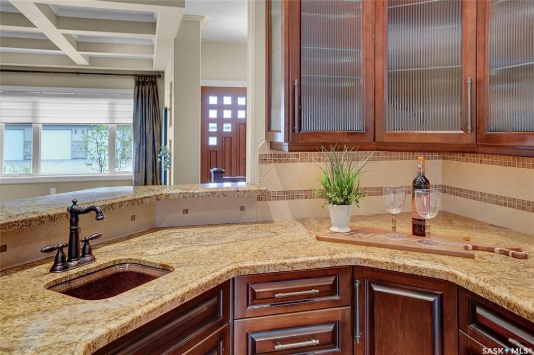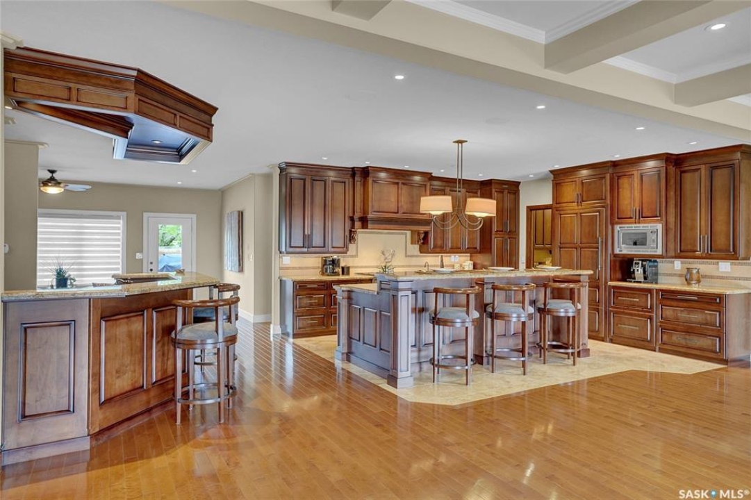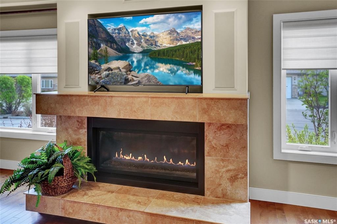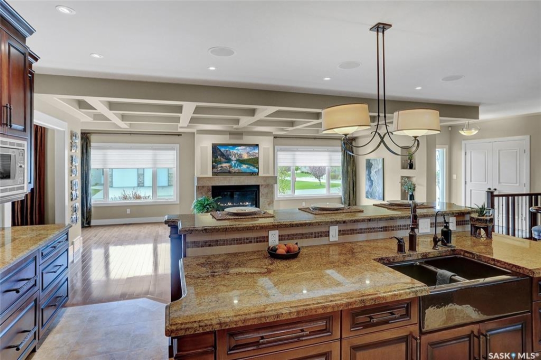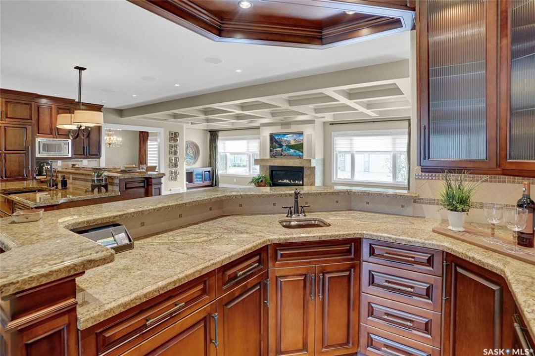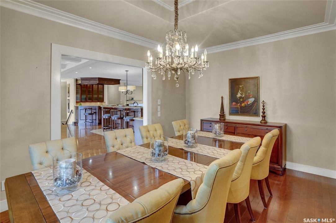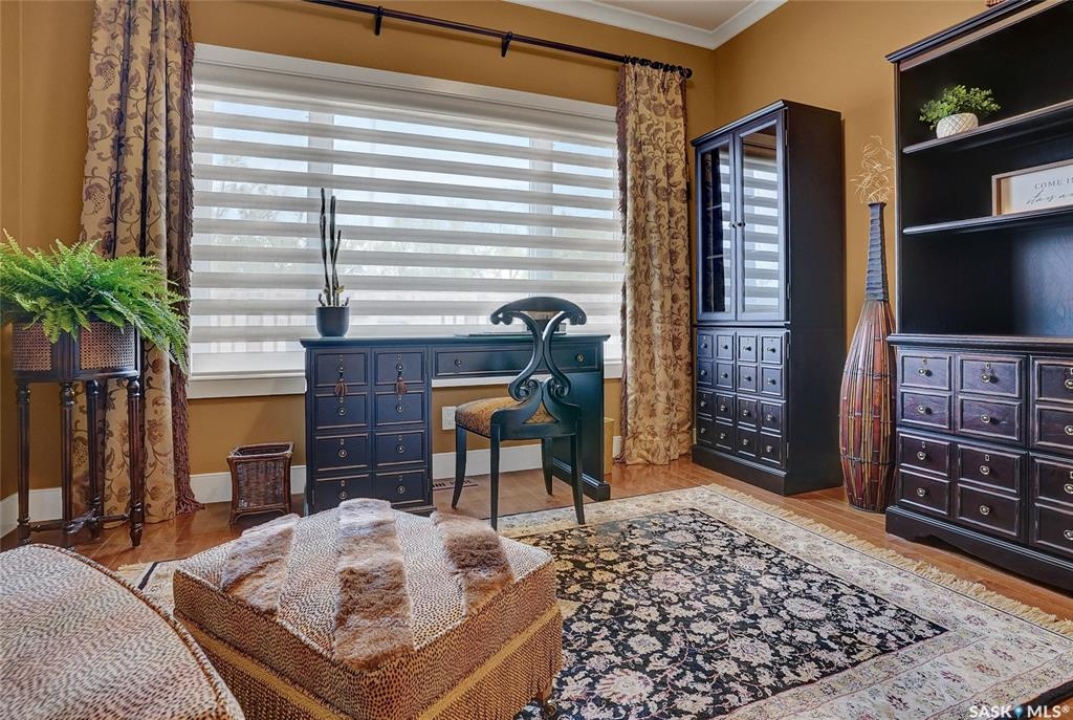 Nestled in the Lynbrook Golf Club community of Moose Jaw, this luxury condo is the epitome of refined living. Every detail of this property has been meticulously designed to offer an unparalleled lifestyle experience. Just a stone's throw from the lush greens of the Golf Course, this gated condo provides the perfect blend of privacy & prestige. This condo boasts high-end luxury finishes & upgraded features, offering over 4200 sqft of finished space. The 2 x dbl. att. heated garages, complete w/in-floor heating, offer ample storage space, w/1 garage even featuring its own laundry area. Step into the elegant living room, where hardwood floor, coffered ceiling & a masterful gas fireplace set the stage for sophisticated relaxation. The grand dining room, illuminated by a stunning chandelier, is the perfect setting for dinner parties. The gourmet kitchen is equipped w/cabinetry-faced sub-zero refrigeration & drawers, dishwasher, a 48” WOLF gas stove top w/double ovens & pot water faucet, all centered around a professionally sculpted quartz countertop island adding style. For casual gatherings, the condo offers a relaxed space ideal for after-dinner cocktails/morning coffee, complete w/wet bar. The main level houses 2 bedrooms & an office, while the lower level features 2 additional bedrooms, family room, theater room w/level seating, recliners & custom surround sound that runs throughout the home. A versatile den currently serves as a gym but is a flex room to suit your lifestyle. The dreamy primary suite is a sanctuary, boasting an opulent 5pc. bath w/6ft shower, soaker tub & a to die for walk in closet. Outdoors, the amazing deck is an entertainer's paradise, complete w/synthetic grass for your personal future putting hole. The beautiful landscaping enhance the aesthetic appeal of this outdoor haven. Experience luxury living like never before, where every detail has been thoughtfully designed for you. Ask your REALTOR � for Feature list & click on multi media link.