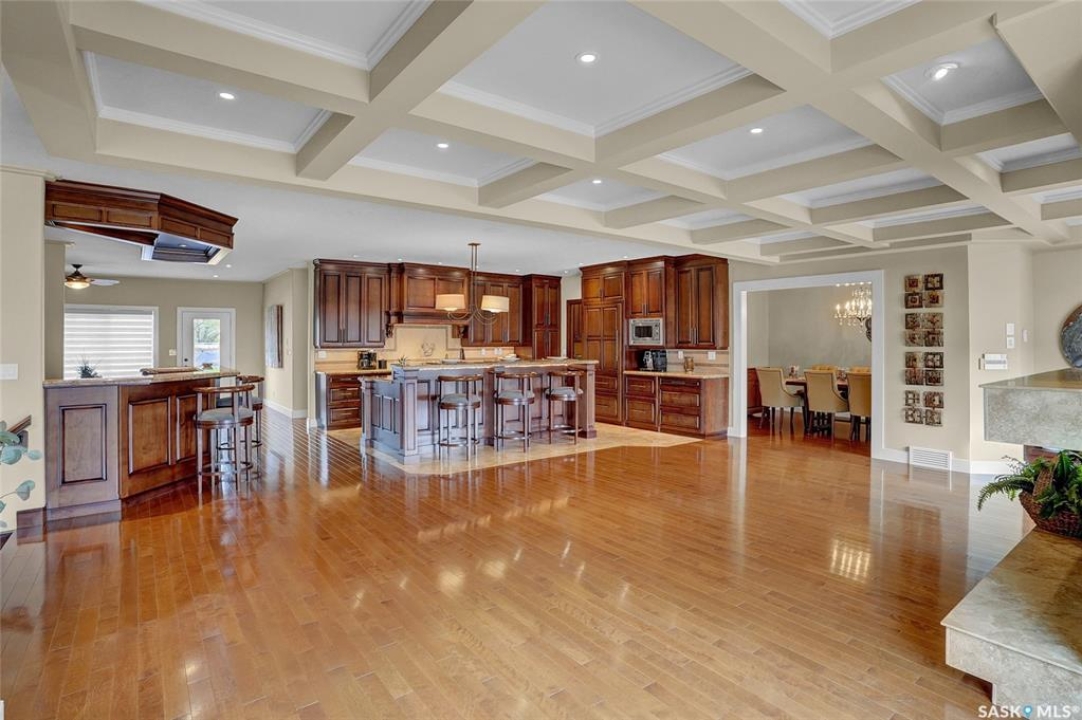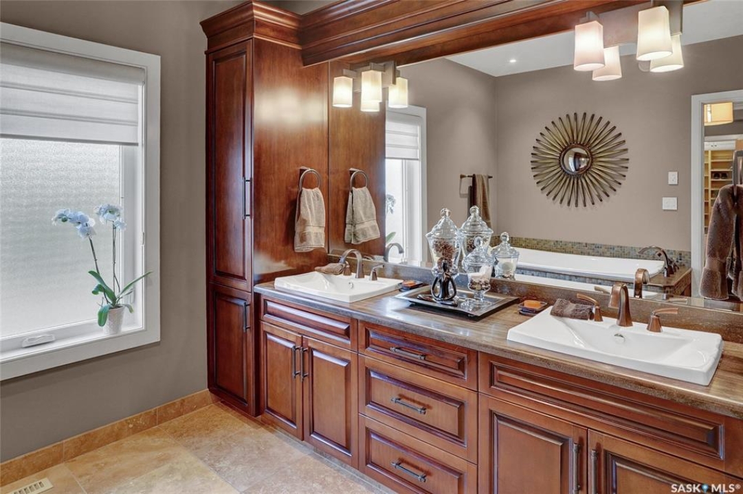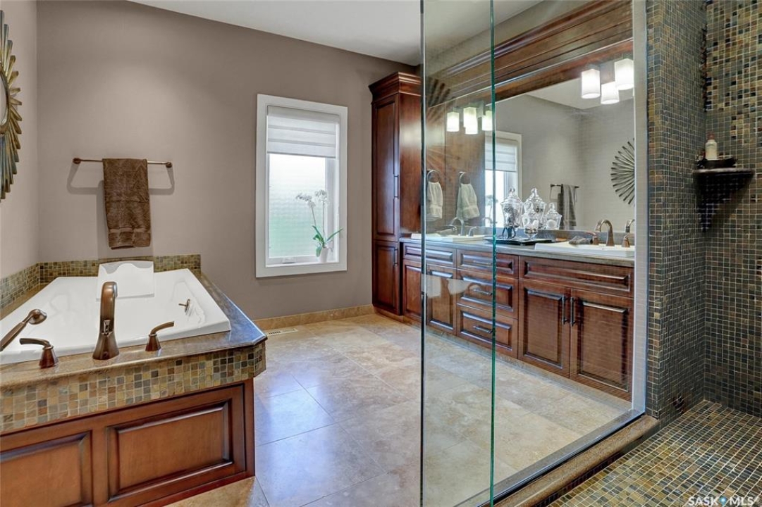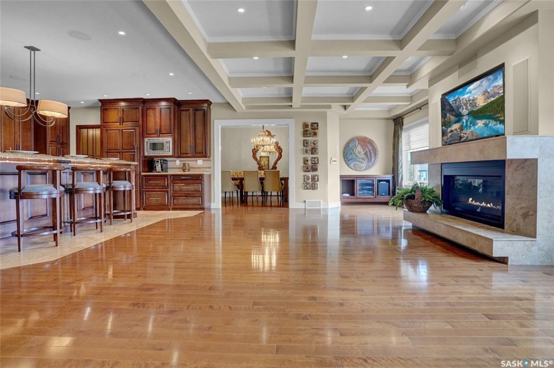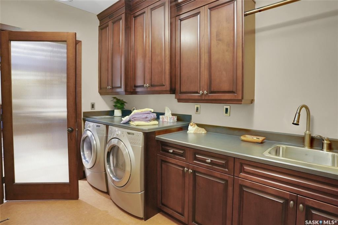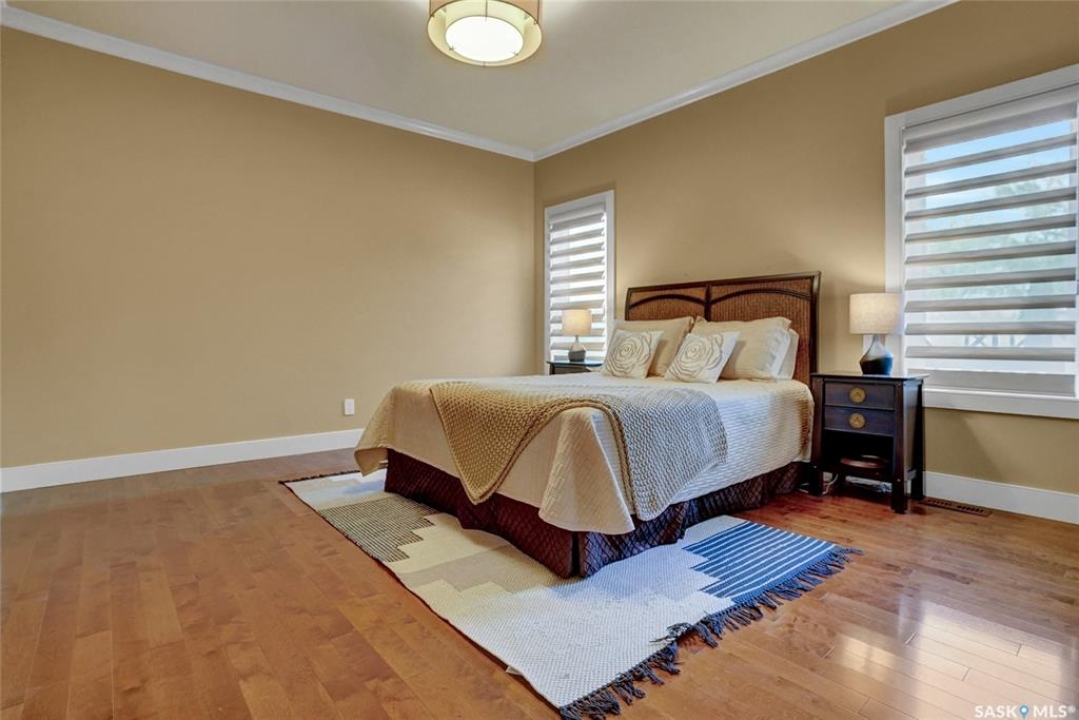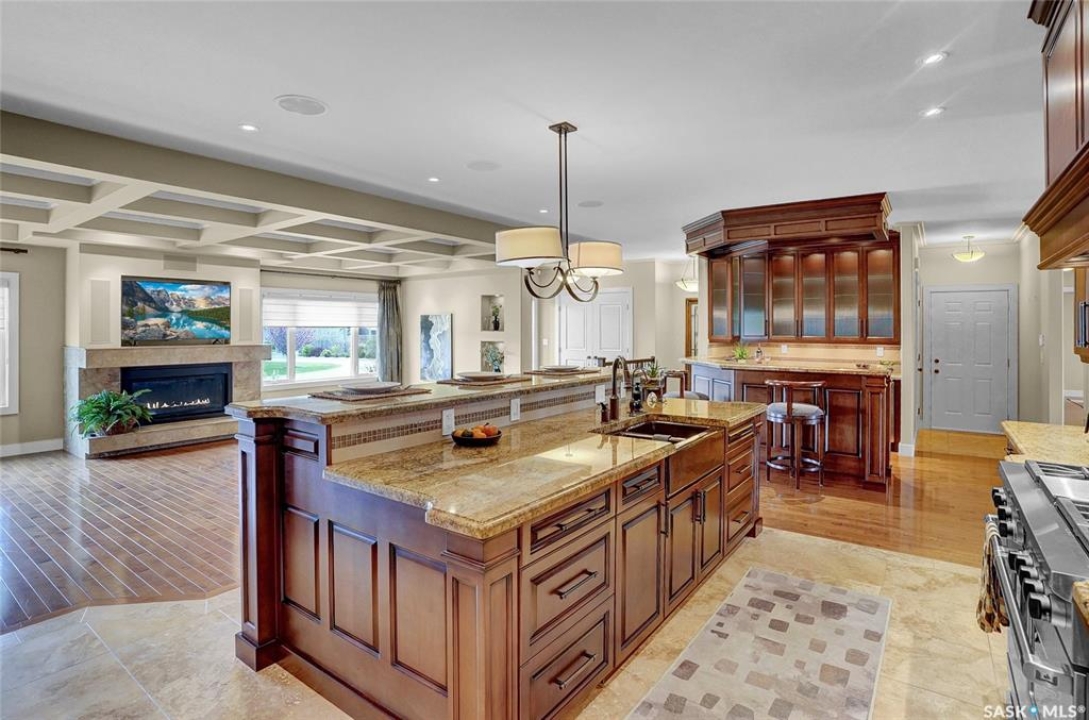 Nestled in the Lynbrook Golf Club community of Moose Jaw, this luxury condo is the epitome of refined living. Every detail of this property has been meticulously designed to offer an unparalleled lifestyle experience. Just a stone's throw from the lush greens of the Golf Course, this gated condo provides the perfect blend of privacy & prestige. This condo boasts high-end luxury finishes & upgraded features, offering over 4200 sqft of finished space. The 2 x dbl. att. heated garages, complete w/in-floor heating, offer ample storage space, w/1 garage even featuring its own laundry area. Step into the elegant living room, where hardwood floor, coffered ceiling & a masterful gas fireplace set the stage for sophisticated relaxation. The grand dining room, illuminated by a stunning chandelier, is the perfect setting for dinner parties. The gourmet kitchen is equipped w/cabinetry-faced sub-zero refrigeration & drawers, dishwasher, a 48” WOLF gas stove top w/double ovens & pot water faucet, all centered around a professionally sculpted quartz countertop island adding style. For casual gatherings, the condo offers a relaxed space ideal for after-dinner cocktails/morning coffee, complete w/wet bar. The main level houses 2 bedrooms & an office, while the lower level features 2 additional bedrooms, family room, theater room w/level seating, recliners & custom surround sound that runs throughout the home. A versatile den currently serves as a gym but is a flex room to suit your lifestyle. The dreamy primary suite is a sanctuary, boasting an opulent 5pc. bath w/6ft shower, soaker tub & a to die for walk in closet. Outdoors, the amazing deck is an entertainer's paradise, complete w/synthetic grass for your personal future putting hole. The beautiful landscaping enhance the aesthetic appeal of this outdoor haven. Experience luxury living like never before, where every detail has been thoughtfully designed for you. Ask your REALTOR � for Feature list & click on multi media link.