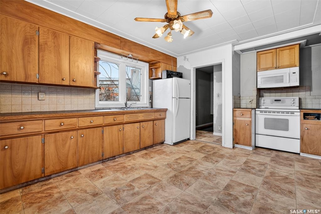 This home is situated on a large corner lot and offers lots of potential to make it your own. The quaint foyer invites you inside the large bright living room with a spacious kitchen and dining area. There are 2 good sized bedrooms on the main floor and a full bathroom. The main floor has original hardwood flooring in the living room, bedrooms and hallway. The lower level has high ceilings and plenty of storage. There is a den and family room as well as another full bathroom. Completing the lower level is a bonus room that would make for a great office space, laundry room and storage room. The fenced yard is a nice bonus as well as an oversized single detached garage. The shed offers more outdoor storage space. Come and take a look and see if this home is a project you'd like to have!