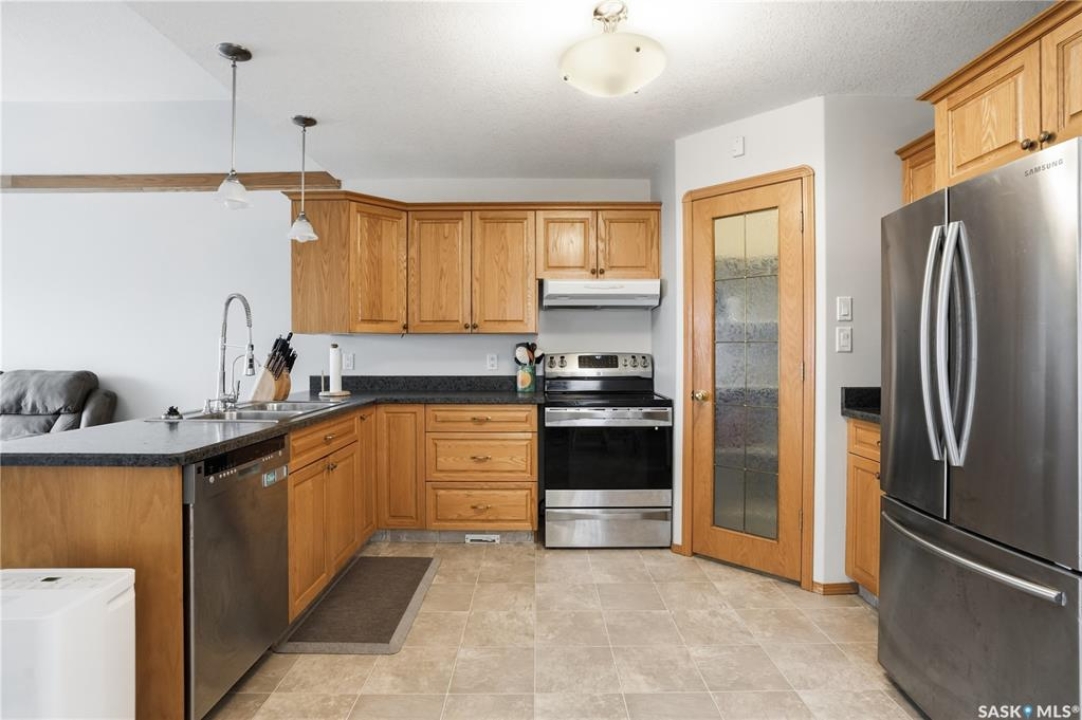Welcome to this beautifully maintained family bungalow, ideally located on a quiet crescent just steps from a park and an elementary school. Offering 4 bedrooms, 2 bathrooms and a double attached garage, this home features a functional open-concept layout designed for comfortable everyday living and effortless entertaining. The bright living room flows seamlessly into the family room highlighted by 10-foot ceilings and large windows that fill the space with natural light. The kitchen offers an abundance of cabinetry, a convenient corner pantry and plenty of prep space to accommodate busy family life. The dining area provides easy access to the private backyard - perfect for summer gatherings or relaxing evenings at home. All appliances are included, making this property truly move-in ready! The developed basement features a generous open layout with ample space for a games room, movie room, or additional recreation area, along with an extra bedroom, 3 piece bathroom with new shower and utility room with laundry - ideal for growing families or hosting guests. Features include: fresh interior paint throughout, high-efficiency furnace, heat exchanger, central air conditioning water softener, reverse osmosis system, alarm system, and a low-maintenance backyard complete with artificial grass and a storage shed. Situated in a sought-after, family-friendly neighbourhood, this home offers the perfect blend of comfort, space, and convenience. Don't miss your opportunity to view this exceptional property. Open House - Sunday Feb 22 at 12:00-1:30pm.. Offers to be presented by the listing agent on February 23rd, 2026 at 5:00pm.