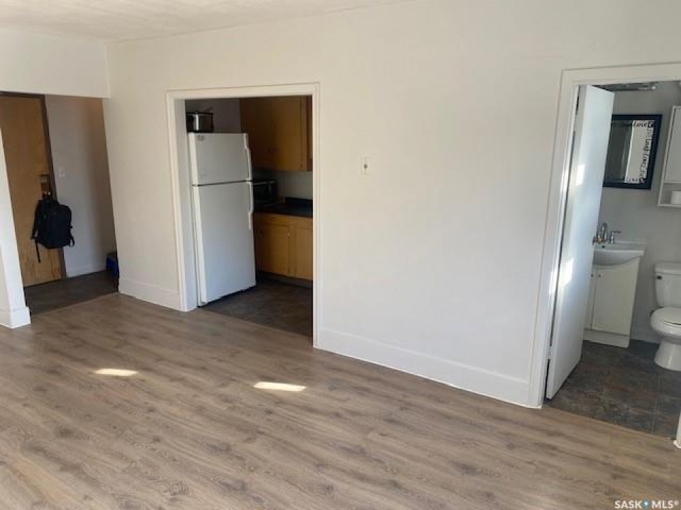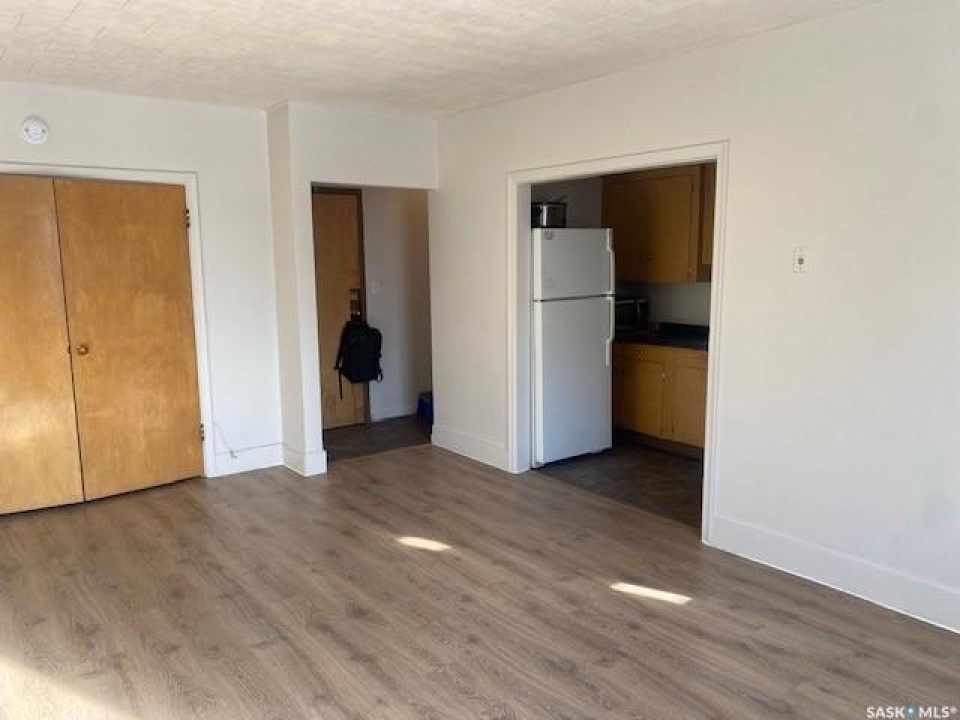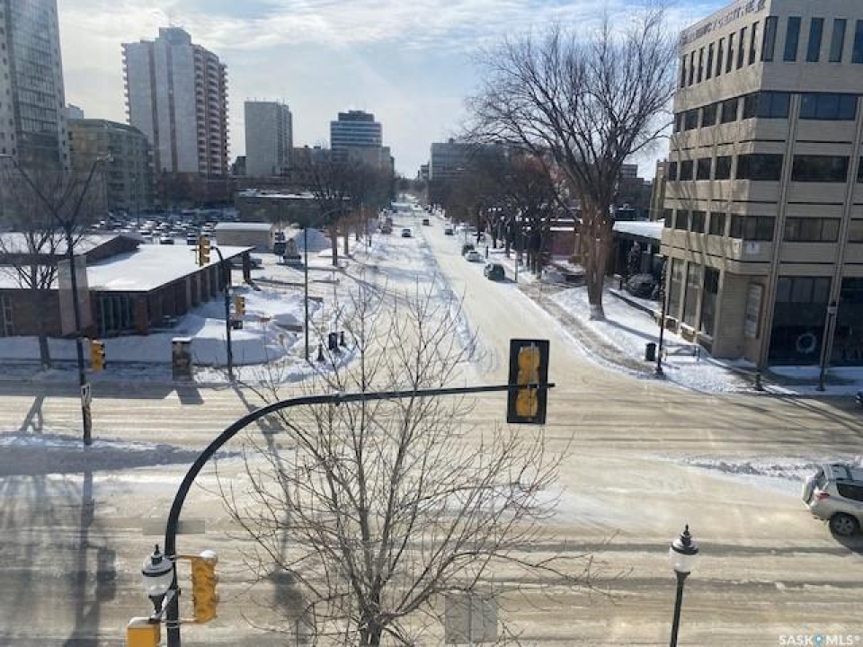 Welcome to Unit 37 – 400 4th Avenue North. An excellent investment opportunity in the heart of downtown Saskatoon. This top-floor, south-facing bachelor suite offers bright, open-concept living with newer paint and flooring throughout. The functional kitchen is equipped with a fridge, stove, and microwave, and includes a large closet providing ample storage space. The unit also features a full 4-piece bathroom. Large windows fill the living area with natural light and offer impressive views of the downtown skyline. Laundry facilities are conveniently located on the lower level, and the building is secured with new double security locks for added peace of mind. Completely renovated and move-in ready, this condo is ideally situated within walking distance to numerous amenities, and just minutes from the University of Saskatchewan and the scenic South Saskatchewan River. A fantastic opportunity in a prime location—schedule your private viewing today.