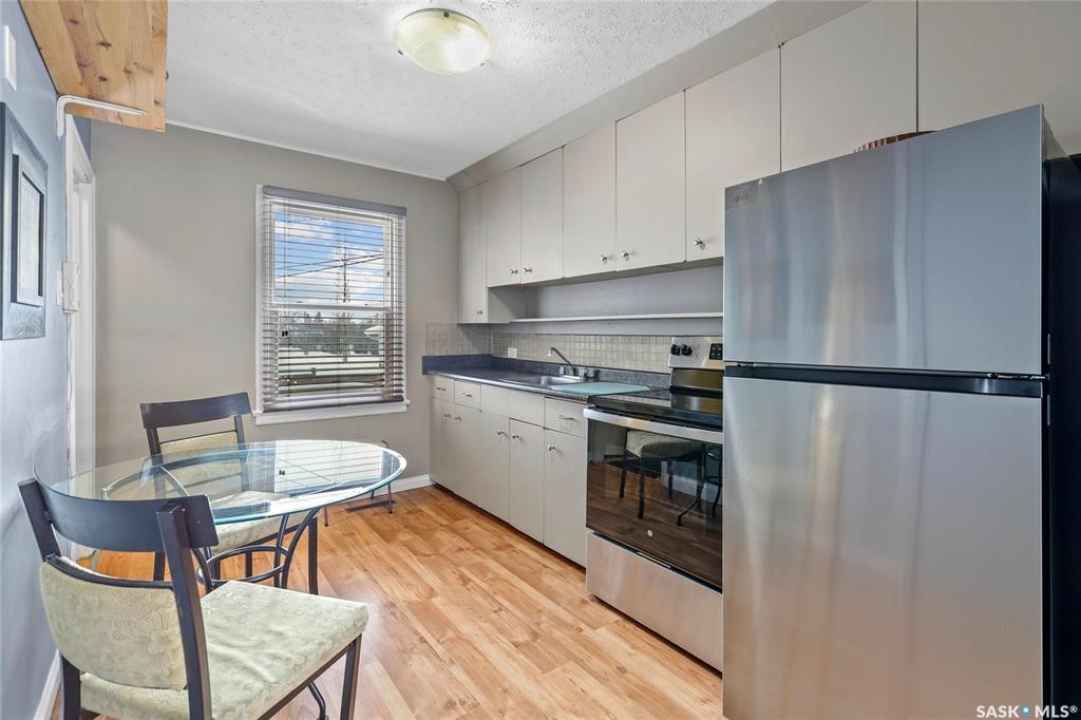 Tucked away on a quiet crescent and situated on a desirable pie-shaped lot backing onto green space, this charming home offers more space and functionality than meets the eye. The well-designed main floor features a bright and inviting living room with a large picture window that fills the space with natural light, complemented by durable laminate flooring. The functional kitchen offers ample cabinetry and a spacious pantry, making meal prep and storage a breeze. Two generously sized bedrooms and a 4-piece bathroom complete with a Bath Fitter tub surround round out the main level. Downstairs, the fully finished basement expands your living space with a comfortable family room, an additional bedroom, a 3-piece bathroom, and a large laundry/utility room with plenty of storage. Step outside to enjoy the expansive backyard, highlighted by a 10' x 24' deck—perfect for entertaining—along with a cozy fire pit area. The 18' x 24' garage with back alley access provides excellent parking and storage options, plus additional space to park two more vehicles beside the garage. Updates Include: house shingles & stucco, PVC windows, tub, shower surround, main floor bedroom flooring, fridge, stove, washer and new exterior sewer line. This well-laid-out home offers comfort, functionality, and is move-in ready—don't miss your opportunity to make it yours!