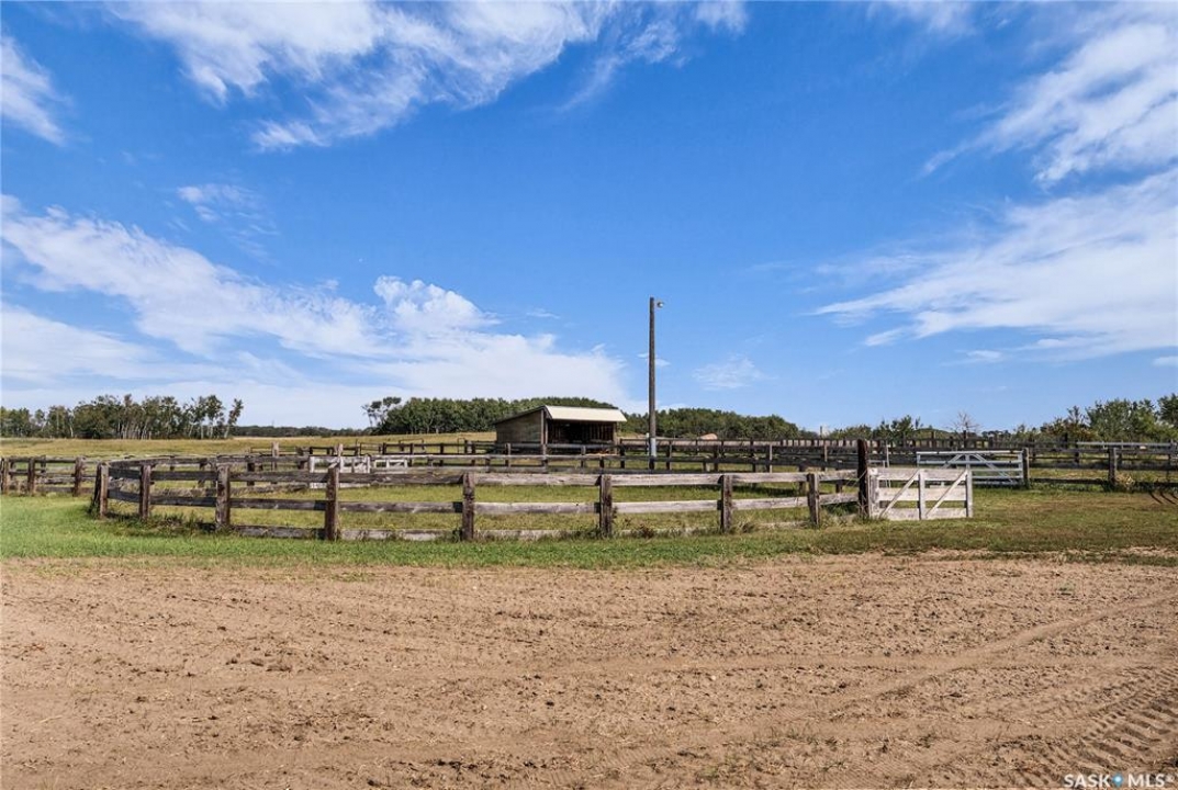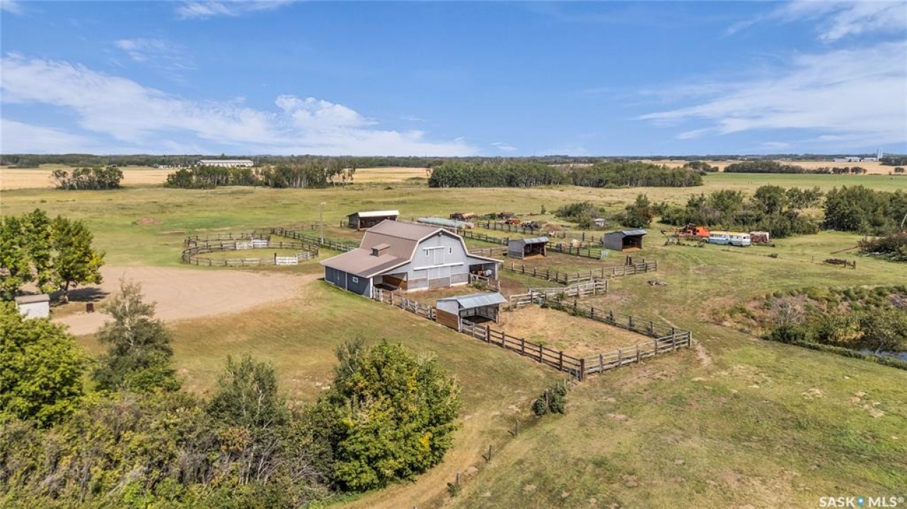 The possibilities are truly endless with this special 80-acre property located just 15 minutes from the Saskatoon city limits. This piece of paradise is less than 4km from Highway 11, yet offers peace & tranquility that is practically unmatched so close to the convenience of the city. Offering an idyllic blend of poplar bluffs & wide open pasture, with CFB Dundurn to the south, you will rarely find a property with a more ideal blend of privacy, beauty & practicality. It is a horse lover's dream, set up with a steel-roof barn, corrals, shelters & an abundance of gently rolling pasture. Approximately 56 acres of partially-fenced yard site & pasture with an additional 22 acres (approximately) in hay. The home is a beloved 2200-square foot ranch-style WALK OUT BUNGALOW with real potential to become the epitome of luxury & convenience. With 4 bedrooms, 5 bathrooms including ensuites in the upstairs master bedroom & lower level guest bedroom, this solidly-built house will greatly reward the efforts of some cosmetic enhancement. Other home features include 200-amp electrical service, natural gas to property, a 26'x28' heated attached garage with direct entry, a 24'x32' shop with 12' overhead doors, & tons of parking for trailers, tractors, large machinery & more. The location also offers prime subdivision potential on the east portion of the property, providing an incredible investment opportunity while still leaving the premium equestrian aspect of this property undisturbed. You will rarely find another property that features so much as it is, which also offers so much future potential. DON'T MISS OUT!