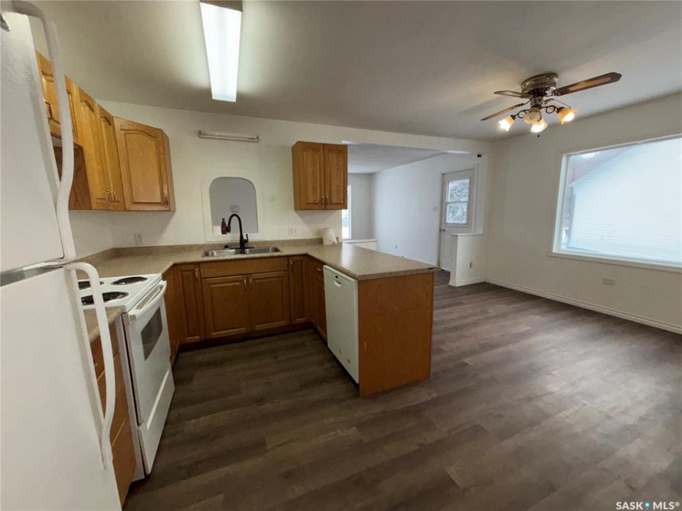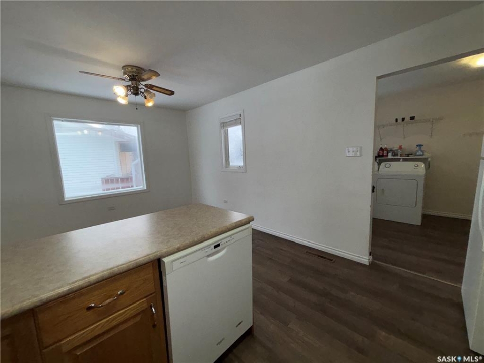 Welcome to this 3-bedroom bungalow offering a functional layout and great future potential. A spacious mudroom at the entrance includes convenient main-floor laundry with washer and dryer. The U-shaped kitchen features oak cabinetry and comes complete with fridge, stove, and dishwasher, opening into a bright and welcoming dining area—perfect for everyday living. The living room is filled with natural light thanks to large windows, while the hallway leads to three comfortable bedrooms. The 4-piece bathroom is generously sized and bright. The primary bedroom offers ample space and a great-sized closet. Downstairs, the basement is ready for development and already includes a 2-piece bathroom, providing excellent potential for additional living space. The water heater was replaced in 2022, and several key updates have been completed over the years, including windows, siding, and more. Outside, enjoy a large fully fenced yard with a shed and patio area—ideal for relaxing, entertaining, or family enjoyment. This home combines comfort, updates, and room to grow, making it a fantastic opportunity for buyers. Call today to view this home!