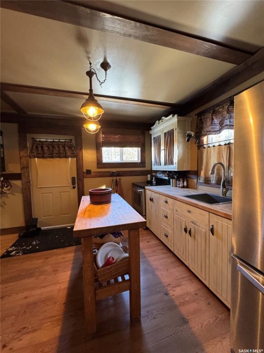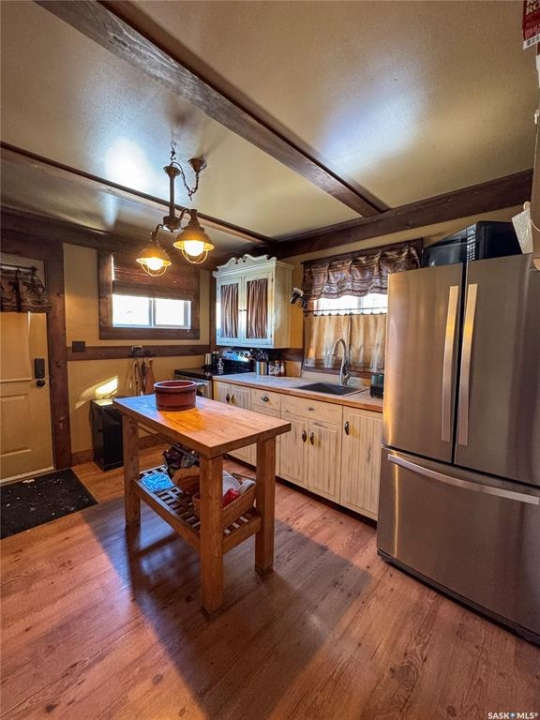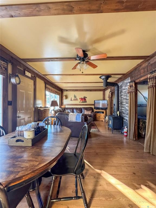 Located in the Resort Subdivision at Little Bear Lake, this four-season cabin offers comfortable year-round living with a layout thoughtfully designed to maximize functionality within its 752 sq ft footprint. The cabin features three bedrooms and a 3-piece bathroom, creating a practical setup for family use or hosting guests. Warm wood finishes carry character throughout the home, while the main living spaces provide an easy flow through from the kitchen. A wood stove adds cozy atmosphere in the living room, complemented by an electric furnace for reliable year-round comfort. Water is supplied by a sandpoint well, supporting extended stays and everyday convenience. Outdoors, the property is designed for enjoying summer nights, featuring a traditional-style hot tub and a plumbed outdoor shower that enhance the lake lifestyle. A detached 24 x 24 double garage offers excellent storage for recreational equipment, tools, and lake gear, with ample additional parking available for guests, trailers, and toys. Being sold fully furnished, this Little Bear Lake cabin presents a turn-key opportunity for a family getaway, weekend retreat, or seasonal escape in a well-established resort community.